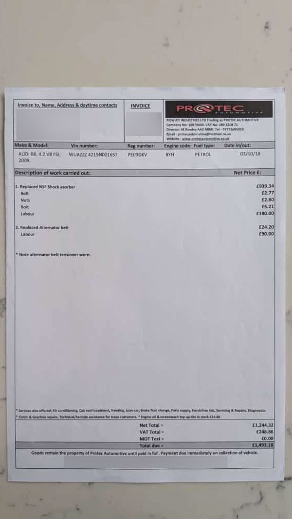All servicing and modifications backed up by a file of invoices that corroborate the work carried out