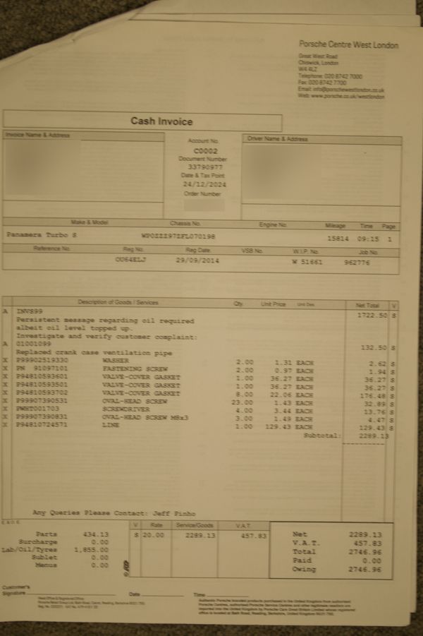 Various invoices for servicing and maintenance
