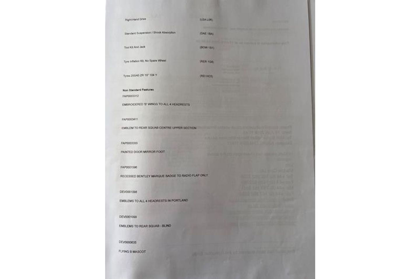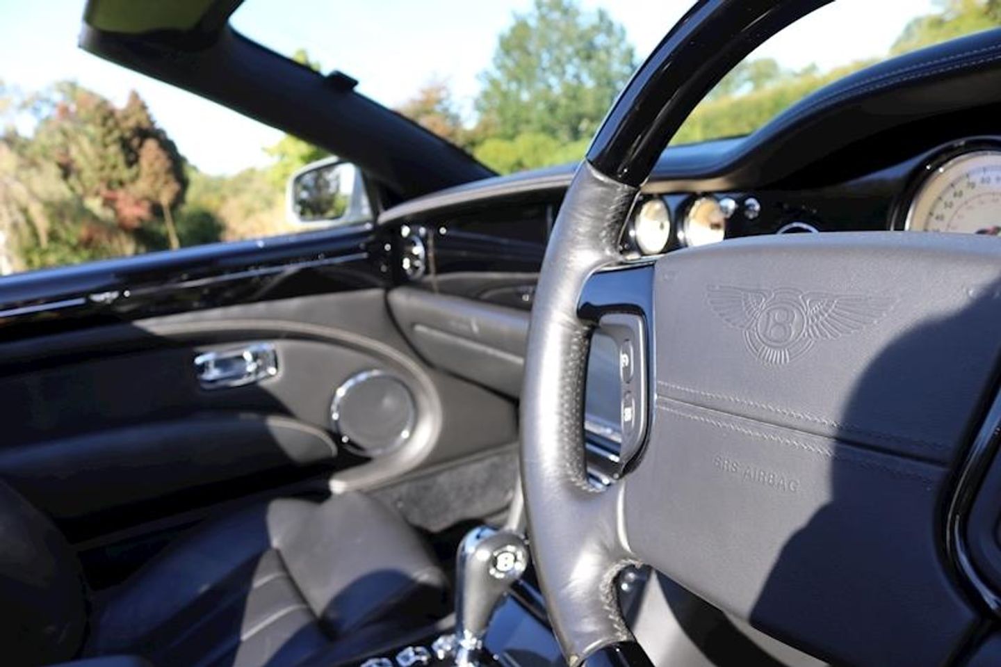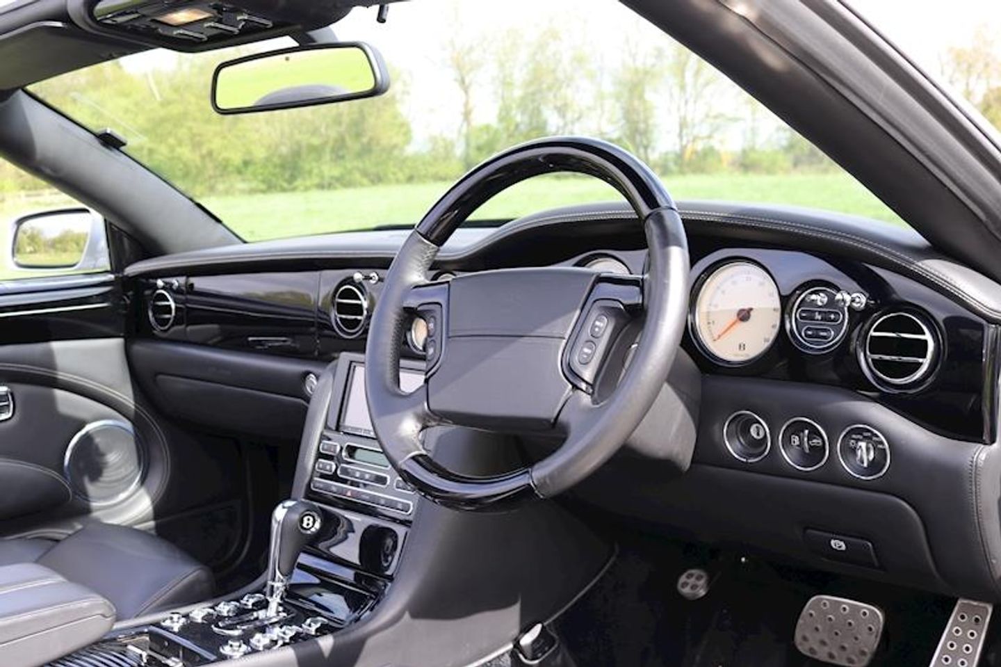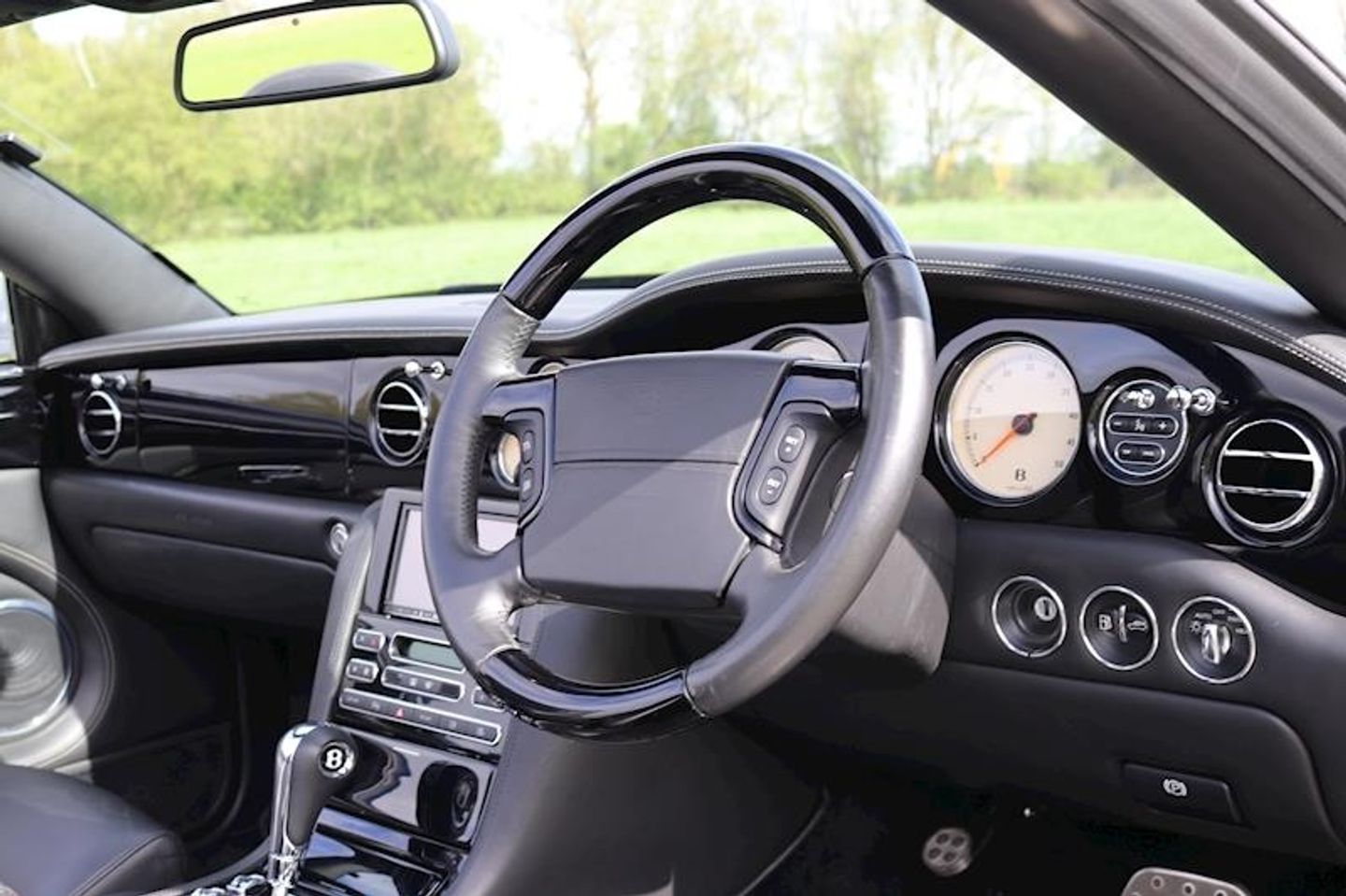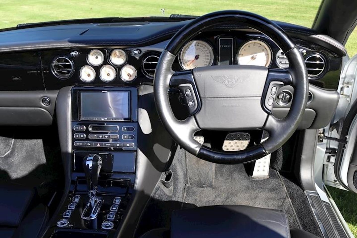 bentley crested seats,Wooden steering wheel,Bi-Xenon Headlights,Parking aid,Flying B Radiator Mascot, Adjustable Steering Column/Wheel, Armrest, Climate Control, Cruise Control, In Car Entertainment (Radio/CD Autochanger/DVD), Rain Sensor, Satellite Navigation, Seat Height Adjustment (Memory Driver/Passenger), Seat Lumbar Support (Driver/Passenger Electric), Seats Electric (Driver/Passenger - Driver Memory), Seats Heated (Driver/Passenger), Speakers, Steering Wheel Mounted Controls, Telephone Equipment, Upholstery Leather, Alloy Wheels (19in), Body Coloured Bumpers, Mirrors External (Memory Electric/Heated/Folding), Windscreen Wiper, Computer, Mirrors Internal, Self-Levelling Suspension, Power-Assisted Steering, Tyre Pressure Control
