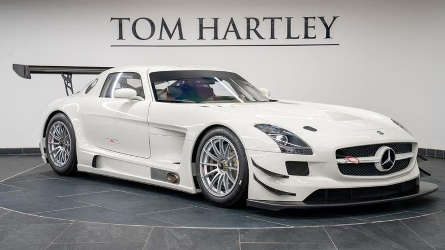 One of 25 Cars, Factory-Built GT3 Car, Full FIA Race Specification, As-New, Sequential Six-Speed Racing Transmission, Multi-Disc Locking Differential, Traction Control, Adjustable Springs and Shock Absorbers, 18 Light Centre-Locking Alloy Wheels, Steel Racing Brakes with ABS, Carbon Fibre Seat Shell with HANS System, Carbon Fibre CFRP Safety Cell, Six-Point Racing Harness, Fire Extinguisher System, Central Display, Carbon Fibre Front Splitter, Carbon Fibre Rear Spoiler, Carbon Fibre Quick Release Bonnet. This is an extraordinary opportunity to acquire an extremely rare Mercedes SLS GT3, a car which saw huge success in the highest level of GT and endurance racing across the globe. This example has always been under private ownership and has never been raced, spending its recent years on proud display at Mercedes-Benz World in Brooklands. Powered by the thunderous 6.2-litre naturally aspirated AMG V8, this car produces an electronically-limited 500 bhp, and only weights around 1,300 kg.
