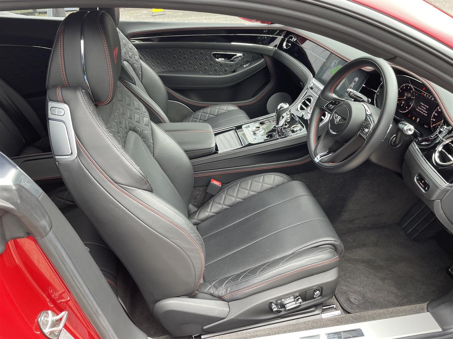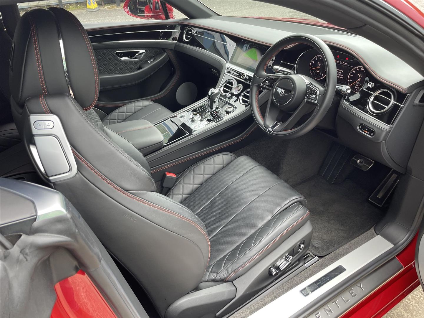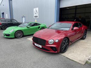 FULL MULLINER DYNAMIC DRIVING SPEC. Plus massive factory spec. in Stunning unmarked (OLD Number 1 colours) of Dragon Red with Beluga Leather trim with red stitched Bentley seat Logos, Massive Factory spec (available on request) includes Polished Beluga black Alloys, Black Grills and body trim, 24,000 miles only with Full Bentley Main agent history, Just had Major Service at Bentley. magnificent unmarked example. PLEASE NOTE....The Cherished Number 777ELX is Available if required.