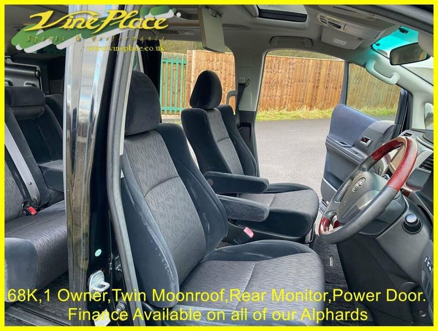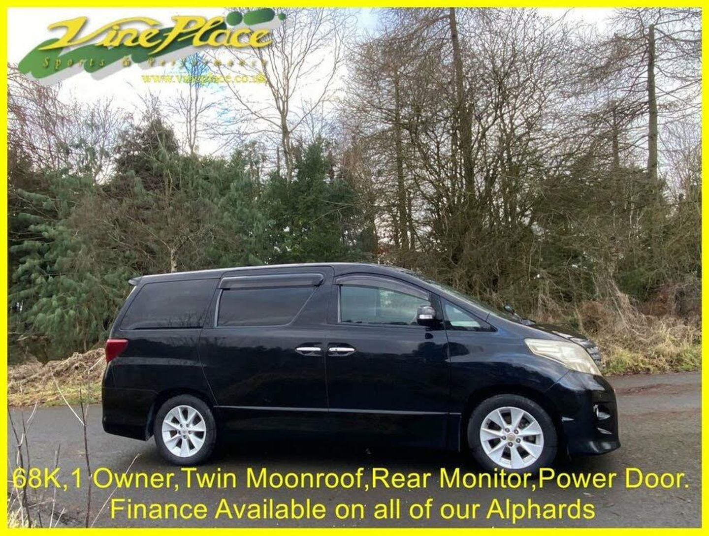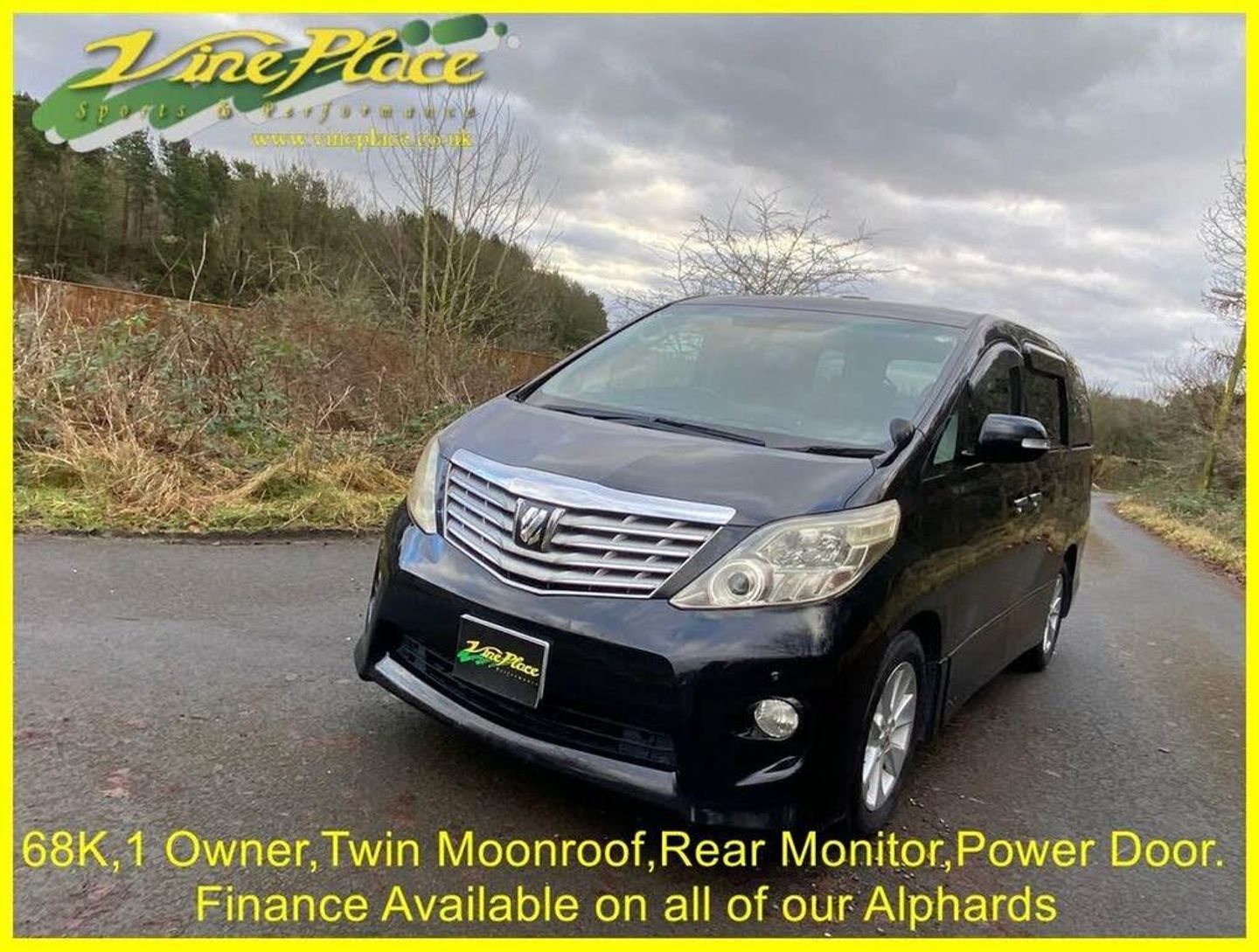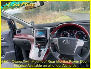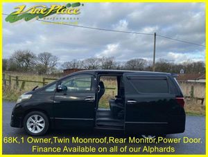 In 2008, the second generation of the Alphard made its debut. While maintaining a similar size to its predecessor, this model represents an entirely new vehicle, with significant advancements. Notably, it excels in fuel efficiency compared to the older version. The Alphard is offered with a choice between a 2.4 or 3.5-liter engine, accommodating either 7 or 8 seats. Additionally, drivers can opt for either front-wheel drive or 4-wheel drive for enhanced versatility on the road. This car has had just one Japanese owner. Its an 8 seat version and has twin moonroofs, a drop down monitor and power doors on both sides oh the vehicles. + ULEZ Compliant (London). + Fresh from Japan. + 68K warranted miles with BIMTA/AA mileage certificate. + 1 Japanese owner from new. + Grade 4 vehicle (non-accident history in good order). + All factory recalls carried out. + 8 Seats. + Leg rest on middle seats. + Switchable 4 Wheel Drive. + Twin moonroofs. + Rear drop down monitor. + DVD. + Colour reverse camera. + Front parking sensors. + Rear parking sensors. + Twin power doors. + Factory fitted ISOFIX. + Keyless entry and starting. + Traction Control. + Retractable mirrors. + XENON Headlamps for superb night-time vision. + Fold up rear seats. + Toyota alarm and immobiliser security system. + Privacy glass. + 2 Remote key fobs. + Fog light incorporated into original rear light unit. + Exposed areas of floor and chassis to be undersealed with Body-shutz. + Includes Bluetooth adapter to allow streaming to car audio. + Nationwide delivery £199. (£299 Devon, Cornwall, and South/West Wales) + Supplied with comprehensive service and MOT (inc. advisories). + MPH speedometer available as an optional extra. + Full integrated upgrade to Apple CarPlay and Android Auto Available as an optional extra (retains original look). + Grundig infotainment with DAB, Apple Car Play and Android Auto available as an optional extra. + Cruise control available as an optional extra. + Switchable power/economy upgrade available as an optional extra. + LPG conversion available as an optional extra. + This vehicle can be reserved with a deposit of £500, refundable in the unlikely event that when fully prepared you are not entirely satisfied. Explore our extensive selection of Toyota Alphard's vehicles, with 30 or more units available for sale in the UK or en-route! Since 1997, Vine Place has been importing a diverse range of vehicles from Japan. The Toyota Alphard holds a special place in our lineup for its exceptional blend of practicality, aesthetics, comfort, unwavering reliability, and impressive performance. Not only do we offer the Toyota Alphard for sale, but as a leading Toyota Alphard dealer in the UK, we extend our commitment to customer satisfaction by providing top-notch service and repair options for all our Toyota Alphard customers. Official Japanese Fuel Consumption for the 2.4 Alphard is 11.6 kml/ltr (32.8 MPG) and the 3.5 is 9.5 klms/ltr which equates to 26.8 mpg. With around 150 vehicles in total stock we don’t have all cars on site. At any one time we will have cars in Japan, on various ships, in preparation or at one of our 4 storage facilities. We do however have demonstrators at Wingate. However, please call Karen on 01429 836029 or email Dave at dave@vineplace.co.uk to make an appointment. This will ensure both a demonstration vehicle and a member of staff are available at the appointed time. Stock no. 1860