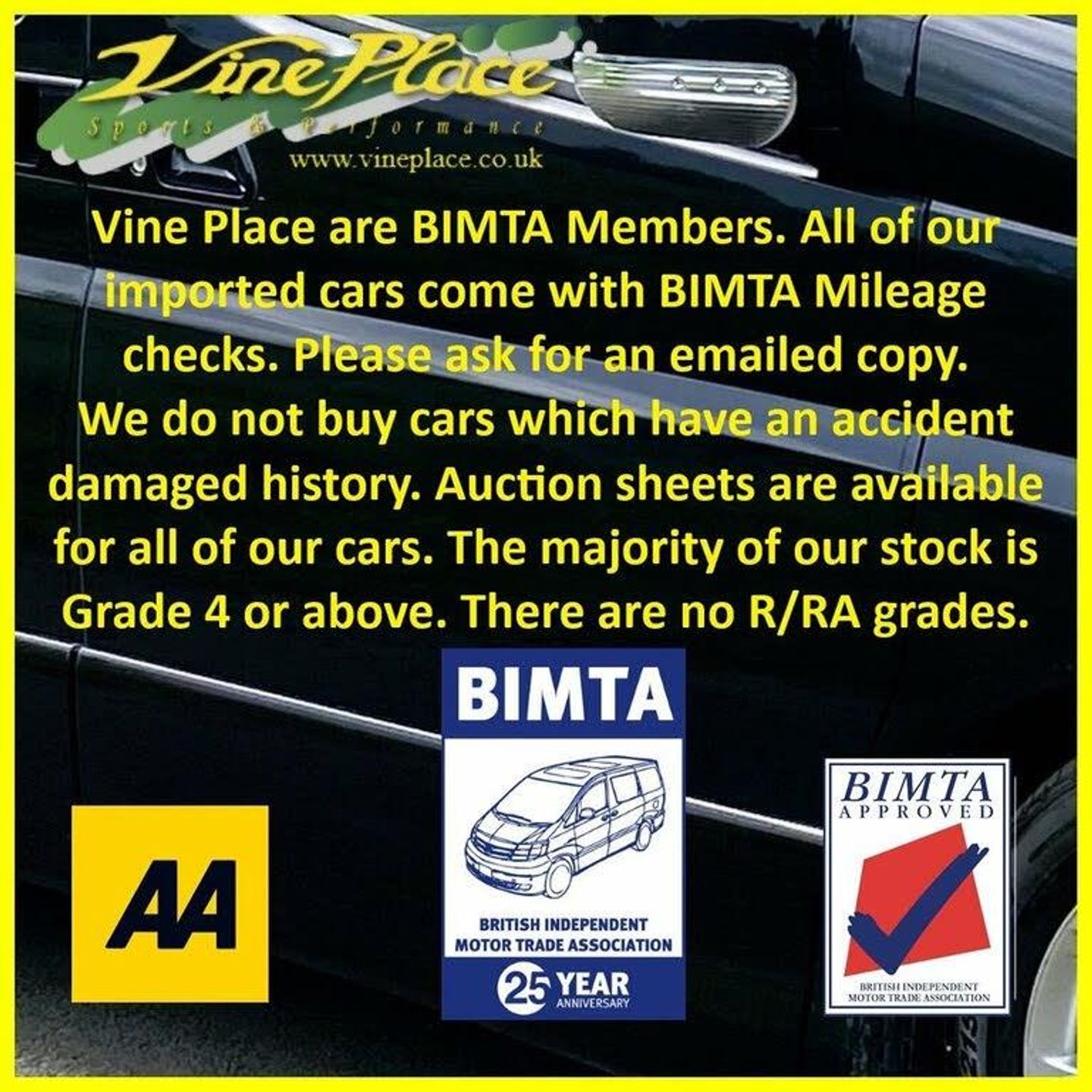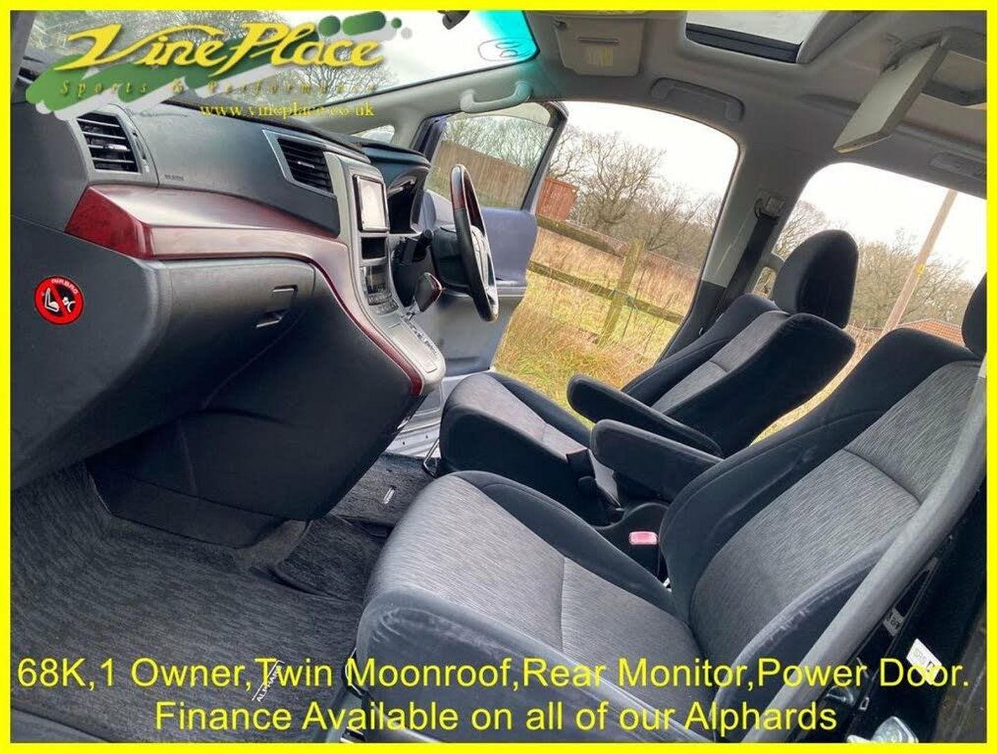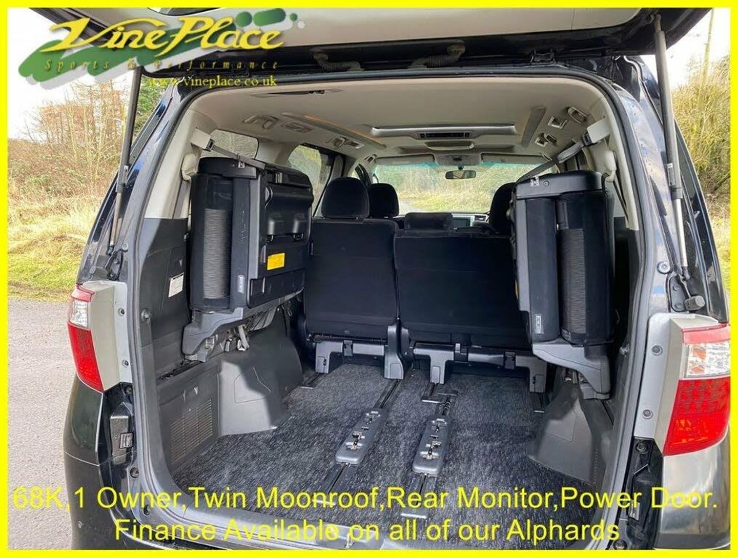 In 2008, the second generation of the Alphard made its debut. While maintaining a similar size to its predecessor, this model represents an entirely new vehicle, with significant advancements. Notably, it excels in fuel efficiency compared to the older version. The Alphard is offered with a choice between a 2.4 or 3.5-liter engine, accommodating either 7 or 8 seats. Additionally, drivers can opt for either front-wheel drive or 4-wheel drive for enhanced versatility on the road. This car has had just one Japanese owner. Its an 8 seat version and has twin moonroofs, a drop down monitor and power doors on both sides oh the vehicles. + ULEZ Compliant (London). + Fresh from Japan. + 68K warranted miles with BIMTA/AA mileage certificate. + 1 Japanese owner from new. + Grade 4 vehicle (non-accident history in good order). + All factory recalls carried out. + 8 Seats. + Leg rest on middle seats. + Switchable 4 Wheel Drive. + Twin moonroofs. + Rear drop down monitor. + DVD. + Colour reverse camera. + Front parking sensors. + Rear parking sensors. + Twin power doors. + Factory fitted ISOFIX. + Keyless entry and starting. + Traction Control. + Retractable mirrors. + XENON Headlamps for superb night-time vision. + Fold up rear seats. + Toyota alarm and immobiliser security system. + Privacy glass. + 2 Remote key fobs. + Fog light incorporated into original rear light unit. + Exposed areas of floor and chassis to be undersealed with Body-shutz. + Includes Bluetooth adapter to allow streaming to car audio. + Nationwide delivery £199. (£299 Devon, Cornwall, and South/West Wales) + Supplied with comprehensive service and MOT (inc. advisories). + MPH speedometer available as an optional extra. + Full integrated upgrade to Apple CarPlay and Android Auto Available as an optional extra (retains original look). + Grundig infotainment with DAB, Apple Car Play and Android Auto available as an optional extra. + Cruise control available as an optional extra. + Switchable power/economy upgrade available as an optional extra. + LPG conversion available as an optional extra. + This vehicle can be reserved with a deposit of £500, refundable in the unlikely event that when fully prepared you are not entirely satisfied. Explore our extensive selection of Toyota Alphard's vehicles, with 30 or more units available for sale in the UK or en-route! Since 1997, Vine Place has been importing a diverse range of vehicles from Japan. The Toyota Alphard holds a special place in our lineup for its exceptional blend of practicality, aesthetics, comfort, unwavering reliability, and impressive performance. Not only do we offer the Toyota Alphard for sale, but as a leading Toyota Alphard dealer in the UK, we extend our commitment to customer satisfaction by providing top-notch service and repair options for all our Toyota Alphard customers. Official Japanese Fuel Consumption for the 2.4 Alphard is 11.6 kml/ltr (32.8 MPG) and the 3.5 is 9.5 klms/ltr which equates to 26.8 mpg. With around 150 vehicles in total stock we don’t have all cars on site. At any one time we will have cars in Japan, on various ships, in preparation or at one of our 4 storage facilities. We do however have demonstrators at Wingate. However, please call Karen on 01429 836029 or email Dave at dave@vineplace.co.uk to make an appointment. This will ensure both a demonstration vehicle and a member of staff are available at the appointed time. Stock no. 1860