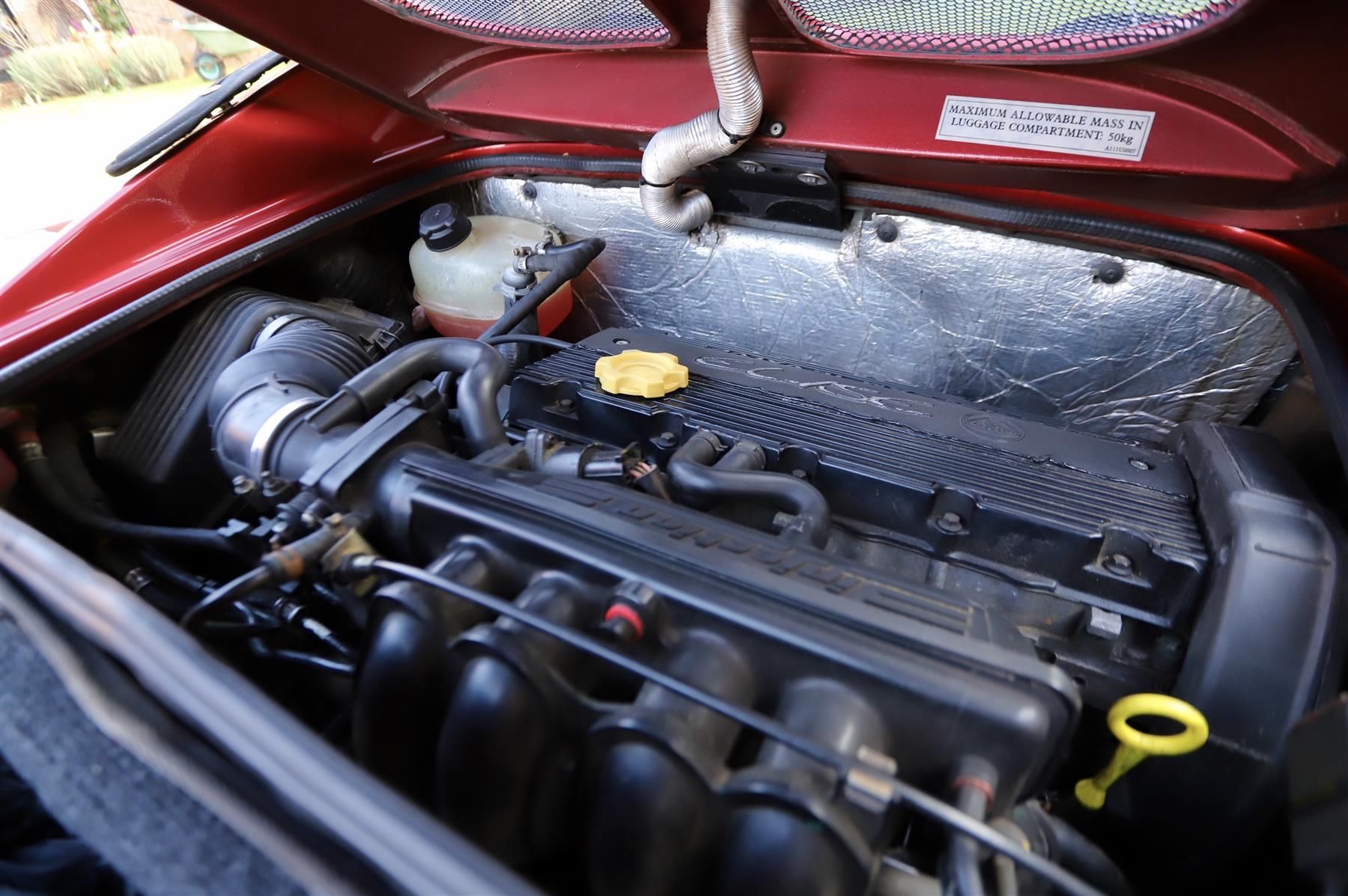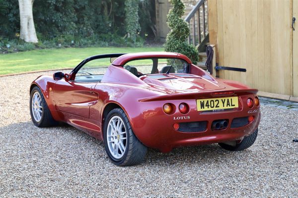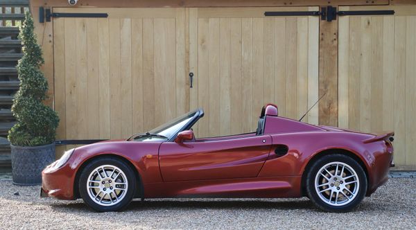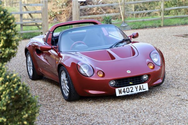 Lotus Elise S1, 2000. Ruby red metallic with black leather and Alcantara seat inserts stitched in red. Red leather steering wheel. 53k miles with a stamped up service history from new. Driving lamps, Elise carpets and alloy window winders. Stainless steel sports exhaust. In 2023 a 1,000 miles ago the cam-belt was replaced, new water pump, handbrake cables and rear brake pads and alternator belt plus rear wheel bearings within the full service. Last service in January 2024. Radiator replaced in 2022. Thoroughly well maintained and superb condition throughout and rare in this stunning colour. Delivery anywhere can be arranged.