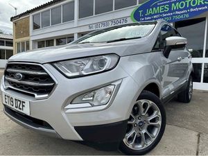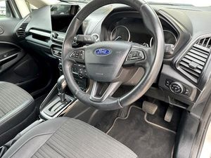 Blind Spot Information System with Cross Traffic Alert,Comfort Pack,Ford Keyless Entry and Keyless Start,Rear Privacy Glass,Moondust Silver, Emergency Assistance, Ford SYNC 3 Navigation with 8in Touchscreen, Front and Rear Power Points - 12V, Cruise Control, Gear Shift Indicator, Select Shift Sports Mode Technology, Trip Computer, Tyre Pressure Monitoring System, 17in Alloy Wheels - 10 Spoke Flash Grey Machined, Chrome Headlight Bezel, Door Handles - Body Colour, Door Mirrors - Body Colour Housing, Door Mirrors - Power-Foldable Heated with Integrated Side Indicator and Puddle Lights, Front and Rear Bumper - Body Colour with Dark Insert, Front Fog Lights and Turn Indication Light Bezel - Body Colour, Front Grille - Chrome, Lower Body Side - Door Claddings - Black with Chrome Insert, Power Front and Rear Windows with Global Opening-Closing, Quickclear Heated Front Windscreen, Rocker Panel and Side Cladding - Black, Silver Roof Rails, Tailgate Handle - Chrome, Tyre Inflator Kit, Tyre Repair Kit, Automatic Headlights, Front Fog Lights with Combined Turn Indication Light, Halogen Rear Lights, Headlights - Courtesy Delay, Headlights - Levelling Control, Headlights - Projector Beam Headlight with LED Daytime Running Lights, High Mounted Brake Light, Adjustable Boot Load Floor, Air Conditioning - Electronic Automatic Temperature Control - EATC, Ambient Lighting - Instrument Panel and Footwell, Analogue Instrument Cluster, Auto-Dimming Electrochromic Rear-View Mirror, Centre Console Cup Holder with Chrome Accent, Centre Console with Covered Bin and Sliding Armrest, Courtesy Light - Front with Two Map Lights, Courtesy Light - Rear, Door Frame Beltline - Chrome, Driver and Passengers Sun Visor with Covered Vanity Mirror and Ticket Strip on Drivers Side, Driver Seat Manual Height- Fore/Aft and Seatback Angle Adjustment and Recliner, Driver Seat Manual Rotary Knob Lumbar Support Adjustment, Drivers Stowage Glovebox, Front and Rear Floor Mats, Front and Rear Folding Grab Handles, Front Seat - Passenger Manual - Fore-Aft and Recline Adjustment, Front Seat - Under Passenger Seat Stowage, Front Seats - 2-Way Head Restraint Up-Down, Front Seats - Seat-Back Map Pockets, Full Length Overhead Console with Sunglasses Holder, Handbrake Grip - Leather-Trimmed, Height Lumbar Adjustment on Drivers Seat, Keyless Start with Ford Power Start Button, Leather Handbrake and Gearknob, Load Compartment - Lights, Load Compartment Carpet, Load Compartment Side Trim Incorporating Shopping Hooks, MyKey, Rake Adjustable Rear Seat, Rear Seat - 60-40 Split Folding Seats, Rear Seats - 2-Way Head Restraint Up-Down, Rear Seats - Centre Head Restraint - Up-Down, Soft Instrument Panel Cover, Steering Column - Rake and Reach Adjustment, Steering Wheel - Leather-Trimmed with Chrome Inserts, Threshold Plates - Front - Stainless Steel with EcoSport Logo, Tie-Down Hooks, Wipers - Front - Automatic with Rain Sensor, EPAS - Electric Power Assisted Steering, Front Suspension - Independent with MacPherson Struts and Anti-Roll Bar, Rear Suspension - Semi-Independent Twist Beam with Twin Gas and Oil-Filled Shock Absorbers, Suspension - Front Stabiliser Bar, Airbags - Curtain, Airbags - Driver and Front Passenger, Airbags - Drivers Knee, Airbags - Front Passenger De-Activation Switch, Alarm - Thatcham Category 1 with Volume Sensing and Perimeter, Anti-Lock Braking System - ABS with Electronic Stability Control - ESC, Child Locks, Engine Immobiliser, ESP - Electronic Stability Programme with Hill Launch Assist, Ford Easy Fuel - Capless Refuelling System, Front Seats - 3 Point Seat Belts with Load Limiter and Seatbelt Height Adjust, IPS - Intelligent Protection System, Manual Parking Brake, Rear Seats - Retractable Rear Seat Belt - 3-Point All Positions, Rear View Camera Pack, Remote Central Locking, Seat Belt Reminder System - Drivers and Front Passengers, Seats - ISOFIX Mounting Provision for Child Seats - Outer Seats Only, Side Impact Door Beams, Wipers - Rear Wash-Wipe -