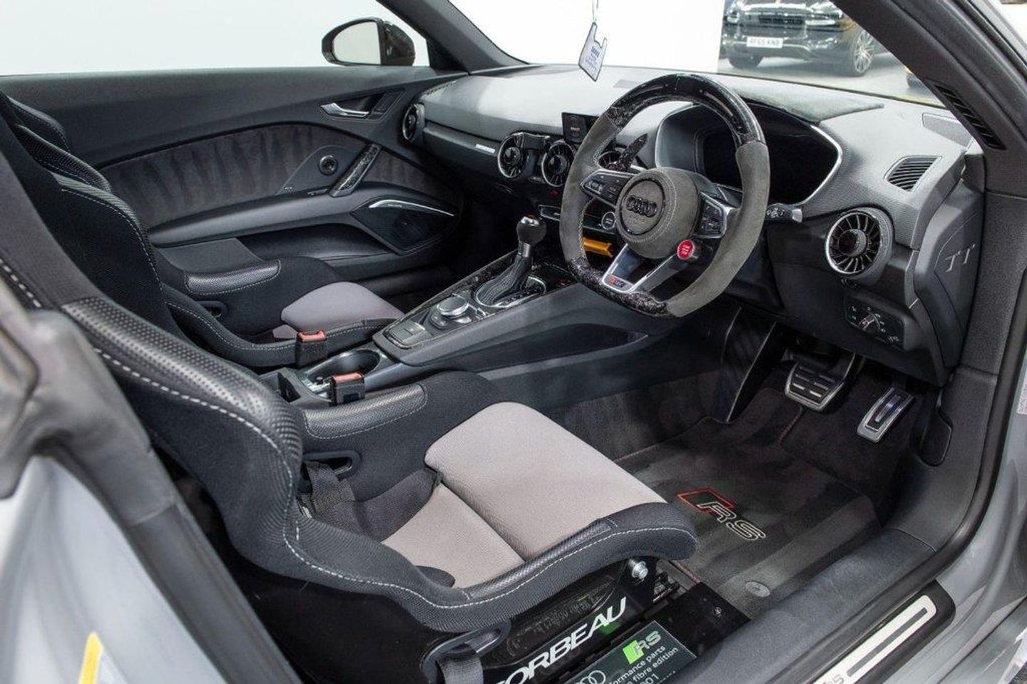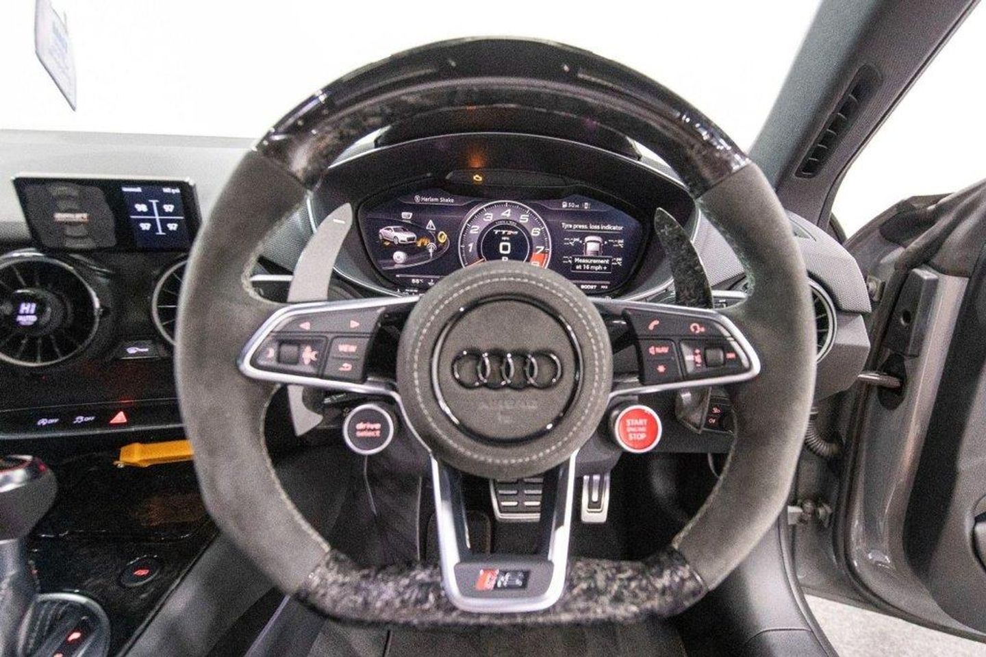 Here we have a very unique and supercar slaying Audi TT RS 2.5 Quattro A-S, showing 57363 miles with both Audi and specialist service history, Incredible performance that can be boosted up-to 600BHP Giving absolutely sensational performance, Upgrades are as follows - Switchable Starlight roof, Corbeau heated sports seats, Forged carbon interior trim, Forged Carbon exterior trim including Roof, Side skirts, Splitters, Diffuser, Swan neck GT Spoiler and door mirrors, Tuned auto gearbox with over power protection, Switchable sports exhaust with Akrapovic tips, Rotiform DTM 20" Alloys with Pirelli Trofeo R semi slick tyres, EBC yellow stuff pads and 2 piece discs, Airlift performance with remote App option, Carbon APR Intake, MRC tuned 3 stage boost, Flat bottom steering wheel with paddle shift and rev indicator, Standard equipment includes, Audi Drive select, TTRS Door sill covers, Heated electric door mirrors, Virtual cockpit with adjustable view, Satellite navigation, Bluetooth preparation with music streaming, Privacy glass, Front and rear parking sensors with reverse camera, Door puddle lights, Complementary three months warranty supplied with all vehicles as standard. Extended warranties supplied through Warranty Wise - just ask us for a quote! To arrange a viewing of this outstanding vehicle at our Chesterfield premises, just off the M1, please call us to arrange an appointment. ALL CARS HPI CLEAR ** INTERNATIONAL DELIVERY ** WARRANTY ** PART EXCHANGE ** 9.9% APR FINANCE AVAILABLE. Storage Package,Privacy Glass,Sport Exhaust,19in Alloy Wheels - 5-Arm Polygon Design - Galvanised Silver,Aluminium-Effect Door Mirror Housings,Anti Theft Locking Wheel Bolts,Brake Calipers - Painted Black with TT RS Logo,Door Mirrors - Electrically Adjustable and Heated,Electric Windows - Front,Engine Cover,Front Spoiler,RS Body Styling,RS Bumpers,TT RS Fixed Rear Wing,TTRS Badge on the Steering Wheel,Twin Pipe RS Exhaust System with Oval Tailpipes,4-Way Electric Lumbar Support for Front Seats,Audi Virtual Cockpit,Auto-Dimming Rear-View Mirror,Coloured Interior Elements in Slate Grey,Deluxe Automatic Air Conditioning with Integrated Digital Displays,Door Sill Trims with Aluminium Inlays and TTRS Logo,Extended Leather Package,Inlays - Aluminium Race Design,LED Interior Light Package,RS Gear Lever Knob - Alcantara,TT RS 3-Spoke Leather and Alcantara Flat-Bottomed Multi-Function Steering Wheel,TTRS Exhaust Sound Button in Centre Console,Audi Active Lane Assist,Audi Drive Select,Audi Parking System Plus,Cruise Co