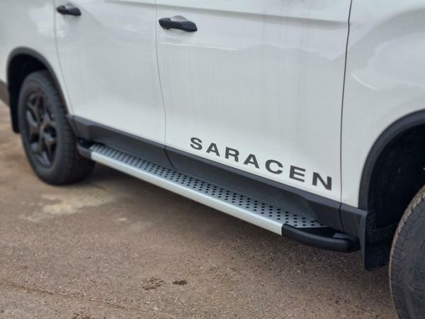 12.3'' HD screen, 12.3'' supervision cluster with colour TFT-LCD trip computer, Automatic headlight control and rain sensing wipers, Blind spot detection, Bluetooth telephone connectivity, Electronic cruise control, Front and rear parking sensors, Hydraulic and speed sensitive power steering, Lane change assist, Rear cross traffic alert, Rear parking camera, TomTom Navigation system, TPMS (Tyre pressure monitoring system), 6 speakers, Apple carplay and google android auto, Audio controls mounted on steering wheel, DAB Radio, MP3, 4A, APE, OGG, WMA, FLAC & WAV file format play, USB and auxiliary socket, Black and silver roof rails, Black and silver side steps, Black finished door mirrors, belt line and tailgate finisher, Chrome ladder style front grille, Daytime running lights, Electric windows, Electric, folding, heated door mirrors with side repeater, Headlamp levelling, High strength steel construction, LED front fog lights, Projection headlamps, Rear privacy glass, Rear wiper, Saracen graphics, Shark fin roof aerial, Trailer sway control, Ultra rigid quad frame for greater strength, Visible VIN plate, 6 way power adjustable front passenger seat, 8 way power adjustable driver seat with power lumbar, A-pillar grab handles, Air vents for rear seat passengers, Automatic de-misting system, Automatic dual zone air conditioning, Floor mats, Glovebox with illumination and key lock, Heated front seats, Heated rear seats, Heated steering wheel, Height adjustable front headrests, Illuminated sun visor with sliding extension, Isofix child seat anchorage points on outer rear seats, Leather covered steering wheel with graphite accents, Premium nappa leather upholstery, Reach and rake adjustable steering column, Rear headrests, Rear seat armrest with cupholders, Stainless front and PVC rear door scuff plates, Tyre parking direction indicator, Ventilated front seats, Woven finish accent to fascia, graphite finish to air vents and door tops, Child safety locks, Curtain airbags for front and rear seat passengers, Door impact beams for added protection from side collisions, Dual airbags for driver and front passenger, Front passenger airbag on/off switch, Front seatbelt pretensioners, Seatbelt reminder for all seats, Side airbags for front passengers, Anti theft alarm system, Immobiliser, Remote central locking, Steering column lock, Anti lock braking system (ABS), Brake assist, EBD, Electronic stability programme, Hill Descent Control, Hill start assist, Push button start, Traction control, 18'' Black alloy wheels, Tyre repair kit, TOW BAR & ELECTRICS