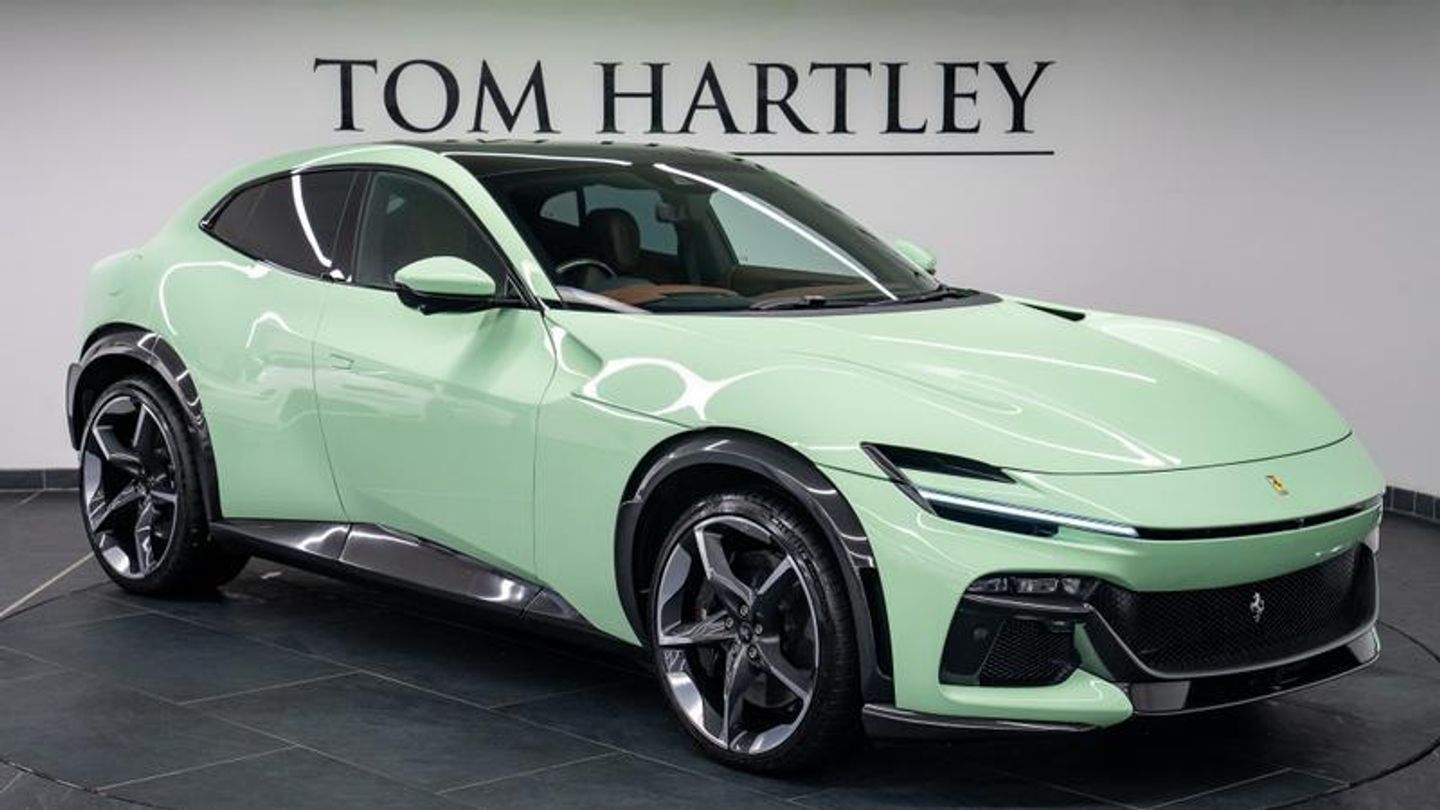 Ferrari Warranty until 2028, Ferrari Service Plan until 2031, Special Order Historical Two-Layer Verde Pallido Paint (�25000), Atelier Car, Panoramic Glass Roof, Carbon Fibre Steering Wheel + LEDs, Glossy Forged Diamond Wheels, High-End Burmester Audio System, Active Matrix LED Headlights, Surround View Parking Cameras, Wireless Smartphone Charger, Air Quality Sensor, Glossy Black Brake Calipers, Black Hub Caps, Dedication Plaque in Silver, Coloured Upper Dashboard in Cioccolato, Luggage Compartment Kit, My Ferrari Connect Readiness, Digital Rear View Mirror, Aluminium Driver and Passenger Footrests, Smartphone Interface, Privacy Rear Windows, Coloured Steering Wheel in Cioccolato, Headliner in Cioccolato Leather, Wheel Stud Bolts in Titanium.
