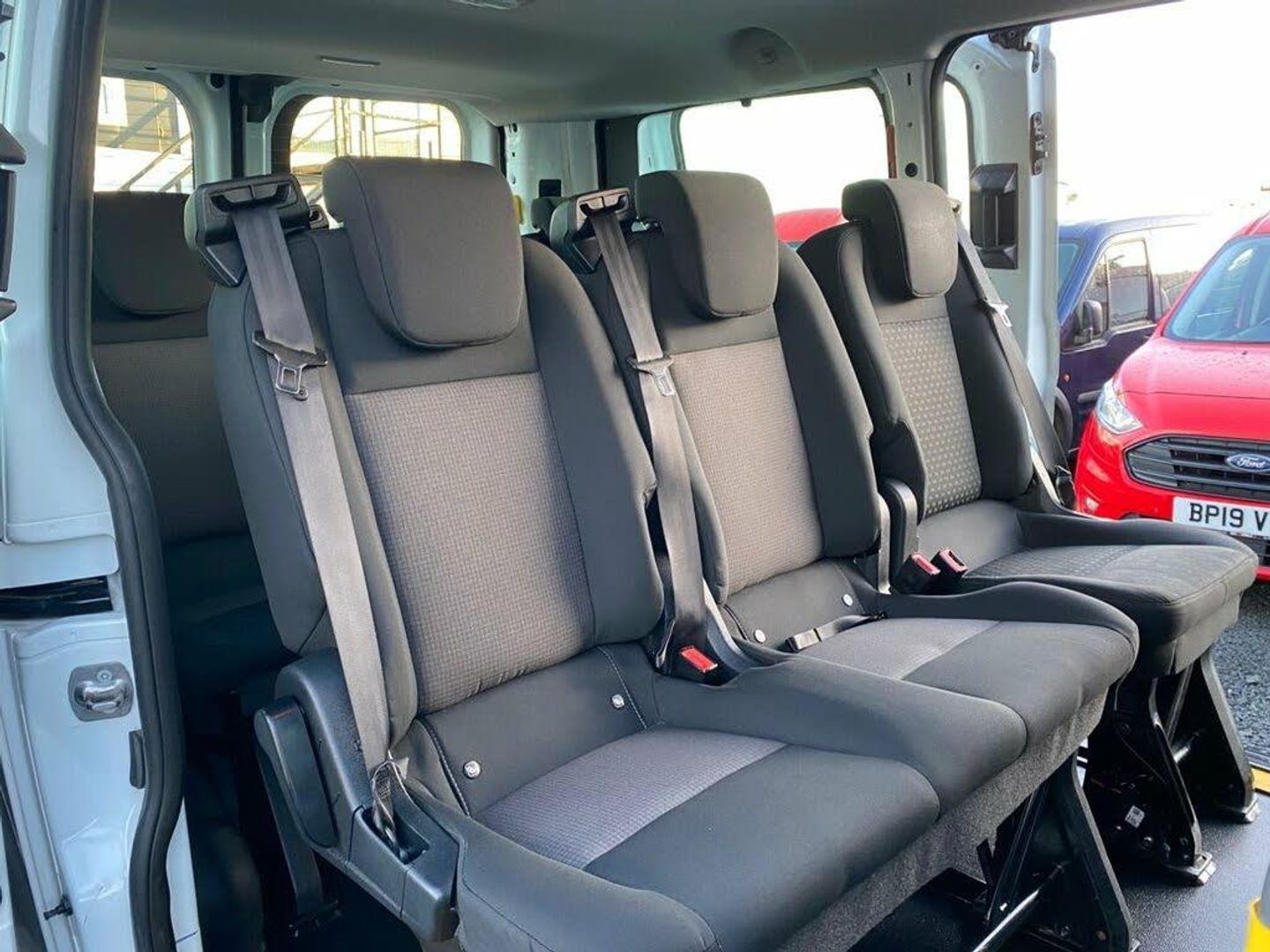 16in Steel Wheels, 2 Interior Grab Handles, 3 Button Key Fob, 8 Way Adjustable Drivers Seat with Armrest, ABS - ESP - HLA and FBS, B Pillar Assist Handle, Black Dual Manual Signal Mirrors, Black Exterior Door Handle, Black Exterior Mirror Finish, Black Lift-Decklid Exterior Handle, Bottle Holder - Twin 2 litre Bottle Capacity - Facia-Mounted, Brakes - ESP - HLA - FBS, Complete Grille with 3 Bars, Complete Rubber Inside Floor Cover, Configurable Unlocking - Config 2, Courtesy Lights - Header, Daytime Running Lamps, Door Open Tyre Carrier Drop, Doors Auto Re-Locking, Driver Airbag Restraint, Driver Non-Illuminated Sunvisor, Drivers Airbag, Dual Note Electric Horn, EBA - Emergency Brake Assist, Electrical Outlet, Electrically-Operated Front Windows with One Touch Drivers, Embedded Modem, Emergency Brake Light Flashing, Emergency Brake Warning, Extra Heavy Duty Alternator, Fixed 2nd Row L-H Side Window, Fixed 2nd Row R-H Side Window, Fixed Rear Window - Cargo Door or Liftgate, Floorwell Lights, Ford Easy Fuel System, Ford Eco Mode - Driver Information System, Front Active Seat Belts, Front Headlamp Leveling, Front Seat Belts with Pre-Tensioners, Front Splash Guard - Mud Flaps, Glovebox - With Lid and A4 File Storage Capability, Headlights - Halogen, Headlights - Quad Beam, Headliner - Complete, High Mounted Stop Lamp, Hub Caps, ICE Feature Pack 17, Immobiliser - Safeguard Passive Anti-Theft System - PATS - Insurance-Approved Category 2 Immobiliser, Interior Trim Accent Pack A, Kerbside Side Load Door, LAC - Load Adaptive Control, Load Compartment - Tie Down Loops x2, Load Compartment Light, Locks - Remote Control Central Locking with One Key Fob, Low Series Cluster, Mechanical Parking Brake, Mini Overhead Console, Molded Gear Shift Knob, Multi Channel Door Entry Remote, Non Locking Wheel Nuts, Partial Body Coloured Front Bumper, Passenger Airbag Restraint, Passenger Non-Illuminated Sunvisor, Passenger Side Sliding Load Door - Glazed, Power Assisted Steering, Power Door Deadlocks - Shielded, Power Lock Group, RSC - Roll Stability Control, Rear Bumper - Self Colour, Rear Cargo Door Check Arms - 90 Degree, Rear Cargo Doors - Glazed and Heated, Rear Coat Hook, Rear Door Edge Reflector Strip, Rear Power Point Plug, Rear Seat Belts, Rear Seat Pack 6, Rear Splash Guards, Recirculation Heater - Front, Remote Central Door Locking with Deadlocks, Restricted Side Load Door Opening, Seat Belt Reminder System - Drivers and Front Passengers, Seat Pack 4, Seats - Dual Passenger with Underseat Stowage, Selectable Drive Mode, Shift Indicator Light, Side Wind Mitigation, Side-Rear Door Trim Panel - Level 1, Single Fuel Tank, Spare Wheel - Conventional, Standard Duty Battery, Standard Duty Suspension, Starter Equipment -20 Degrees C, Steering Column - Rake and Reach Adjustment, Steering Wheel - Polyurethane, Storage - Drivers Side - Storage Compartment on Facia Top, Storage - Front Door Map Pockets, Tinted Glass Complete, Tool Kit, Traction Control - TC, Transmission Linked Rear Wash Wipe, Trip Computer, Two 12V Power Socket, Two Stage Unlocking, Tyre Pressure Monitoring System, Vehicle Identification Number - VIN - Visible, Vehicle Maintenance Monitor, Water in Fuel Filter with Sensor, Wide Bodyside - Grey Moulding, Windows - Fixed 3rd Row - RHS and LHS, Wipers - Front Variable Intermittent
