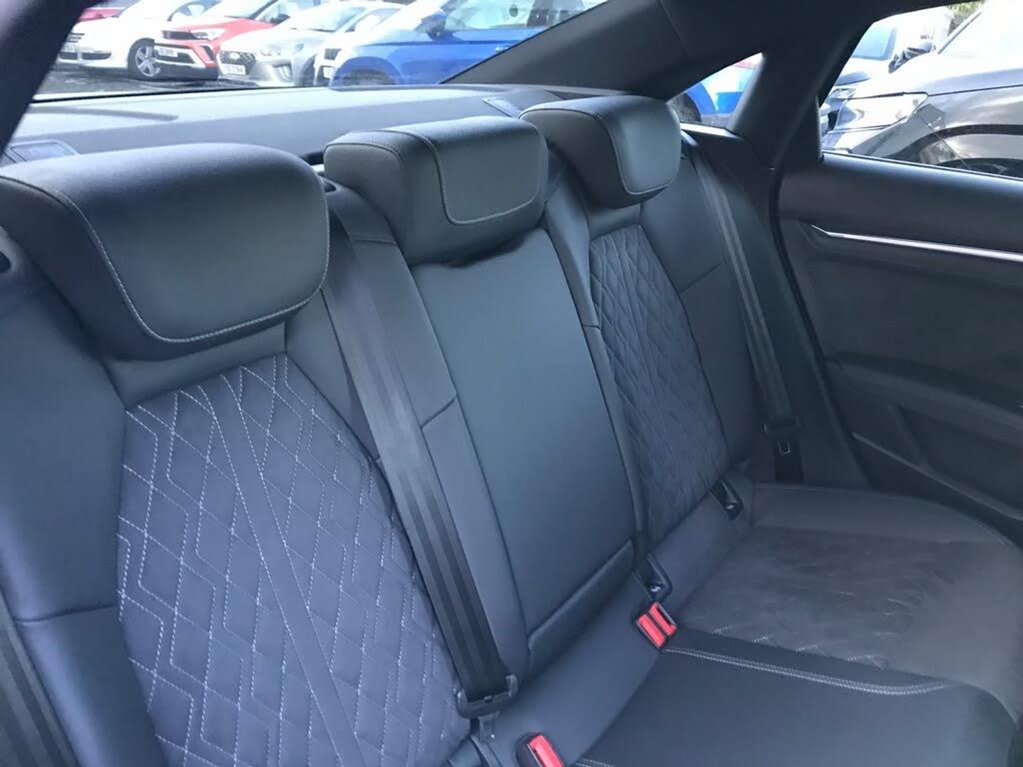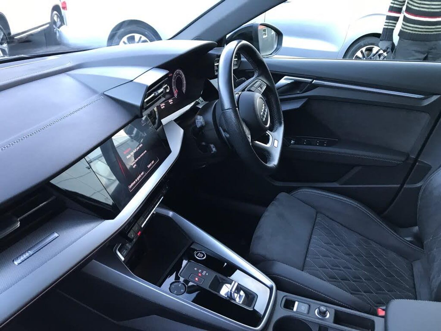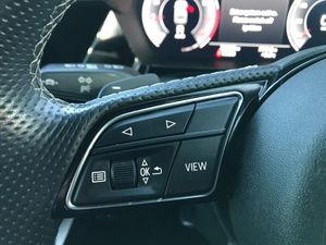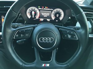 Audi connect emergency call and service, Audi drive select (Auto, Comfort, Dynamic, Efficiency and Individual), Audi smartphone interface, Audi virtual cockpit plus - 12.3" dynamic digital instrument cluster, Automatic start/stop system with recuperation, Bluetooth interface, Collision avoidance assistant, Electromechanical power speed sensitive steering, Lane departure warning system, MMI Navigation Plus with high resolution 10.1" colour touch screen display, Service indicator, Voice control system with natural language interaction, Sports suspension, 2x USB Type C ports (for charging and data transfer), 6 passive loudspeakers, CD player, DAB Digital radio, 3rd brake light, Acoustic glass windscreen, Audi matrix LED headlights, LED rear lights, dynamic front and rear indicators and headlight cleaning system, Auto dimming frameless rear view mirror, Electrically adj heated/folding + automatically dimming exterior mirrors + automatic kerb side function for passenger side exterior mirror, Front electric windows, Illuminated door sills with aluminium inserts at the front with S logo, Integrated LED indicators in door mirrors, LED daytime running lights, Light and rain sensors, Model and engine designation badges at rear, Privacy glass - dark tinted rear window, rear door and side windows, Rear electric windows, S roof spoiler, 12V socket and storage compartment in front centre console, 4 way electrically adjustable lumbar support for driver and front passenger, 40/20/40 split folding rear seat bench with cupholder, Black cloth headlining, Dual zone electronic climate control, Electrically adjustable front seats, Front and rear centre armrest in leather, Front and rear headrests, Front/rear floor mats, Heated front seats, Height and reach adjustable steering wheel, Interior lighting - glove compartment light and right hand side, Luggage compartment floor covering, Seat side bolsters, Stainless steel pedals and front footrest, Aluminium interior elements pack - A3 Saloon, Black styling pack - A3/S3, Dinamica microfibre/mono.pur 550 artificial leather pack - A3 Saloon, Extended ambient lighting pack - A3/S3 Saloon, LED interior lighting pack - A3 Saloon Edition 1/Vorsprung, 3x3 point rear seat belts, Driver and front passenger airbag with passenger airbag deactivation, Electronic Stabilisation Control (ESC) including ABS, ASR and EDL, First aid kit with warning triangle and 2 safety vests, Front side airbags with head airbags and interaction airbag, Hill hold assist, Pre-sense front with pedestrian and cyclist detection, Seatbelt monitoring, Tyre pressure loss indicator, Anti theft alarm, Anti-theft wheel bolts, Electronically operated child lock, Immobiliser, Remote control central locking, Aluminium air vent surrounds, Aluminium trim elements, Dark spectrum aluminium inlays, accent surfaces in the dashboard and centre console in platinum grey silk effect paint finish, 19" 5 arm trapezoid design alloy wheels in titanium matt grey with diamond cut finish