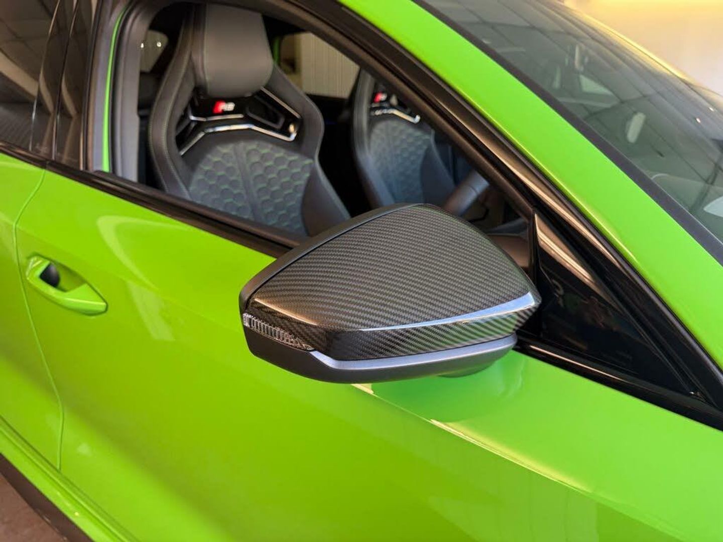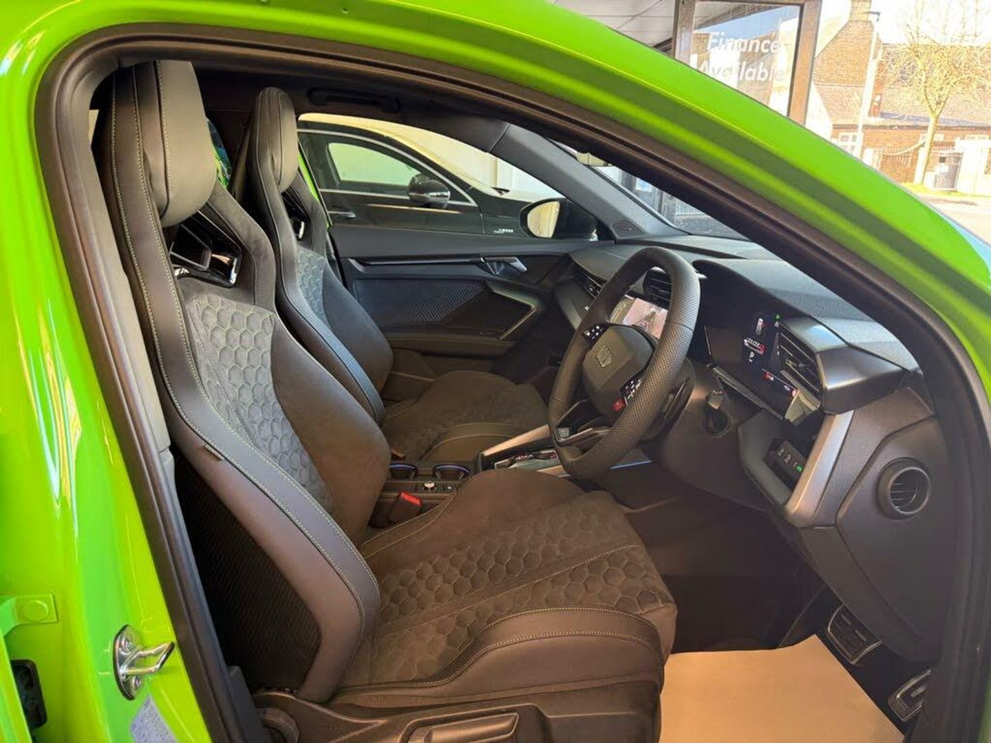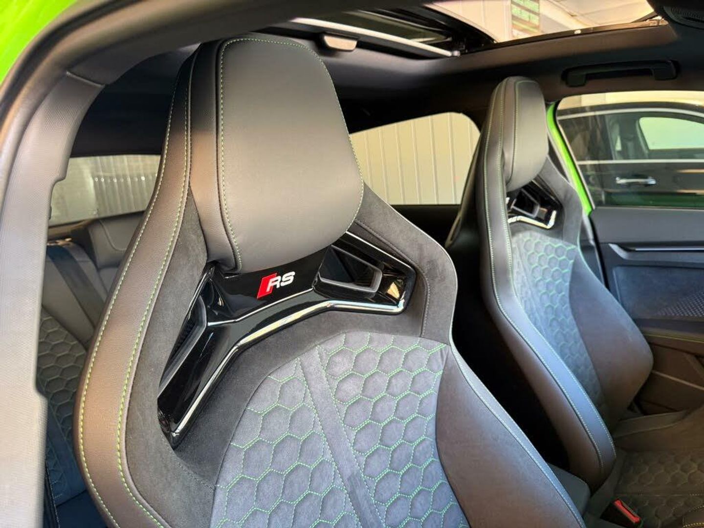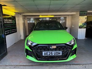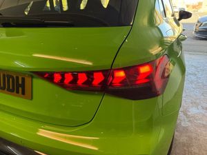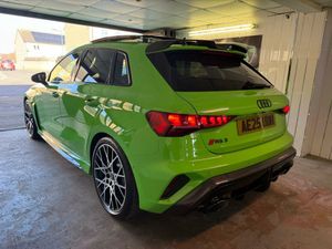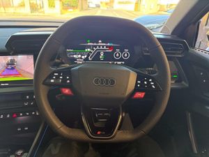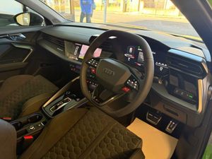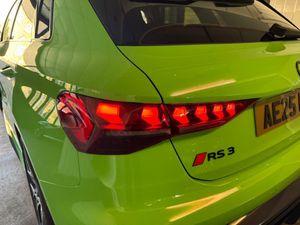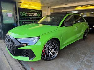 12v Socket and Storage Compartment in Front Centre Console, 19in Alloy Wheels - 10-Cross-Spoke Black Metallic, 3-Zone Deluxe Automatic Air Conditioning, 4-Way Lumbar Support for Front Seats, Adaptive Suspension with Audi Drive Select, Airbags - Driver and Front Passenger with Passenger Airbag Deactivation, Ambient Lighting Package Pro, Anti Theft Locking Wheel Bolts, Anti-Theft Alarm, Audi App Store and Smartphone Interface, Audi Beam, Audi Connect Navigation and Infotainment Services Plus - 3 Year Subscription, Audi Phone Box with Wireless Charging, Audi Pre-Sense Front, Audi Virtual Cockpit with RS Specific Design and 12.3in Display, Auto Dimming and Frameless Rear View Mirror, Automatic Start-Stop System with Recuperation, Black Styling Pack Plus, Camera Based Traffic Sign Recognition, Carbon Door Mirrors, Carbon Roof Spoiler, Cloth Headlining in Black, Collision Avoidance Assistant, DAB Digital Radio, Distraction and Fatigue Warning, Door Mirrors - Electrically Adjustable - Heated - Folding - Automatically Dimming with Memory Function and Integrated LED Indicators with Kerb View Function for Passenger Side, Door Sill Trims with RS3 Logo, ESC - Electronic Stabilisation Control inc ABS - ASR and EDL, Electrically Adjustable Front Seats with Memory Function for Drivers Side, Electronically Operated Child Locks, Emergency Call - E-Call, Engine Compartment Cover with Carbon Trim, First Aid Kit and Warning Triangle and 2 Safety Vests, Front Centre Armrest, Front Side Airbags with Head Airbags and Interaction Airbag, Front Sports Seats, Front and Rear Floor Mats, Heated Front Seats, Hill Hold Assist, I-Size and Top Tether Child Seat Mounting for the Outer Rear Seats, Inlays - Carbon Atlas Structure, Interior Accents in Vanadium Look, Lane Departure Warning, Light and Rain Sensor, MMI Navigation Plus with High Resolution 10.1in Touchscreen Colour Display, Manual Boot Compartment Lid, Model Badging - Exterior, Panoramic Sunroof, Parking Assist with Parking System Plus, Pedals in Stainless Steel and Footrest in Black, Privacy Glass, Progressive Steering, RS Exterior Features in Carbon - Gloss Black, RS Sport Exhaust System, RS Steel Brakes with Black Calipers with RS Logo, Remote Central Locking with Safelock, Seat Belt Monitoring, Speed Limiter - Adjustable, Split Folding Rear Seat Bench - 60-40 or Fully, Steering Wheel - Flat Top and Bottomed 3-Spoke Black Leather Multifunction with Shift Paddles in Vanadium Look - Rhombus RS Logo, Storage Package, Technology Pack, Technology Pack Pro, Tool Kit, Top Speed Restriction Increase to 174mph, Tyre Pressure Loss Indicator, Tyre Repair Kit, USB Ports with Charging Function in Rear, Rear Side Airbags with Head Airbag System, Brake Calipers - Red, Dinamica Microfibre-Leather - RS Bucket Seats - Honeycomb Pattern - Black with Micrommata Green Contrast Stitching, Toolkit and Jack, Audi Warranty 5 Years - 90000 Miles - Whichever Comes First