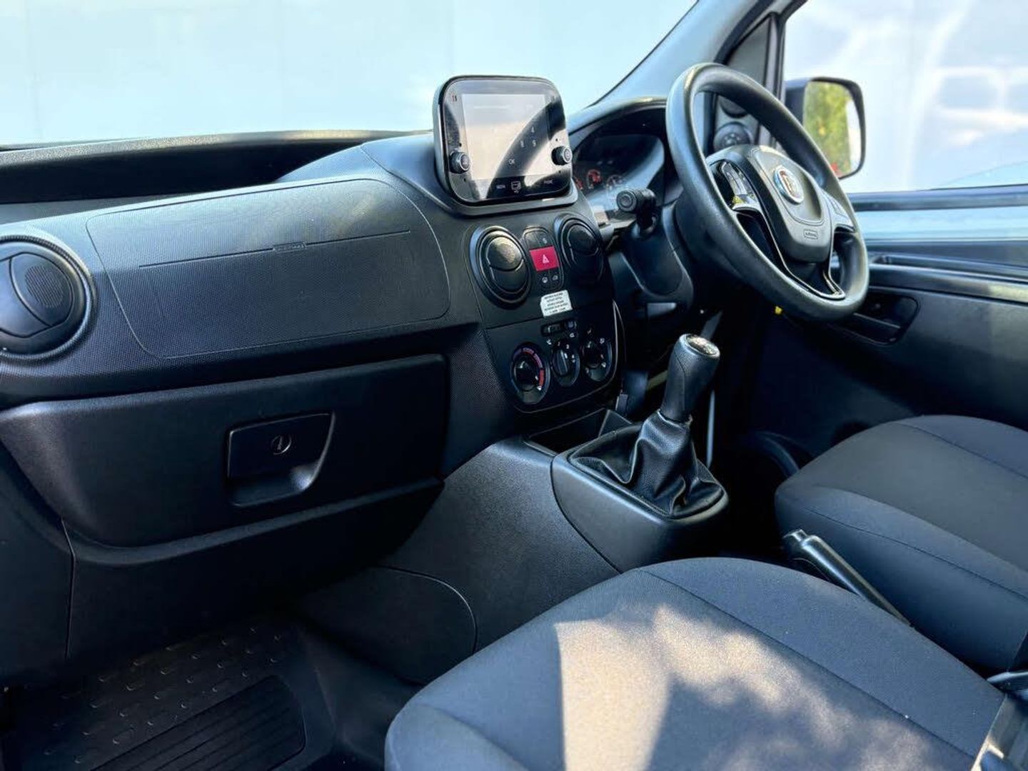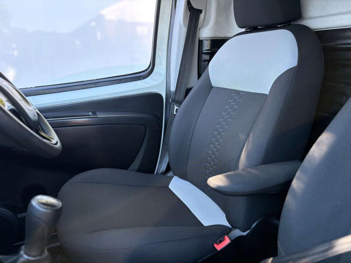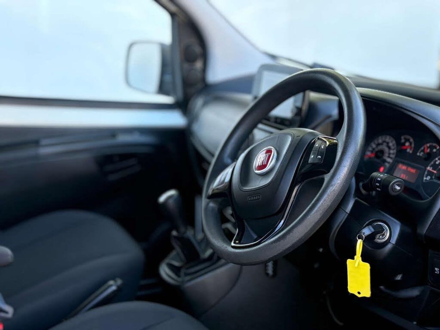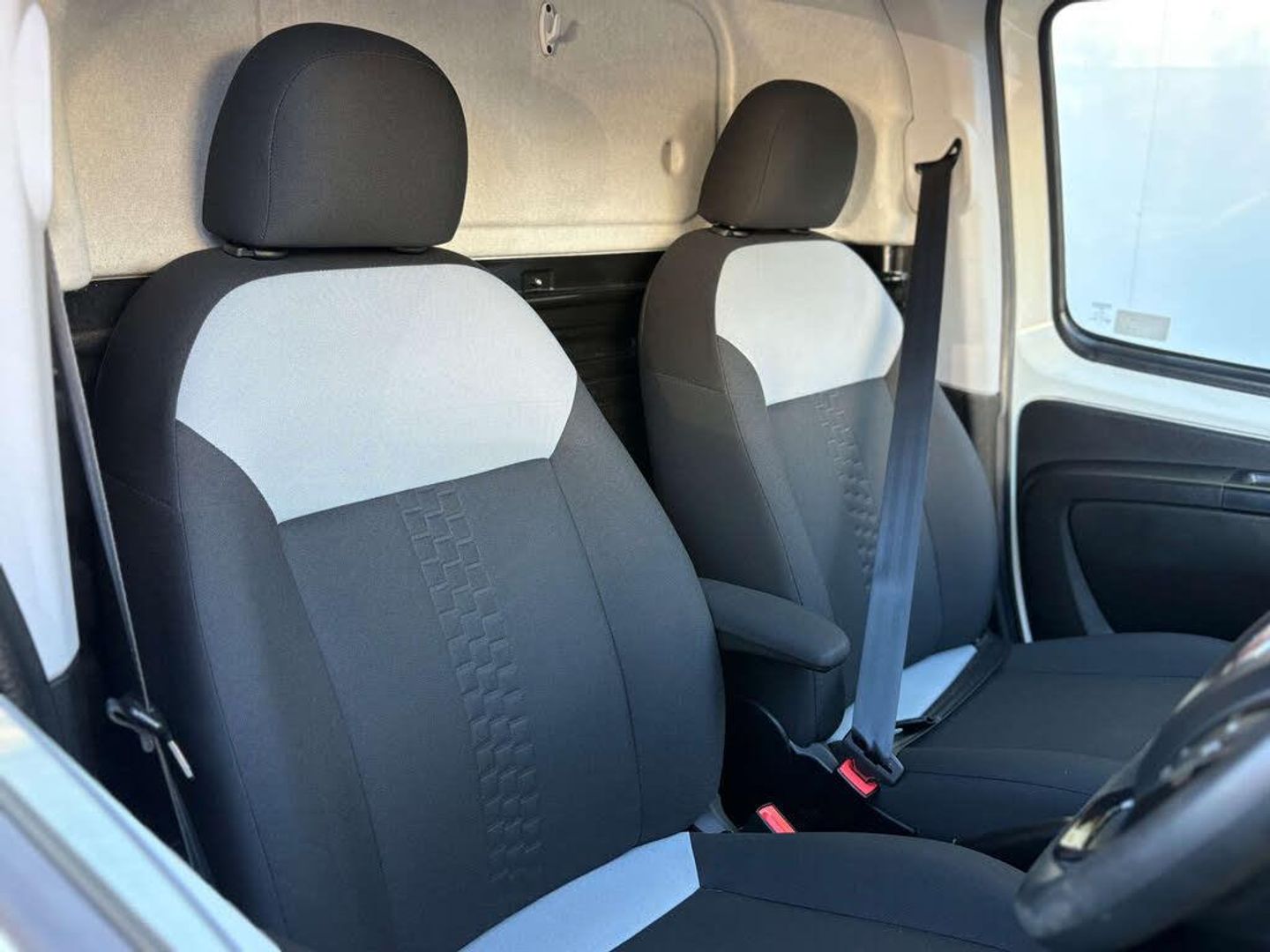 The interior is finished in a stylish cloth upholstery, featuring a black and grey detail that adds a modern flair to the overall aesthetic. Whether you're navigating city streets or exploring the countryside, the Fiat Fiorino is equipped to handle it all with ease.