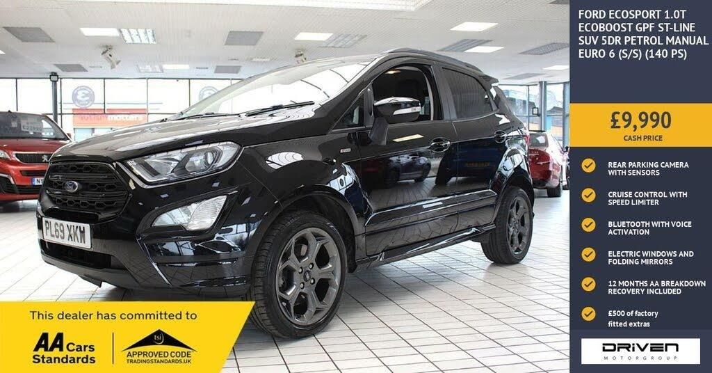 FORD ECOSPORT 1.0T ECOBOOST GPF ST-LINE FINISHED IN BLACK AND COMPLIMENTED BY HALF BLACK LEATHER INTERIOR, THIS VEHICLE HAS BEEN VERY WELL CARED FOR AND MAINTAINED WITH DOCUMENTED SERVICES PLUS COMPREHENSIVE PRE DELIVERY HEALTH CHECK AND SERVICE COMPLETED PRIOR TO SALE AT 30307 MILES. KEY FEATURES INCLUDE DUAL ZONE CLIMATE CONTROL, VOICEACTIVATION BLUETOOTH, TINTED WINDOWS, CRUISE CONTROL WITH LIMITER, COLOUR SCREEN NAVIGATION, DAB RADIO, REAR PARKING SENSORS WITH REAR VIEW CAMERA PLUS MUCH MORE COMMITTED TO AA CARS STANDARDS: 3 MONTHS OR 3000 MILES WARRANTY INCLUDED WITH AN OPTION TO UPGRADE: 12 MONTHS AA BREAKDOWN RECOVERY INCLUDED: £75.00 CONTRIBUTION TOWARDS YOUR NEXT SERVICE/MOT AT ANY AA CARS STANDARD APPROVED WORKSHOP: WE STAND BY THE QUALITY OF OUR VEHICLES. WITH THE PURCHASE OF THIS VEHICLE, YOU WILL RECEIVE 3 MONTHS OR 3000 WARRANTY, 12 MONTHS AA BREAKDOWN RECOVERY, GIVING YOU ADDITIONAL PEACE OF MIND AND PROTECTION. ALL OUR CARS COME WITH AT LEAST 6 MONTHS MOT AND PRE SALE HEALTH CHECK AND ROAD TEST. OUR PROFESSIONAL TEAM ENSURES YOUR VEHICLE STAYS IN TOP CONDITION, AND YOU ENJOY A HASSLE-FREE OWNERSHIP EXPERIENCE. 4.6 STARS ON GOOGLE WITH OVER 550 REVIEWS: JOIN OUR COMMUNITY OF SATISFIED CUSTOMERS! OUR DEALERSHIP IS PROUD TO HAVE A 4.6 STAR RATING ON GOOGLE, BACKED BY OVER 550 POSITIVE REVIEWS. WE ARE COMMITTED TO PROVIDING EXCELLENT SERVICE AND HIGH-QUALITY VEHICLES. This Vehicle Comes Equipped with High Specification, Which Includes: - Drive this car home with complete confidence and satisfaction: All cars proudly offered by driven group are rigorously inspected, hpi checked and prepared to the highest standard To drive this car home, visit www.drivegroup.co.uk or call 01642-601999 to arrange an appointment with our sales team Please note we do not operate an organised distance selling scheme as defined by the consumer contracts (cancellation, information and additional charges) regulations 2013. Therefore, even if you choose to not view your vehicle at our premises prior to purchase,you will not be entitled to cancel your order under any 14 day cancellation period. All other statutory rights remain unaffected. Whilst every effort has been made to ensure the accuracy of the information contained in this website, please check with us about any item which may affect your decision to purchase. Driven motor group shall not be liable for any errors, inaccuracies or delays in content.