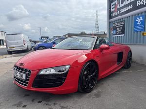 Stunning Audi R8 Spyder 5.2 V10 Quattro S-Tronic The Ultimate Supercar Experience â Now Available at Excel Vehicle Sales! Drive in style, power, and luxury with this breathtaking Audi R8 Spyder! Boasting a roaring 5.2-liter V10 engine paired with Audiâs legendary Quattro all-wheel drive, this supercar delivers an exhilarating performance that's second to none. With its striking looks and premium features, this R8 is the perfect combination of sophistication and sheer power. Why This R8 Is a Must-See: Immaculate Condition** with just 34,000 miles Full Service History & Recent Service** â Ready to go! HPI Clear & Low Mileage** for peace of mind Comprehensive Factory Specification** including: Paddle Shift & Flat Bottom Steering Wheel Bang & Olufsen Premium Sound System Magnetic Ride Control (Mag Ride) for a smooth yet sporty ride Heated & Electrically Adjustable Leather Seats Navigation & Reversing Camera Parking Sensors (front & rear) & Electric Spoiler LED Headlights & Black Grills for that aggressive look Sport Button for extra performance And much more! Exclusive Peace of Mind Package: Extendable Warranty** â usable at any VAT-registered garage across the UK 12 Months RAC Breakdown Cover** 12 Months MOT** â included with every vehicle sale Full Original Manuals, Service Book, 2 Remote Keys, Service Printouts** Drive Away with Confidence! Finance options available** Part Exchange welcomed** All Major Credit/Debit Cards Accepted (Bank Transfer preferred)** Inspection welcome â come see for yourself!** Donât miss your chance to own this stunning supercar! Call us today on 01524 388844 to arrange a viewing or test drive. Excel Vehicle Sales â Your Gateway to Luxury & Performance!