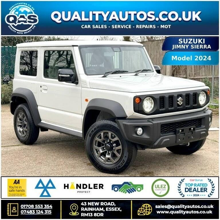 SUZUKI JIMNY SIERRA AUTO 4WD 1.5L PETROL 4 SEATER 24-24 EURO 6 FRESH IMPORT VERIFIED MILEAGE FINANCE AVAILABLE BRAND NEW. PRICES ARE EXCLUSIVE OF VAT JAPANESE AUCTION SHEET GRADE-6A CHOICE OF COLOURS AVAILABLE, THIS LISTING IS FOR FACTORY STANDARD CAR MANY ACCESSORIES AVAILABLE TO FIT INCLUDING 4x4 OFF ROAD SNORKEL AIR INTAKE RELOCATION KIT BLACK STEALTH LOOK FRONT BUMPER LED LIGHT GRILL BLACK REAR DEPLOYABLE FOLDING STEP LADDER KIT BLACK MANGANESE STEEL RUNNING BOARD SIDE FOOT STEPS DUAL LED ROOF TOP LIGHTS KIT BAR TAIL LIGHT LAMP PROTECTOR COVERS GUARDS 2 Keys, 3 YEAR Warranty, (OPTIONAL) All cars are PDI checked i.e Serviced and Valet before delivery. Alloys, Immaculate car, 4 seater very spacious powerful SUV, Electric Folding Mirrors and a lot more, get in touch for more details. Please visit our website to find more detailed pictures and check our stock availability. https://www.qualityautos.co.uk CALL US AT : Off: 01708 553 354 Mob: 07483 124315