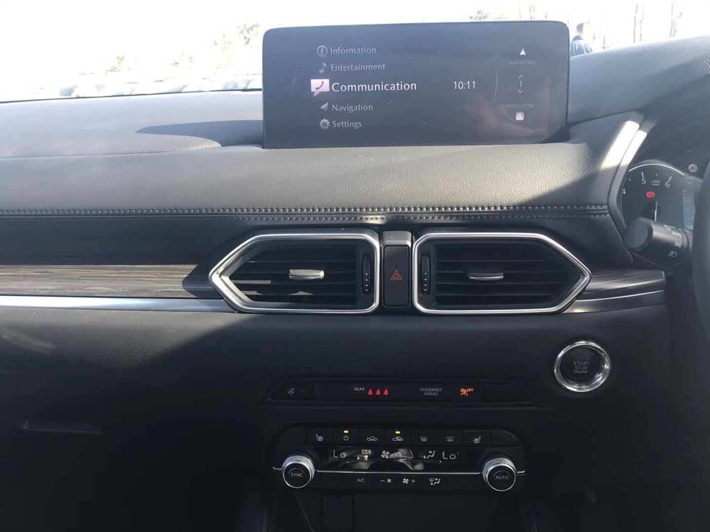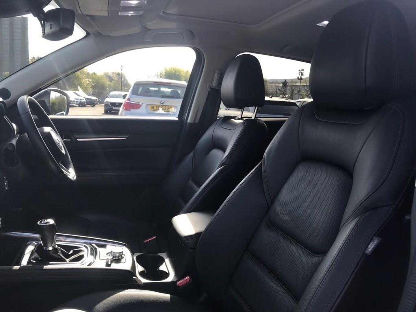 10.25" display with Mazda Connect infotainment, 7" colour TFT display, Advanced blind spot monitoring, Bluetooth connectivity with voice control, Collision prevention assist, Connected services, Cruising Traffic Support, Electric power steering, Emergency stop signalling system, Engine start/stop button, Forward collision warning, Front and rear parking sensors, Integrated navigation system, Intelligent speed assist, Lane departure warning system, Lane keep assist, Power liftgate, Qi wireless phone charging, Radar cruise control, Rear cross traffic alert, Reversing camera, Service indicator, Traffic sign recognition (TSR), Trip computer, Windscreen projected colour active driving display (HUD) with memory, Wireless apple car play/android Auto, i-stop, AM/FM radio, Bluetooth audio streaming, Bose premium sound system with 10 speakers, DAB Digital radio, Multimedia Commander including separate volume dial, Steering wheel mounted audio controls, Adaptive front lighting system, Auto dimming rear view mirror, Automatic headlights, Black inlay dashboard panel, Body colour door mirrors, Body colour roof spoiler, Body coloured front and rear black lower bumper mouldings, Coming/leaving home lighting function, Door mirror integrated indicators, Dusk sensitive headlamps, Electric front/rear windows with one touch auto up/down, Front grille in gloss black finish, Front grille in gloss black finish with chrome signature wing, Gloss black B and C pillars garnish, High beam assist, Intermittent rear wash/wipe, LED auto levelling, LED daytime running lights, LED front fog lights, LED Headlights, LED third brake light, Power folding and heated door mirrors, Power tilt/slide sunroof, Privacy glass (rear side windows only), Rain sensing front wipers, Rear side wing doors, Satin black side mouldings, Scuff plates, Shark fin antenna, Signature LED rear combination lights, Single chrome tailpipes, Variable intermittent front wash/wipe, Vinyl with wood grain metal inlay door trim panel, Windscreen wiper de-icer, 12v electrical power outlet, 3 seat bench in 2nd row, 3 stage heated front seats, 40:20:40 Karakuri fold-flat seat system, 6 way electric adjustable passenger seat, 8 way electric driver seat with lumbar support + memory, Cargo room flat floor board with waterproof undertray, Driver seat power slide, recline and height adjustment, Driver, Front passenger and two rear grab handles with coat hooks, Driver/passenger front seatback pockets, Driver/passenger sunvisors + illuminated vanity mirrors (drivers with ticket holder), Dual zone climate control, Folding centre armrest with 2 cup holders, Front and rear door pockets, Front centre storage with two cupholders, Front passenger seat power slide, recline and height adjustment, Gear shift indicator, Heated steering wheel, Humidity sensor, Illuminated glovebox, Interior dome light with integral spotlight, ISOFIX child seat anchorage points attached on outer rear seats, Karakuri tonneau cover, Leather upholstery, Leather wrapped steering wheel and gear knob, Light roof lining, Luggage compartment LED lighting, Luggage compartment power outlet, Rear air vents, Rear headrests, Rear seat recline, Roof mounted sunglasses holder, Single front passenger seat, Three height adjustable head restraints, Tilt/height adjustable steering wheel, USB Connectivity (2x front Type-C, 2x rear Type-B), White interior LED illumination lighting, 3 point front seatbelts with pre-tensioners, 3 rear 3 point seatbelts, ABS, Advanced Smart City Brake Support - SCBS, Child locks on rear doors, Driver and front passenger side airbags, DSTC-Dynamic Stability and Traction Control, Dual front airbags, Electronic brake force distribution, Electronic parking brake with auto hold, ESP, Front and rear curtain airbags, Front passenger airbag deactivation, G-Vectoring control, Hill hold assist, Seatbelt reminder front and rear, Single stage passenger airbags, Smart brake support with forward obstruction warning, Tyre pressure monitoring system, Automatic door locking when moving off, Deadlock, Immobiliser, Power door locks, Remote central locking, Smart keyless entry, Thatcham Cat.1 alarm, 19" diamond cut black alloy wheels, Tyre repair kit