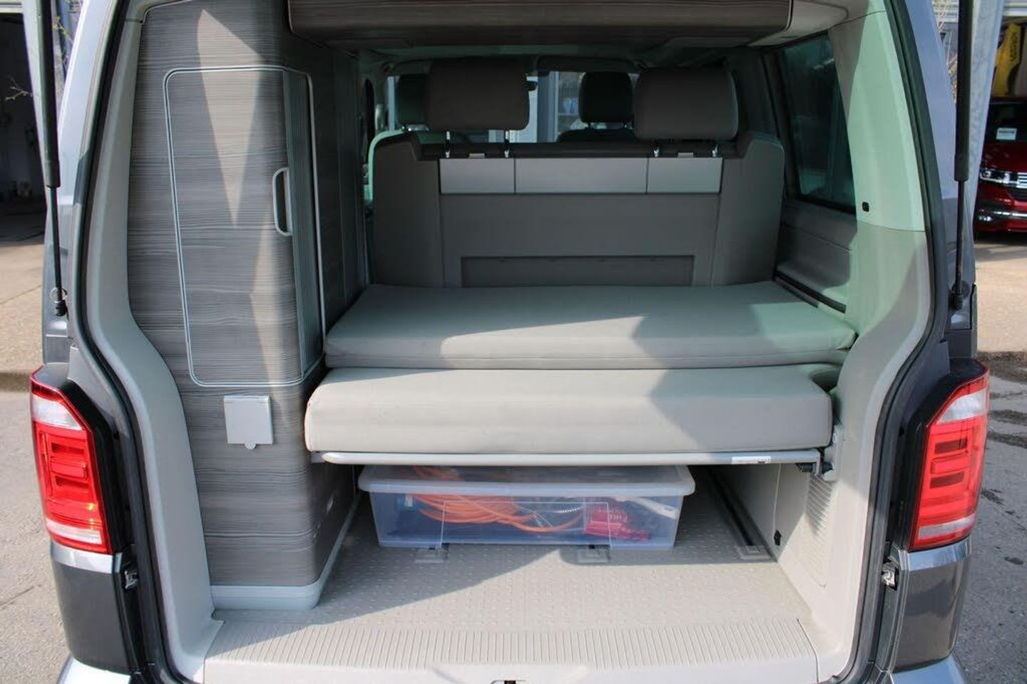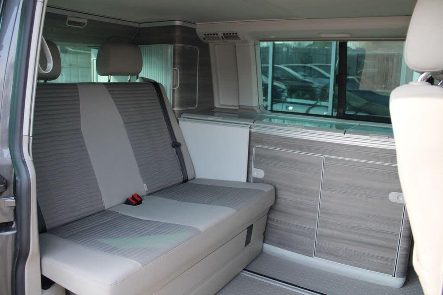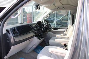 12v and 230v UK Socket, 2 Remote Folding Keys, 230-V Supply with Charging Feature for Vehicle Batteries, 3-point Seatbelts on all Seats, ABS - Anti-Lock Braking System, Additional Exterior Dust Seals, Airbags - Driver and Front Passenger Side and Front Curtain with Seatbelt Tensioners and Passenger Deactivation, Alternator - 180A, Anti-Theft Alarm System with Interior Monitoring in Cab - Backup Horn and Tow-Away Protection, Anti-glare Adjustable Rear-view Mirror, Armrest - Driver and Single Passenger Seat, Awning Rail - Black with Tent Adapter, BAS - Brake Assist System, Battery - Uprated 420A - 75Ah, Bluetooth Hands Free Set, Body Coloured - Door Mirrors and Door Handles, Body Coloured Bumpers Front and Rear, Central Electronic Control System, Child Lock for Sliding Doors in Passenger Compartment, Chrome-Plated Strip on Air Intake of Charge Air Cooler, Climatronic 3-Zone A-C with 2nd Evaporator - Auxiliary Heater - Air Conditioned Headliner and Additional Passenger Control, Comfort Dashboard Package, Composition Colour DAB Plus Radio, Cool-Warm Box - 42 Litre Capacity with Removable Basket, Cupboard with Dark Wood Trim-Without Outdoor Shower Connection, Dashboard - Dimmable Illumination, Daytime Running Lights, Decorative Insert Dark Brushed Silver Decorative Strip in Anthracite Metallic, Decorative Inserts on Dashboard, Digital Clock, Dipping Breakaway Interior Rear View Mirror, Door Stowage - Two Compartments with Bottle Holder able to Accommodate 1.5 Litre Drinks Bottles, Double-Glazed Fixed Side Windows to Near-Side and Off-Side Rear, Driver Alert System, Driver Exterior Door Mirror - Aspherical, Drop-Down Rear Compartment - Features Textured Dark Wood-Effect Trim and Incorporates Rear Speakers, Dust and Pollen Filter, EBD - Electronic Brakeforce Distribution, ESP - Electronic Stability Programme, Electric Hook-up on Near-side Rear, Electric Windows - Front, Electronic Differential Lock - EDL, Fabric Window Blinds - Black Out - in Cab and Passenger Compartment, First Aid Kit and Warning Triangle, Fixed Side Windows to Near-Side Rear and Off-Side Front and Rear, Flexible Halogen Spotlight - Multi-Directional Stem - Targets Light Into the Living Area or Pop-Up Roof, Flexible Worktop with Drop-Down Leg, Floor-Mounted Sliding Rail System, Folding Chairs Stowed in Tailgate x2, Folding Table Stowed in Sliding Door, Fresh Water Storage Tank - 30 Litre with Lockable External Filler Cap on Near-Side Rear and Electric Pump, Front Assist including City Emergency Braking without Adaptive Cruise Control, Front Fog Lights with Cornering Lights, Galvanised Body - Steel, Gas Storage Compartment - Takes 2.8kg Gas Cylinder and Includes Gas Pressure Regulator with Shut-Off Valve, Gas Stove with Two Burners and Pressure Test Point, Glovebox - Lockable, Grab Handles on A-Pillars, Grille - High-Gloss Black with Chrome Mouldings, Headlight Range Adjustment, Headlights - Halogen Twin - Range Adjustable, Headlining - Moulded and Trimmed In Fabric, Heat Insulating Glass with Green Tint in Cab and Living Area, Heated Driver and Front Passenger Seats, Height-Adjustable Head Restraints on All Seats, Hill Hold Assist, ISOFIX and Top Tether Child Anchorage for Caravelle-California in 2nd to 3rd Rows, ISOFIX and Top Tether Child Seat Anchorage - 2nd to 4th Rows, Interior Light, Interior Light Concept for Camper Comfort in Passenger Compartment, Intermittent Windscreen Wiper Control, Kitchen Unit, Leather Multi-Function Steering Wheel and Gear Knob with Radio and Telephone Controls, Lighting Above Side Sliding Door and Kitchen Unit, Lights and Vision Package, Locking Wheel Bolts, Lower Bed with Sleeping Mat, Luggage Compartment - Under Lower Bed Extension, Lumbar Support for Driver and Single Passenger Seats - Manual, Luxury Cut Pile Floor Mats, Manual Side Sliding Door - Drivers Side, Multi-Function Display Plus, Passenger Exterior Door Mirror - Convex, Plastic Entrance Step Protection, Plastic Side Mouldings, Plastic Tailgate Sill Protection., Pop-Up A