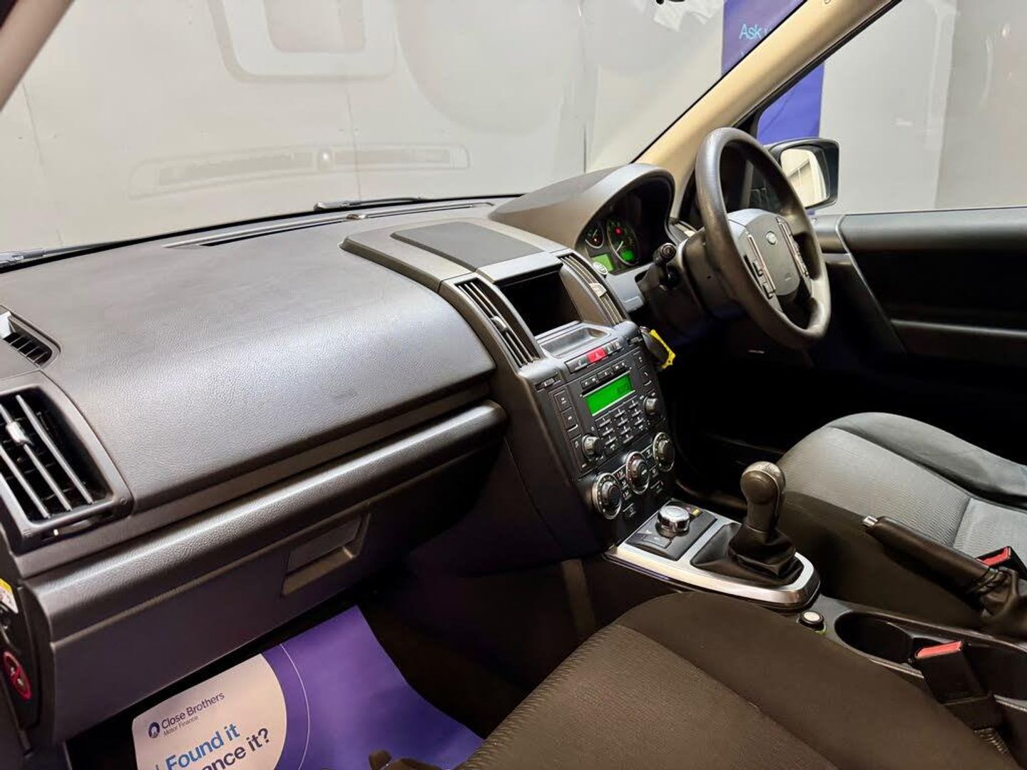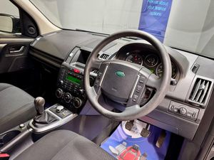 Cruise Control,Digital clock,Driver information module,PAS,Personal telephone integration system with bluetooth,Rear parking aid,Service interval indicator,Diesel particulate filter,Terrain Response,Auxiliary Audio Jack,DAB Digital radio,Steering wheel mounted audio/cruise controls,Automatic headlights + automatic windscreen wipers,Body colour bumpers,Electric adjustable/heated/folding door mirrors,Electric front/rear windows,Jupiter grille/side vents,One shot lowering/closing on front windows,Rear Wash/wipe,12V power point front/rear,12V power point in luggage area,3 rear headrests,60/40 split folding rear seat,Auxiliary heater,Driver seat lumbar adjustment,Driver/passenger sunvisors and illuminated vanity mirrors,Front head restraints,Height adjustable driver's seat,Luggage cover,Map pockets on front seats,Pollen filter,Tilt/reach adjustable steering wheel,Two rear outer seat isofix location points,Clearview Pack - Freelander 2,5 x 3 point seatbelts,ABS / hill descent control / elect