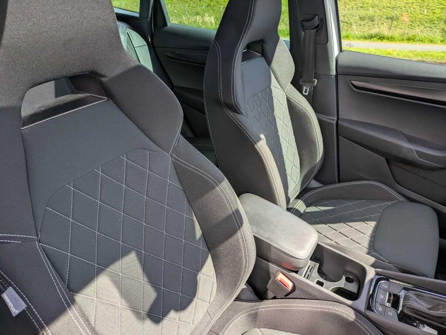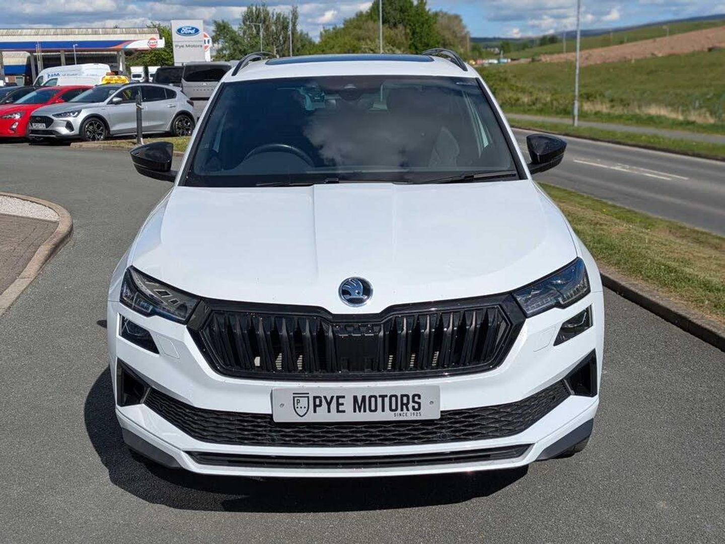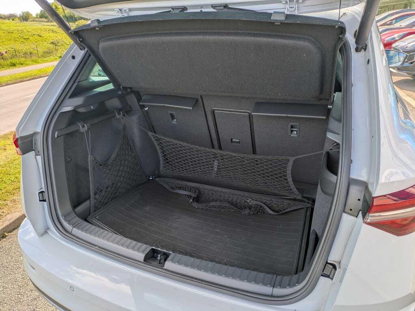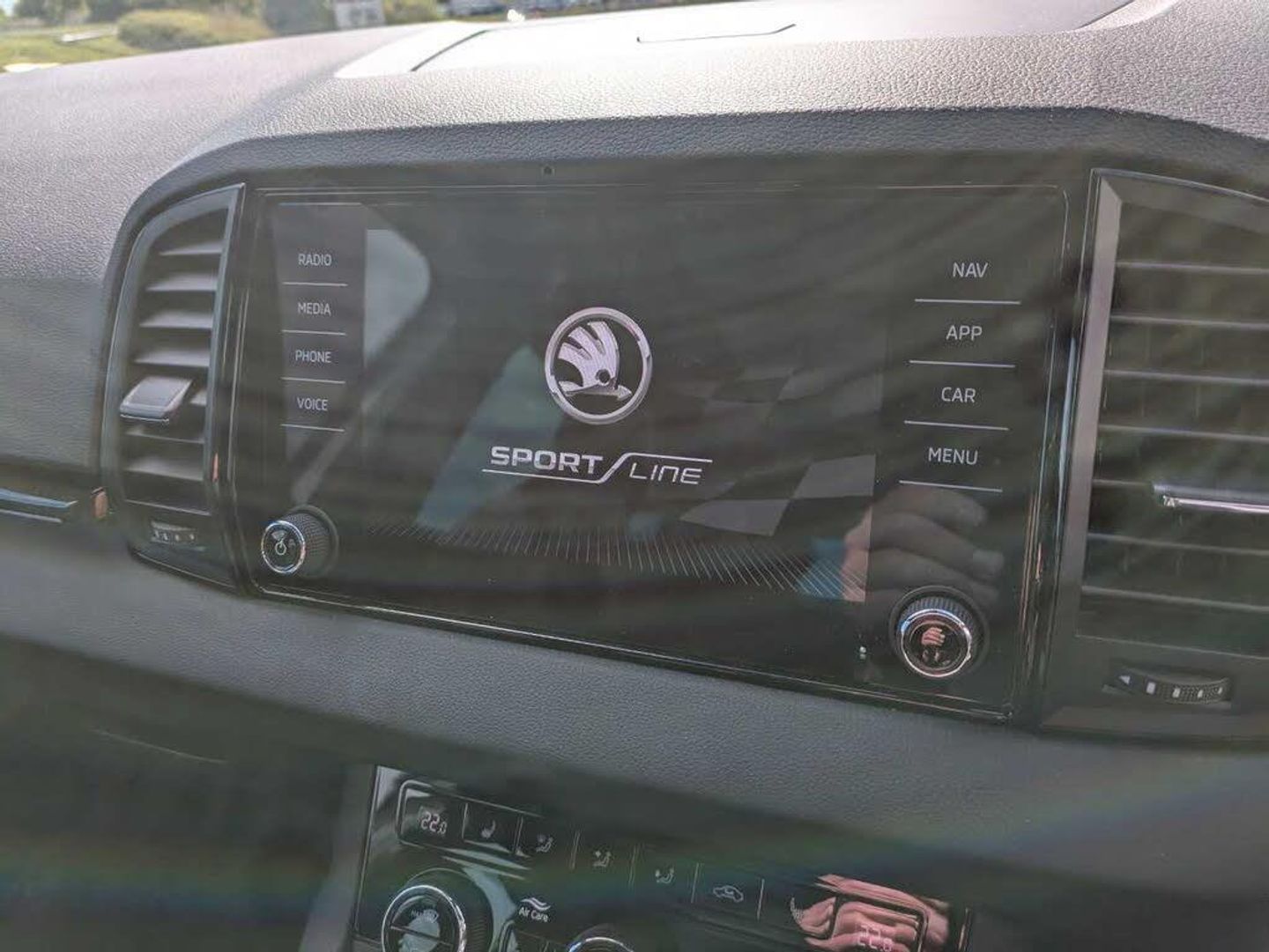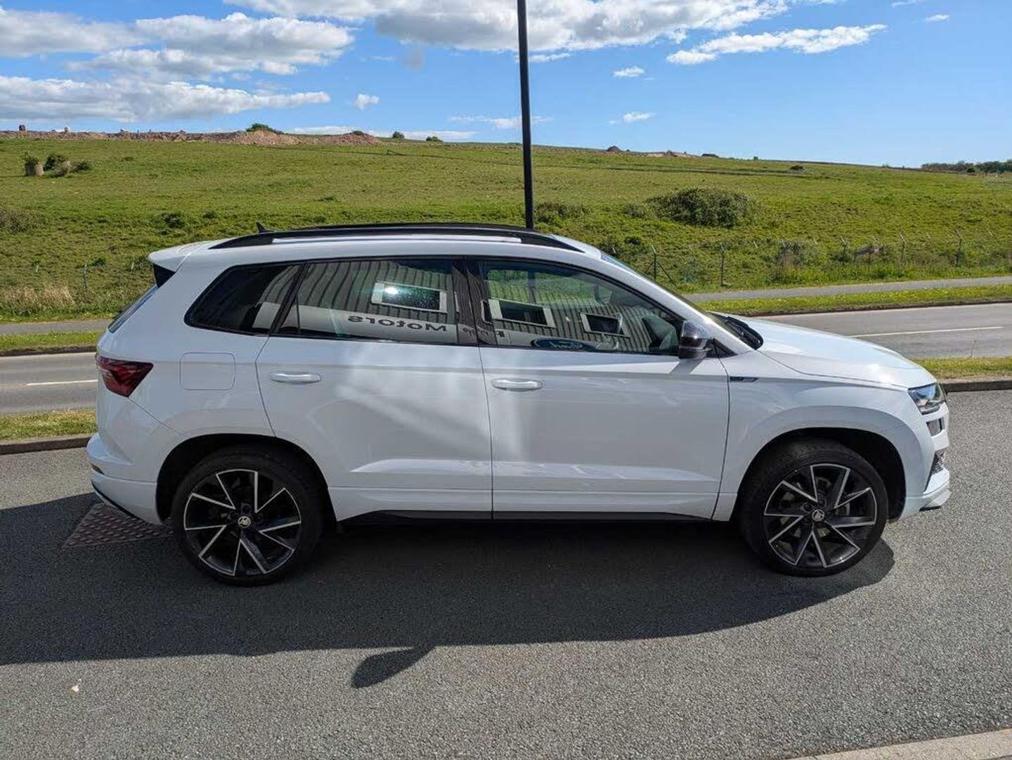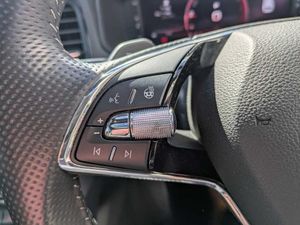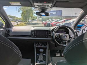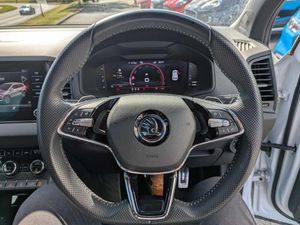 8" Digital display, Care connect, Driver fatigue sensor, Emergency services call system, Outside temperature gauge, Service interval indicator, SmartLink wireless for Apple and wired for Android, Start/stop system with regenerative braking, USB C Port x 2 in front centre console, Virtual cockpit, Virtual pedal with electrically operated boot door, 8 Speakers, DAB radio with Bluetooth, USB connection, Wireless charging without wireless aerial connection, Acoustic glass, Aero front windscreen wipers with intermittent function, Auto dimming rear view mirror with light and rain sensors, Black door mirrors, Black electric window control buttons, Black radiator grille, Black roof rails, Body colour door handles, Dynamic headlight range control with cornering light function, Electric front and rear windows with child proof lock, Front door steps with SportLine logo, Heated rear windscreen, LED daytime running lights, LED rear lights with high functionality welcome effect and dynamic indicators, Light assistant (coming/leaving home/tunnel light), Panoramic sliding sunroof, Plastic scuff plates, Privacy glass, Protective door side sills in body colour, Rear diffuser, Rear side wing doors, Rear spoiler, Rear window wiper with washer system and intermittent control, Safety reflectors on front doors, Skoda lettering on tailgate in black, Sportline badge on front fender, Sportline decorative inserts with badging, Sports front and rear bumpers, 1.5 litre bottle holders in driver and front passenger door panels, 12V socket in boot, 12v socket in front centre armrest with storage compartment and rear air vents, 3 rear height adjustable headrests, 3 seat bench in 2nd row, 3 spoke leather sports multifunction steering wheel and silver stitching with gear shift paddles, 4 foldable roof handles with rear coat hooks, Black floor carpet, Black roof headlining, Chrome inner door handles, Double sided boot floor, Foldable hooks in the boot, Front head restraints, Height adjustable front three point seats belts with tensioners, Height/reach adjust steering wheel, Ice scraper, Illuminated glovebox, Illuminated luggage compartment, Isofix child seat preparation outer rear, Manual lumbar support for front seats, Pen holder, Pollen filter, Rear boot cover, Rear reading lights, Rear seats fixed folding and divided 60:40, Rubbish bin door, Safety vest holder, Single front passenger seat, Storage box in upper central dashboard closed, Sunvisors with illuminated vanity mirrors, Textile floor mats, Ticket holder, Titan black interior ceiling, Welcome animation with sportline logo, Boot pack - Karoq, Light Pack - Karoq, Parking pack - Karoq, Automatic door unlocking in case of crash, Automatic fuel cut off in case of crash, Child locks on rear doors, Driver airbag, Electronic parking brake with auto hold function, Emergency rear braking signal, ESC including ABS, MSR, ASR, EDS, HBA, DSR, RBS, MKB and traction control, Front side airbags, Hill hold control, Knee airbags, Passenger airbag with switch-off function, Pedestrian monitor, Seatbelt reminder signalisation and pretensioner for all seats, Three point seatbelts rear, Two tone horn, Tyre pressure display, Tyre pressure monitor, Alarm with interior monitoring, back up horn and tilt sensor with safe function, Electronic engine immobiliser, Keyless entry and start/stop, Remote central locking with 2 remote folding keys, Black air vent surround, Black centre console, Satin black dashboard, Satin black door trim, 19" Vega black polished alloy wheels, Anti-theft wheel bolts protection, Matt black aero hub caps, Storage on wheel cover, Tool kit