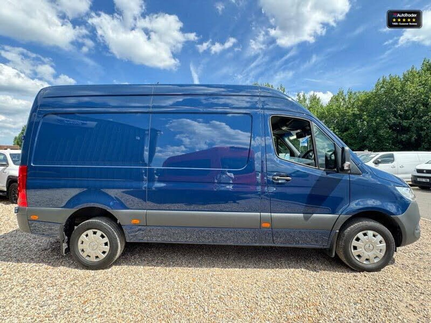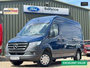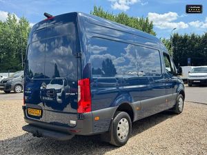 Cloth interior.This 2023 Mercedes-Benz Sprinter 317 CDI Progressive L2H2 medium wheelbase medium roof van in vibrant blue is a premium workhorse, delivering a spacious 10.5 cubic meter cargo area with a 3,272mm load length, 1,787mm width, and 1,946mm height. Powered by a 2.0L CDI diesel engine (170PS, automatic or manual transmission, RWD), it complies with EURO 6 standards for top-tier efficiency. The Progressive trim features a rearview camera, air conditioning, electric windows, a multifunction steering wheel, and parking sensors for driver convenience. Equipped with a factory-fitted tow bar (up to 2,000kg towing capacity) and offering a payload up to 1,424kg, a side load door, and full cargo lining, this Sprinter is perfect for trades, logistics, or specialized conversions.