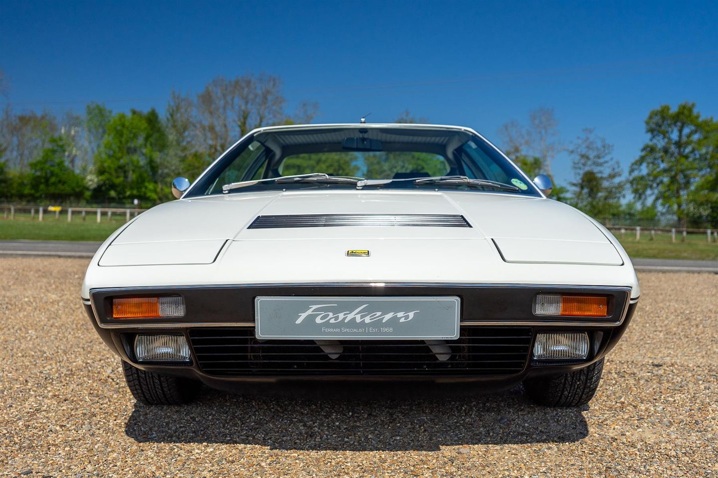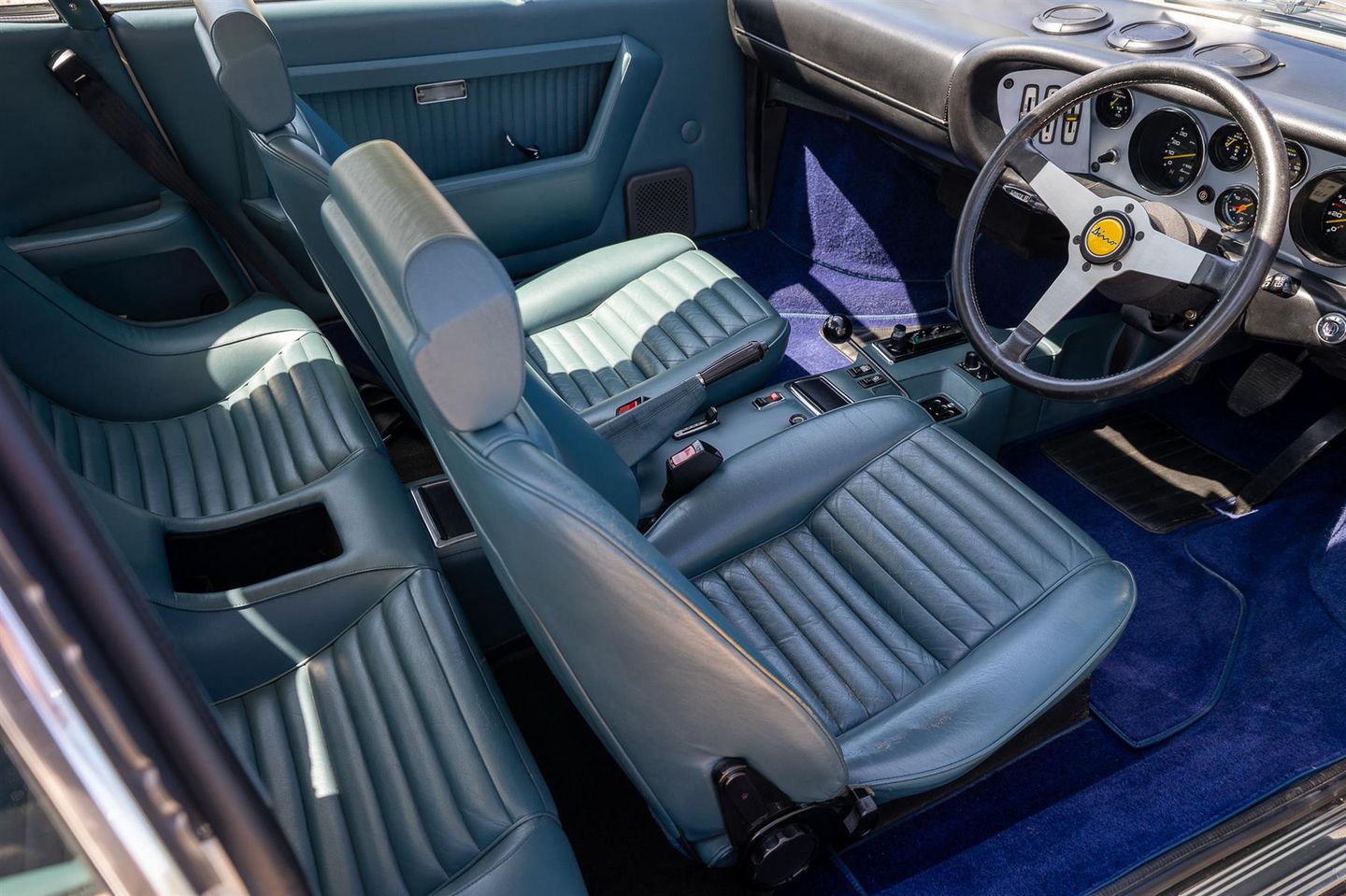 Being an early Dino badged Series 1 GT4, the sole Cavalino was placed by the supplying dealer directed by factory technical bulletin 266/8, all others badges are Dino including the horn button, wheel centre caps and bonnet. Another feature of these early cars are the exposed fog lights which are housed behind the grill on the later series examples.