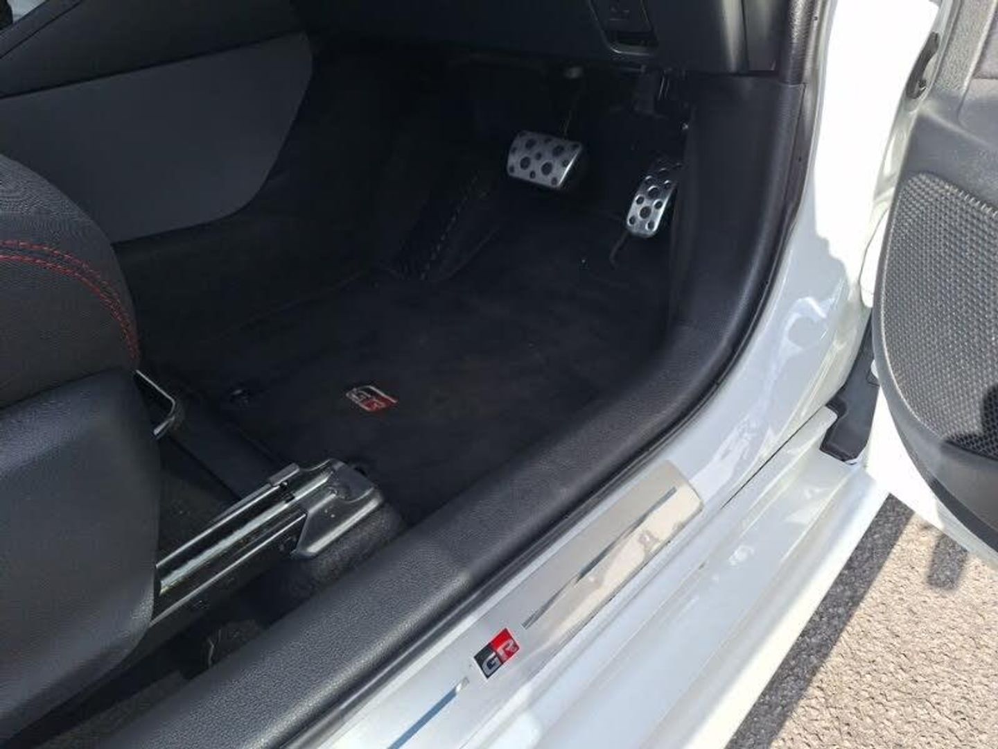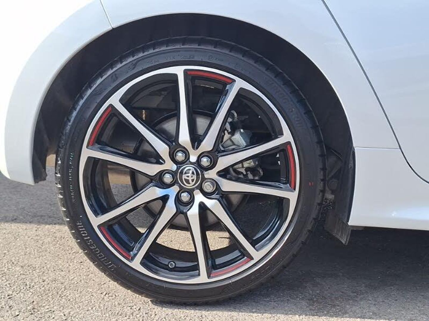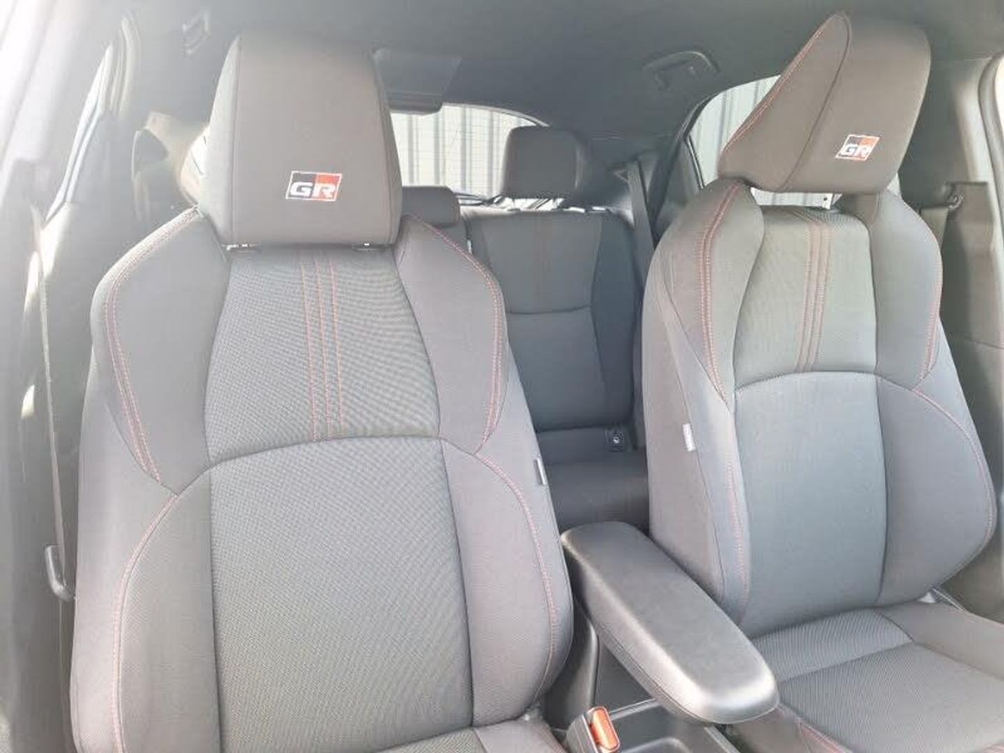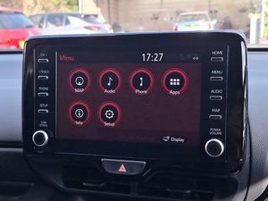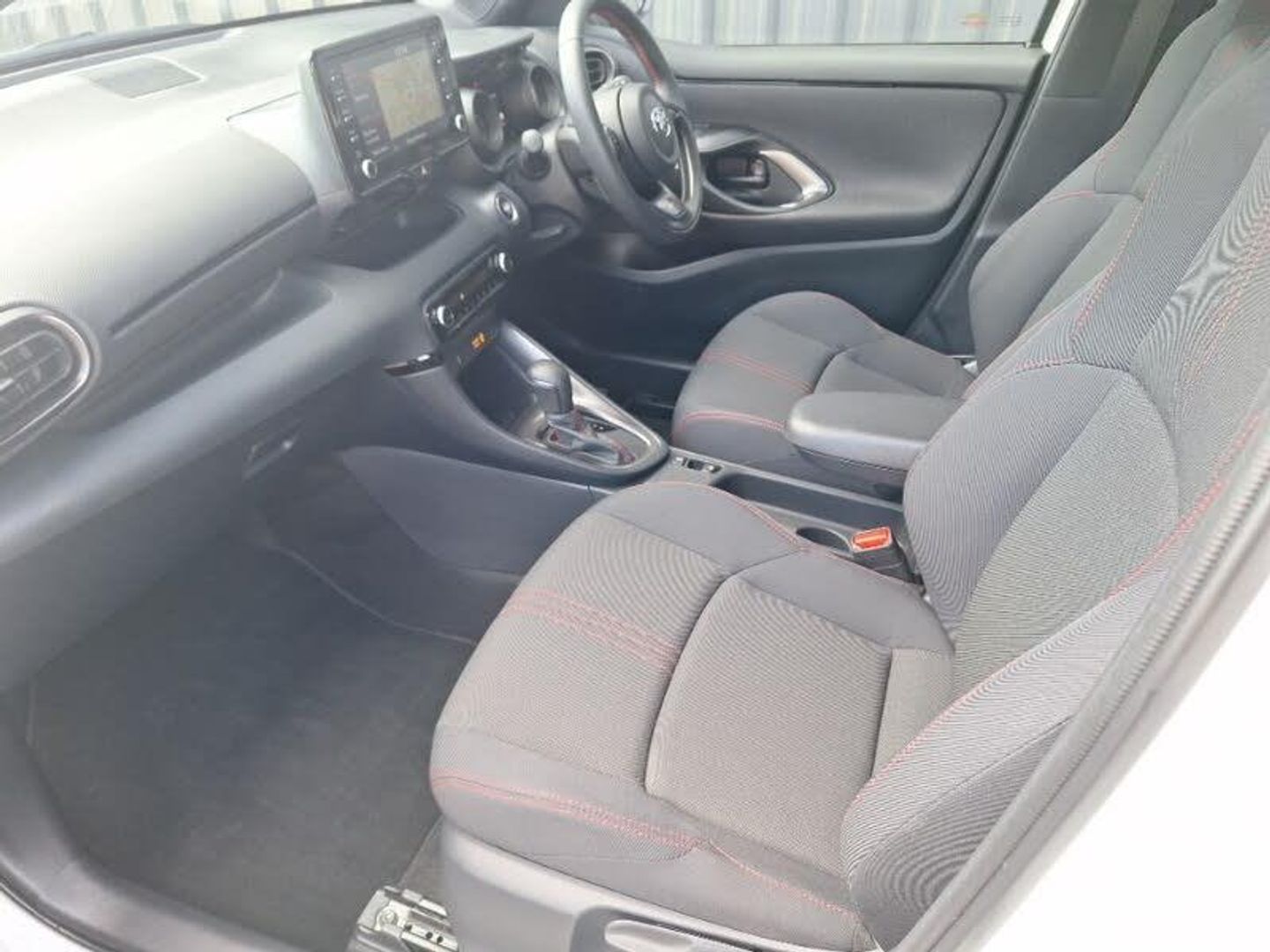 8" Multimedia display touch screen, Smartphone integration with Apple CarPlay and Android auto, Reversing camera, Adaptive cruise control, Bluetooth connectivity, Voice recognition, Toyota Touch 2 with DAB, USB connection, Auto windscreen wipers, LED daytime running lights, Rain sensor, Rear privacy glass, 3 spoke leather steering wheel, 60/40 split folding rear seat, Dual zone automatic air conditioning, Front sport seats, Height adjustable driver's seat, Height adjustable passenger seat, Isofix seat fixing, Leather gearshift, Tilt/telescopic steering column, Hill start assist control (HAC), Tyre pressure warning system, Keyless smart entry with push button start, GR Sport interior styling with accents and exterior styling, 18" machined face alloy wheels with GR Sport red deco lines