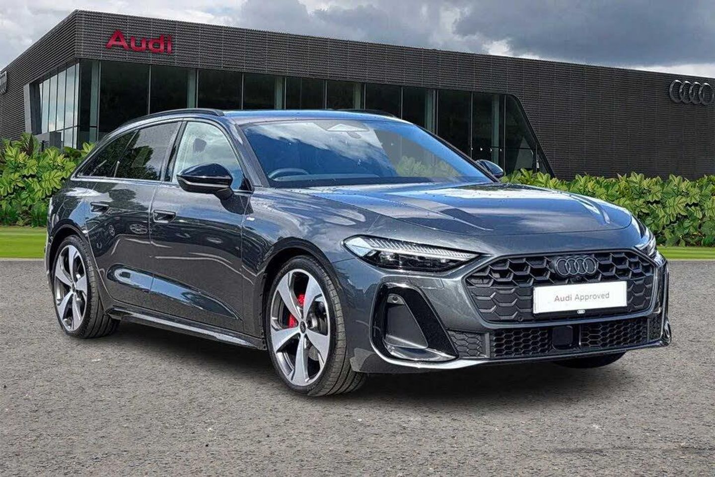 3-zone deluxe automatic air conditioning (9AQ), 4-way lumbar support for the front seats (7P1), Accent surfaces and control buttons, Gloss Black (GS5), Adaptive cruise control (8T3), Assist package Drive and Park (99B), Assist package, protective and warning systems plus (99I), Black door handles (6JA), Black exterior mirror housings (6FJ), Bumpers, S line (2K7), Climate Control package (98G), Comfort center armrest, front (6E3), Comfort package plus (98C), Dinamica microfiber/leather combination with rhombus pattern and S embossing (N2S), Disk brakes, front, 17-inch, brake calipers in Red (1ZB), Disk brakes, rear, 16-inch, brake calipers in Red (1KX), Door sill trims with aluminum inlays, front, illuminated, S logo (VT5), Exterior mirrors, electrically adjustable, heated and folding, automatically dimming on both sides (6XK), Front cross-traffic assist (JX1), Front head restraints (5ZJ), Front seats, electrically adjustable (3L5), Headlight cleaning system (8X8), Headlining in cloth, Black (6NQ), Interior equipment 13 (99W), LED rear lights pro (8VP), Matrix function (8G4), Matrix LED headlights (8IY), Memory function for the driver seat and the exterior mirrors (AI1), MMI front passenger display (JH1), Parking system plus with distance display (9X0), Proactive occupant protection, front, side and rear (7W7), Projection light in the exterior mirrors (1J2), Roof rails in black (3S2), S line (FM7), Side airbags, front and rear with head airbag system and interaction airbag, front (6C4), Sport leather steering wheel, 3-spoke, flat top and bottom with multifunction and shift paddles (1XY), Sport seats, front (Q1D), Stainless steel pedals and footrest (VF1), Steering wheel adjustment, manual (2C5), Steering wheel trim in chrome look, S emblem, st. wheel grips in perforated leather and contrasting stitching (6F7), Sun protection glass, tinted (QL5), Surround view cameras (KA4), Swerve assist and front turn assist (4G3), Tailpipe trims, dark chrome-plated (0P9), Upper and lower interior elements with contrasting stitching (7HB), Window trim strips and attachments, dark (4ZP), Without adaptive cruise assist (GJ0), Without garage door opener (VC0), Without steering wheel heating (AI8), Wraparound interior elements in Dinamica microfiber (Q8D)