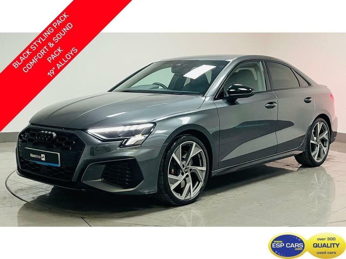 12v Socket and Storage Compartment in Front Centre Console, 2 USB-C Ports with Charge and Data Functions, Audi Connect Navigation and Infotainment Services Plus - 3 Year Subscription, Audi Smartphone Interface, Bluetooth Interface, DAB Digital Radio, Emergency Call - E-Call, MMI Navigation Plus with High Resolution 10.1in Touchscreen Colour Display, Audi Drive Select, Camera Based Traffic Sign Recognition, Collision Avoidance Assistant, Cruise Control, Lane Departure Warning, Tyre Pressure Loss Indicator, Voice Control System with Natural Language Interaction, 19in Alloy Wheels - 5-Y-Arm Structure Design in Matt Grey - Diamond-Turned, Anti Theft Locking Wheel Bolts, Black Styling Pack, Brake Calipers Painted in Glossy Black, Dual-Branch Oval Twin Tailpipes in Chrome-Plated Finish, Electric Windows - Front, Exterior Mirrors - Electrically Adjustable - Heated and Folding - Automatically Dimming on Both Sides with Built-In LED Side Indicators - Including Automatic Kerb-Side Function for the Passenger-Side, Manual Boot Compartment Lid, Privacy Glass - Dark-Tinted Rear Window - Rear Door and Side Window., S3 Design Body Styling, Tyre Repair Kit, Windscreen with Acoustic Glazing, Audi Beam, Headlights Washers, LED Headlights with LED Rear Lights and Dynamic Rear Indicators, Light and Rain Sensor, 4-Way Lumbar Support for Front Seats, Aluminium Interior Elements, Audi Virtual Cockpit, Auto Dimming and Frameless Rear View Mirror, Cloth Headlining in Black, Dual-Zone Electronic Climate Control, Extended Ambient Lighting Pack, Flat-Bottomed 3-Spoke Leather Multi-Function Sports Steering Wheel with Gear-Shift Paddles, Front and Rear Centre Armrest in Artificial Leather, Front and Rear Floor Mats, Front Sports Seats, Illuminated Door Sill Trims with Aluminium Inserts and S Logo, Inlays - Dark Spectrum Aluminium, LED Interior Light Package, Luggage Compartment Floor Covering, Pedals in Stainless Steel and Footrest in Black, Split-Folding Rear Seat Bench - can be Split 40-60 or Fully Collapsed, Storage Package, Technology Pack, Tool Kit, Progressive Steering, S Sport Suspension, Airbags - Driver and Front Passenger with Passenger Airbag Deactivation, Anti-Theft Alarm, Audi Pre-Sense Front with Pedestrian and Cyclist Recognition, Electronically Operated Child Locks, ESC - Electronic Stabilisation Control inc ABS - ASR and EDL, First Aid Kit and Warning Triangle and 2 Safety Vests, Front Side Airbags with Head Airbags and Interaction Airbag, Hill Hold Assist, I-Size and Top Tether Child Seat Mounting for the Outer Rear Seats, Remote Central Locking, Seat Belt Monitoring