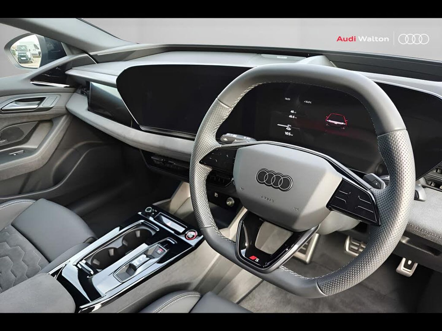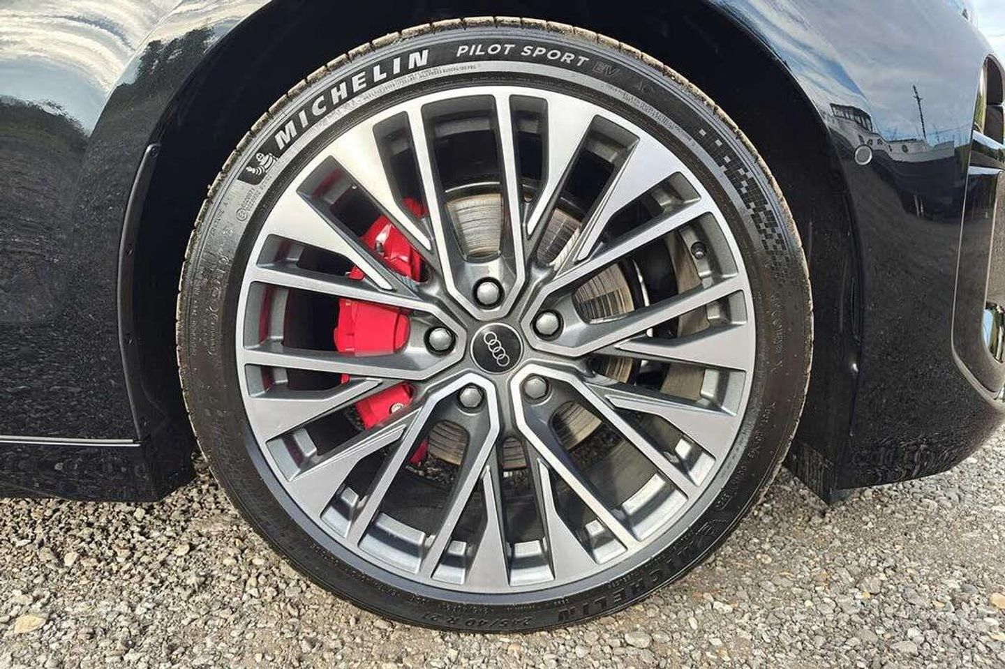 Memory function, Steering wheel heating, Operating permit, alteration, S line, Park assist plus, Comfort auxiliary air conditioning, Adaptive cruise assist plus, e-tron sport sound, Accent surfaces and control buttons, Gloss Black, MMI front passenger display, Front cross-traffic assist, Surround view cameras, Augmented reality head-up display, Digital light signatures, Dinamica microfiber/leather combination with waterfall pattern and S embossing, Exterior package, Black, Brake calipers painted Red, Tech plus, interior S with sport seats in Dinamica microfiber/leather combination, Black, Climate Control package for winter, Interior trims in vanadium look, Sun protection glass, tinted, Ambient lighting package plus with dynamic interaction light, Camera-based traffic sign recognition, Sport seats, front, Upper and lower interior elements, Dinamica microfiber, Special control, Illuminated Audi rings, rear, Hold assist, Increased charging capacity for USB ports, Stainless steel pedals and footrest, Door sill trims with aluminum inlays, front, illuminated, S logo, Equipment package for Great Britain, Sound and Vision Pack, Internal control code, Sport leather steering wheel, 3-spoke, flat top and bottom with multifunction and shift paddles, Disk brakes, front, 18-inch, brake calipers in Red, Disk brakes, rear, 18-inch, brake calipers in Red, Bumpers, S line, Front seats, electrically adjustable, Heated front/rear seats, Swerve assist and front turn assist, Window trim strips and attachments, dark, Inlays, Carbon Square, Structure, Rear occupant detection, Front head restraints, 21" Wheels, multi-spoke , graphite grey, gloss turned finish, 8.5J|9.5Jx21, 245/40|275/35 R21 tyres, Side airbags, front and rear with head airbag system and interaction airbag, front, Black exterior mirror housings, Steering wheel trim in chrome look, S emblem, st. wheel grips in perforated leather and contrasting stitching, Lane departure warning with emergency assist, Black door handle inserts, Headlining in cloth, Black, Upper part of instrument panel, Black with contrasting stitching, Proactive occupant protection, front, side and rear, Side assist and exit warning, rear cross-traffic assist and rear turn assist, Matrix LED headlights with dynamic indicator, LED headlights plus, Front emergency brake assist, Bang & Olufsen 3D Premium Sound System with head restraint loudspeakers, Adaptive cruise control, LED rear lights pro, Headlight cleaning system, Parking system plus with distance display, 98C, Climate Control package for winter, Steering code for MMI experience pro, Assist package Drive and Park plus, Assist package, protective and warning systems plus, Interior equipment 13, Equipment options subset for Great Britain