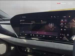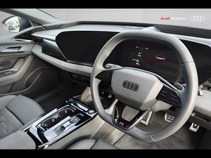 Audi application store, Audi assistant, Audi connect emergency call and service, Audi connect remote and controls, Audi drive select (Balanced/Individual, effeciency, comfort and dynamic), Audi smartphone interface, Audi virtual cockpit plus with 11.9" OLED colour display, Driver attention alert system, Exit warning function, Fatigue monitor, Front cross traffic assist, Lane departure warning including emergency assist, Luggage compartment lid with Electric opening / closing, MMI 10.9" front passenger touch display, MMI navigation plus with high resolution 14.5" OLED touchscreen colour display, Proactive occupant protection, Progressive steering, Rear cross traffic assist, Rear turn assist, Side assist, Swerve assist and front turn assist, USB ports with charging function in the first and second seat row - 15W output, 11 kW AC onboard charger, 2 charging ports - Charging port via charging (mode 2 and mode 3) + Charging port via DC charging (mode 4) driver side, Compact e-tron charging system, Dynamic suspension, E-tron sport sound, Household plug type G for the e-tron charging system, Industrial connector CEE 32A, 230V, long and straight for the e-tron charging system, Mode 3 charging cable for public charging, 22 KW (AC), On-board charger up to 270 KW (DC), Wall mounted bracket for compact e-tron charging system, Audi sound system - 10 loudspeakers including centre loudspeaker and subwoofer, DAB Digital radio, Smartphone compartment with wireless charging, Acoustic glazing for front door windows, Auto dimming rear view mirror, Black diffuser, Black door handle inserts, Black exterior door mirrors, Black single frame ornaments and black air intakes, Digital light signature with eight combination of daytime running light, Door sill trims with aluminium inlays in front with illuminated, Electric charging cover, Electrically operated frunk, Headlight cleaning system, High beam assist, Illuminated audi rings in rear, LED rear lights pro, LED third brake light, Matrix LED headlights, Privacy glass, Rear side wing doors, Rear wiper, Towbar preparation, White rhombus logo projection light in exterior mirrors, Window trim strips and attachments, dark with audi rings, front and rear in anthracite grey, Windscreen with heat insulating and acoustic glazing, 3 spoke flat bottomed multi-function leather sport steering wheel with gear shift paddles, 3-zone deluxe automatic air conditioning, 4 way electrically adjustable lumbar support for driver and front passenger, 40/20/40 split folding 3 rear seat bench in 3 parts with rear centre armrest, Black carpets, Black cloth headlining, Black front and rear floor mats, Centre armrest, centre console and door armrests in dinamica microfibre black, Convenience auxiliary air conditioning, Electrically adjustable front seats, Front and rear outer heated seats, Front centre armrest adjustable angle with four settings, Front head restraints, Heat pump, Heated steering wheel, Manual steering wheel adjustment, Memory function for driver seat, Rear headrests, Single front passenger seat, Stainless steel pedals and foot rest, Steering wheel with trim in chrome look, S emblem, steering wheel grips in perforated leather and contrast stitching, Trim elements in the instrument panel and doors in black with contrast stitch in steel grey, Ambient lighting pack - A6 E-TRON, Assist package drive and park plus - A6 E-TRON, 3 point seatbelts on all seats, Acoustic vehicle alerting system, Airbags - Front side, front and rear including head, Convenience key with safelock, First aid kit with warning triangle and high visibility vests, Front emergency brake assist, Front passenger airbag deactivation, Hill hold assist, ISOFIX child seat mounting for front passenger seat and ISOFIX child seat mounting with Top Tether for outer rear seats, Manual child proof rear door locks, Occupant detection in rear seat area, Rear seat alert, Red brake callipers, Side airbags in front and rear with head airbag system and front interaction airbag, Standard steel disc brakes front and rear, Tyre pressure loss indicator, Anti theft alarm, Anti theft wheel bolts, Digital key, Accent surfaces and control buttons in gloss black, Accents in the interior in vanadium look, Black dashboard, Carbon square structure inlays, Upper and lower interior elements in dinamica microfibre, Tyre repair kit