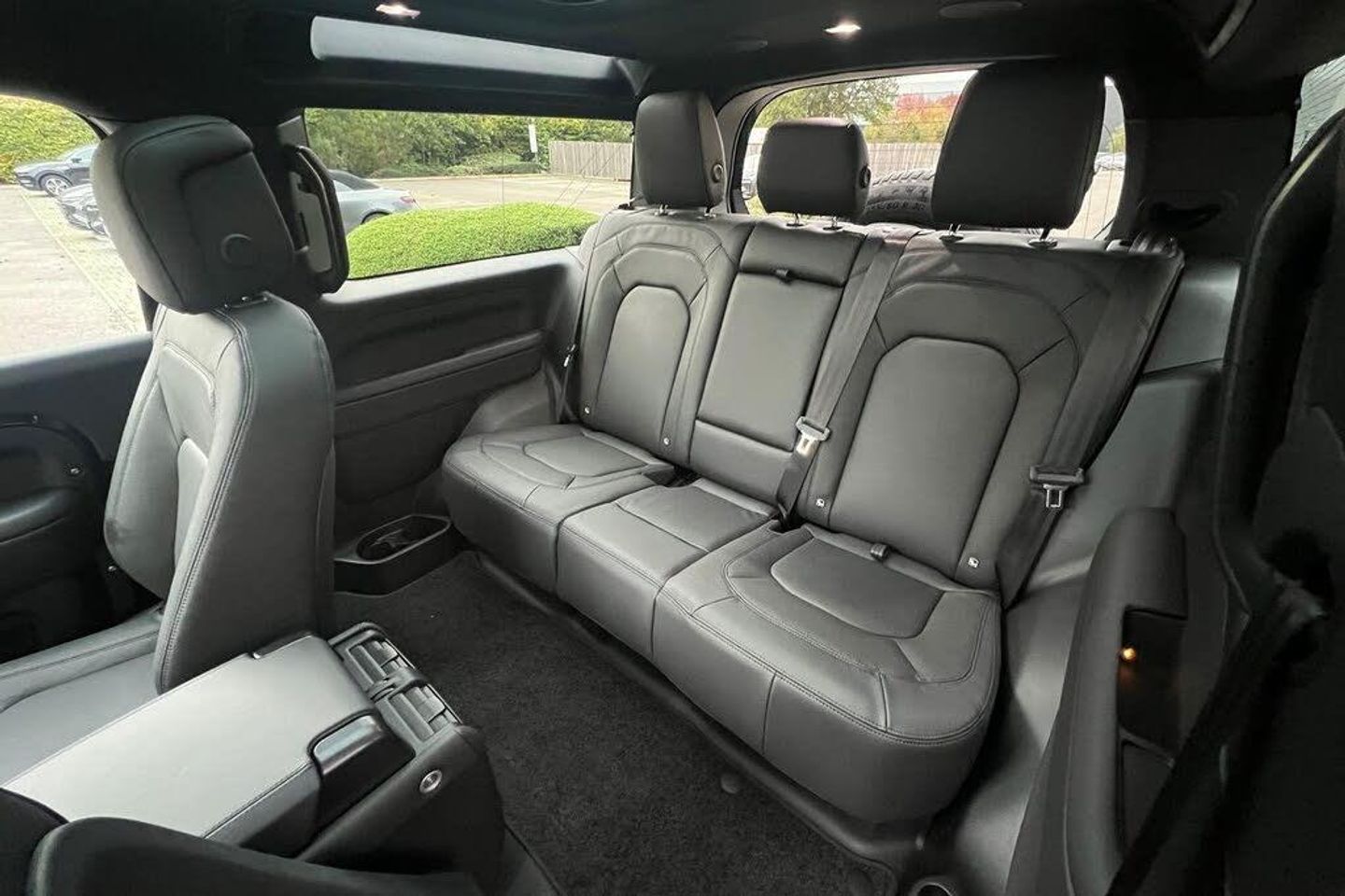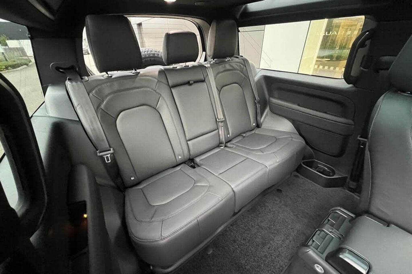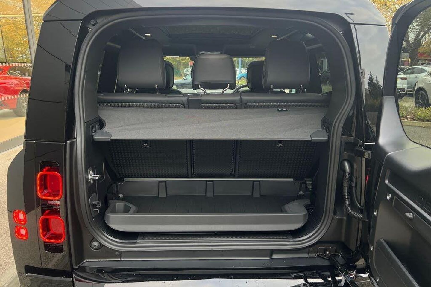 1 x USB-C - Power Only - 1 x USB-C - Power and Data in Row 1 - 2 x USB-C in Row 2 and 2 x USB-C in Row 3, 11.4in Touchscreen, 12V Power Sockets in Row 1 and Load Space, 14-Way Heated and Cooled Electric Seats with Driver Memory and 4-Way Manual Headrests, 2-Zone Automatic Climate Control, 20in Alloy Wheels - Style 5098 - 5 Spoke - Satin Dark Grey, 20in Full Size Spare Wheel, 360 Degree Parking Aid, 3D Surround Camera, 40-20-40 Folding Rear Seats with Centre Armrest, ABS - Anti Lock Braking System, ACC - Adaptive Cruise Control, All Season Tyres, Alpine Lights, Android Auto, Apple CarPlay, Auto-Dimming Interior Rear View Mirror, Automatic Headlight Levelling, Automatic Headlights and Rain Sensing Wipers, Black Contrast Roof, Black Exposed Rear Recovery Eyes, Blind Spot Assist, Body Coloured Bonnet, Brake Hold, Brake Pad Wear Indicator, CBC - Cornering Brake Control, Carpet Mats, Centre Console with Armrest, Centre High Mounted Stop Light, Coil Suspension, Configurable Cabin Lighting, Cross Car Beam in Light Cloud Powder Coat Finish, Customer Configurable Autolock, DSC - Dynamic Stability Control, Digital Audio Broadcast Radio - DAB, Driver Condition Monitor, Durable Rubber Cabin Flooring, Durable Rubber Loadspace Flooring, EBA - Emergency Brake Assist, EBD - Electronic Brake-Force Distribution, EPAS - Electric Power Assisted Steering, ETC - Electronic Traction Control, Electric Cabin Pre-conditioning, Electric Parking Brake, Electric Windows with One-Touch Open-Close and Anti-Trap, Electrically Adjustable Steering Column, Emergency Braking, Extended Leather Upgrade, Flat Loadspace Floor Storage Tray, Follow Me Home Lighting, Footwell Lights - Front, Front Airbags with Passenger Seat Occupant Detector, Front Fog Lights, Glovebox Storage, HDC - Hill Descent Control, Headlining - Ebony Morzine, Heated Electric Power Fold Door Mirrors with Approach Lights and Auto-dimming Driver Side, Heated Rear Window with Timer, Heated Steering Wheel, Heated Windscreen, Hill Launch Assist, Illuminated Metal Treadplates with Brand-Name Script, Interactive Driver Display, Intrusion Sensor, Keyless Entry, LED Tail Lights, LESS Roof Rack or Rails, Lane Keep Assist, Leather Gearshift, Leather Steering Wheel, Loadspace Cover, Loadspace Hooks, Locking Wheel Nuts, Low Traction Launch, Matrix LED Headlights with Signature DRL, Meridian Surround Sound System, Non Smokers Pack, Online Pack with Data Plan, Panoramic Rear Side Glass, Pivi Pro - Connected, Privacy Glass, Puddle Lights, Push Button Start, RSC - Roll Stability Control, Rear Collision Monitor, Rear Fog Lights, Rear ISOFIX, Rear Reading Lights, Rear Traffic Monitor, Rear Wash Wiper, Remote, Seat Belt Reminder, Seats - Rear Centre Head Restraint, Side-Hinged Tailgate, Sliding Panoramic Roof, Soft Close Tail Door, Spare Wheel Lock, Standard Seating Configuration, Standard Tail Door, Sun Visors - Illuminated Vanity Mirrors, TPMS - Tyre Pressure Monitoring System, TSA - Trailer Stability Assist, Terrain Response, Traffic Sign Recognition and Adaptive Speed Limiter, Trip Computer, Twin Front Cupholders, Twin Speed Transfer Box - High-Low Range, Wireless Device Charging, Santorini Black, Windsor Leather - Ebony with Ebony Interior, Black Roof Rails, Body Coloured Roof, Extended Black Exterior Pack