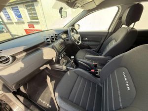 17in Alloy Wheels - Diamond-Cut, 3-Point Rear Seatbelts x3, 3-Speed Front Windscreen Wipers, 4 X 20W FM-AM-DAB Tuner with Steering-Column Mounted Fingertip Controls, 7-Function On-Board Computer, ASR - Traction Control with ESC - Electronic Stability Control, AUX Input, Air Recirculation - 4-speed Heating and Ventilation, Air Vents - Satin Chrome, Airbags - Driver, Airbags - Front Passenger with Deactivation Function, Airbags - Front Side, Anti-lock Braking System - ABS and Emergency Brake Assist - EBA, Armrest - Front Centre, Black Number Plate Surround with Satin Chrome Duster Inscription, Blind Spot Warning, Bluetooth Connectivity, Boot Light, Bumpers - Front and Rear Lower Section in Black, Bumpers - Front and Rear Upper Section - Body Coloured, Central Locking - Remote, Centre Console Fascia - Matt Black, Centre Console Surround - Dark Carbon, Child Locks in Rear Doors, Chrome Front Grille, Climate Control, Cruise Control, DRL - Daytime Running Lights, Dark Glass on Lateral Rear Windows, Decorative Inserts on Front and Rear Door Panels - Piano Black, Door Handles - Body Coloured, Door Handles - Interior Front - Black, Door Handles - Interior Rear - Black, Door Mirrors - Grey - Dark Metal, Door Mirrors - Heated and Electrically Adjustable, Door Open - Visual and Audible Warning, Driver Seat Lumbar Adjustment, Driver and Passenger Seatbelt Not Fastened - Visual and Audible Warning, Dusk Sensor, ECO Mode, Electric Power-Assisted Steering, Electric Windows - Front, Electric Windows - Rear, Fabric Decorative Insert on Front and Rear Door Panels, Front Door Sill Protection Strip, Front Fog Lights, Front Passenger Reading Light, Front Seatbelt Pretensioners, Gear Lever Cap Insert - Satin Chrome, Gear Shift Indicator, Glovebox Light, Headlights - Double Optic, Headrests - Rear Height Adjustable x3, Heated Rear Window, Height-Adjustable Drivers Seat, Height-Adjustable Front Headrests, Height-Adjustable Front Seatbelts, Height-Adjustable Steering Wheel, High Level Third Brake Light, ISOFIX Points for Child Seats in Both Outer Rear Seats, Instrument Dial Surrounds - Satin Chrome, Keyless Entry, Lower Steering Wheel Insert - Satin Chrome, Map Pockets on Front Seatbacks, Multiview Camera Includes Sensors, Rear Parking Camera, Rear Parking Sensors, Rear Passenger Reading Light, Rear Washer-Wipe, Rev Counter, Roof Bars - Longitudinal with Duster Inscription - Satin Chrome, Satellite Navigation - MediaNav 7in Touchscreen Multimedia System, Seats - 60-40 Split Folding Rear, Side Sills - Black, Skid Plates - Front and Rear - Satin Chrome, Soft Feel Steering Wheel, Speed Limiter, Steering Wheel - Chrome Logo Surround, Sunvisor with Vanity Mirror - Passenger, Tailgate Trim with Duster Inscription - Black-Satin Chrome, Thatcham Approved Engine Immobiliser, Tyre Inflation Kit, Tyre Pressure Monitor, USB Connection for MP3 Players, Under Passenger Seat Storage