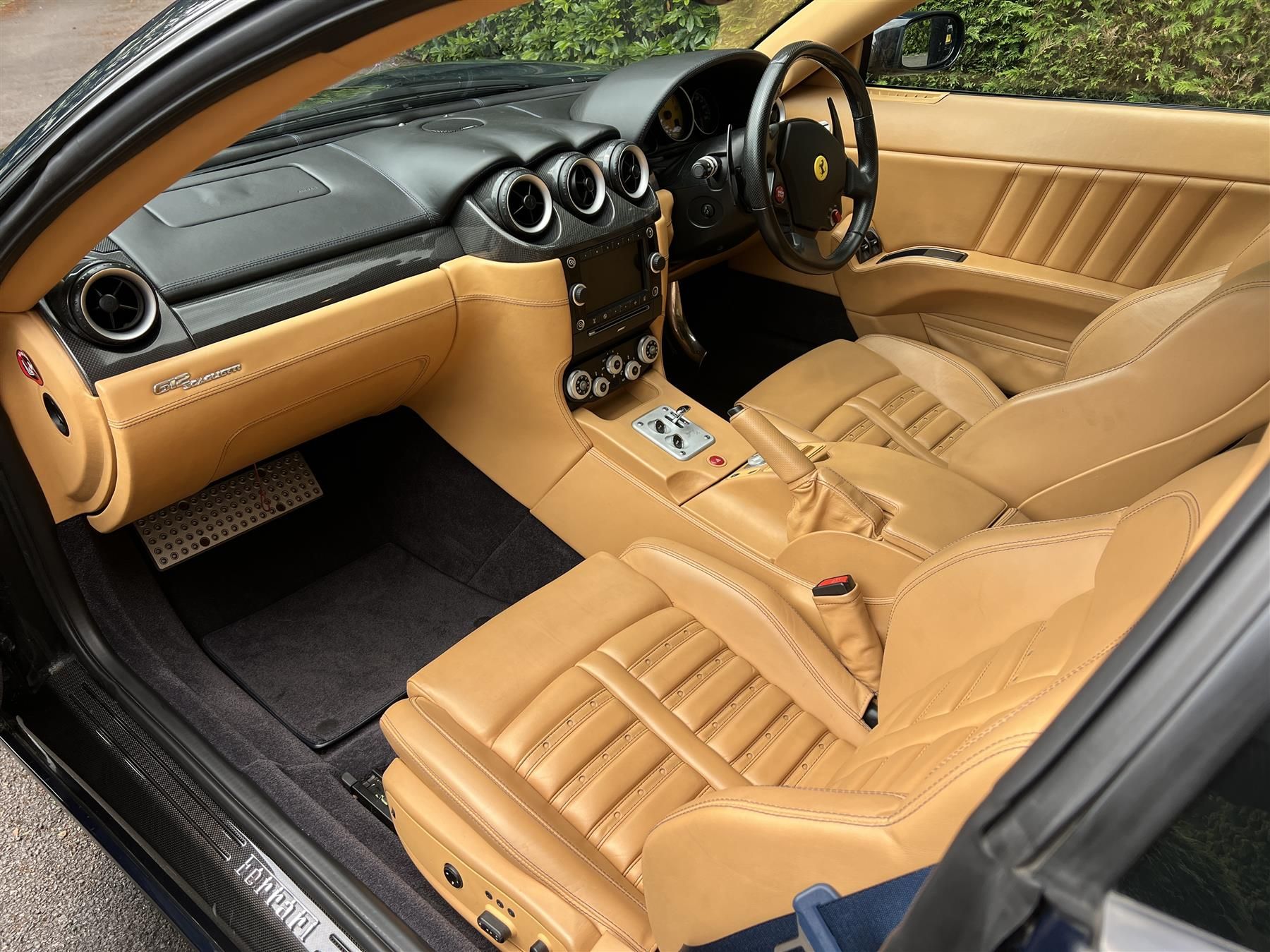 Finished in dark blue (Blu Pozzi) with beige “Daytona” pattern seats with dark blue carpets. Huge specification which includes the desirable HGT2 handling and aesthetic package; Modified sports exhaust with chrome exhaust tips,20” cast alloy ball polished “Challenge” style wheels, carbon ceramic brakes, “special management of the F1 transmission and suspension damping control”.