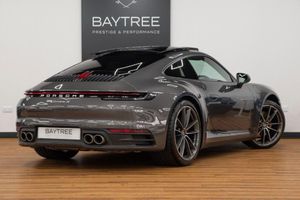HomeLink, Automatically Dimming Mirrors with Integrated Rain Sensor, Leather - Black, Agate Grey, ParkAssist - Front and Rear with Reversing Camera, Decorative PORSCHE Side Logo in Black, BOSE Surround Sound System, Sport Chrono Package, Privacy Glass, Steering Wheel - Heated, 20in Front 21in Rear Alloy Wheels - Carrera Classic, 2 USB-C Ports in Centre Console Main Storage Compartment Lid - 12V Socket in Passenger Footwell, 20in Front 21in Rear Alloy Wheels - Carrera S, Ascending Centre Console with Storage Compartment, Auto-Deployed Rear Spoiler, Automatic Headlight Activation including Welcome Home Lighting, Clothes Hooks on Seat Backrests, Cruise Control, Dashboard Trim Strip - Centre Console Trim and Door Panel Trim Strips in Diamar Darksilver, Digital Display for Selected Gear in Rev Counter, Digital Radio, Door Sill Guards - Model Designation Logo, EU eCall Emergency System, Electric Parking Brake, Electromechanical Power Steering with Variable Steering Ratio and Steering Pulse Generator, Embossed Leather on Front Seat Centres - Front Side Bolsters - Front Seat Head Restraints, Engine Compartment Cover Grille with Vertical Slats in Black High-Gloss, Engine Immobiliser, Exhaust System with 2 Dual-Tube Tailpipe Trims Fixed to the Bumper in High Gloss Silver Stainless Steel, Exterior Mirrors on Door Waist Rails - Electrically Adjustable and Heatable - Aspherical on Drivers Side, Floor Mats, Full-Size Airbags for Driver and Front Passenger, Glove Compartment - Lockable and Storage Compartment in Each Door, Green Tinted Thermally Insulated Glass, Heated Rear Screen, ISOFIX Child Seat Mounting Points on Front Passenger Seat, Illuminated Vanity Mirrors in Sun Visors - Driver and Passenger Sides, Instrument Cluster with Central Analogue Rev Counter - Two 7in TFT Display, Intelligent Lightweight Construction in Aluminium-Steel-Composite Construction, Interior LED Lighting - Reading Lights - Orientation - Ignition Lock - Luggage Compartment - Footwell - Glove Compartment and Door Lighting, Keyless Go, LED Auxiliary Lights Units in Front Apron with Position Lights - Direction Indicators and Side Indicators, LED Main Headlights - Daytime Running Lights with 4-Point LED Spotlights, Luggage Compartment - Front, McPherson-Strut Suspension with Anti-Roll Bar at Front, Model Designation on Rear Trim in Light Silver, Multi-Link Suspension with Anti-Roll Bar at Rear, Multifunction Steering Wheel with Shift Paddles and Manual Height-Reach Adjustment, PASM - Porsche Active Suspension Management, PCM - Porsche Communication Management - Include Navigation, PORSCHE Lettering Integrated in Taillight Strip, PTV Plus - Porsche Torque Vectoring Plus, PVTS - Porsche Vehicle Tracking System, Park Assist - Front and Rear, Particle-Pollen Filter with Active Carbon Filter, Porsche Connect Online Navigation, Porsche Side Impact Protection - POSIP, Porsche Stability Management - PSM Including ABS with Extended Brake Functions, Porsche WET Mode, Power Windows with One-Touch Operation and Door Seal Protection Function, Remote Control for Central Locking and Luggage Compartment Lid Release, Retractable Door Handles, Roof Lining and A-B-C Pillars in Fabric, SPORT Button to Activate Dynamic Driving Setting for Engine and Transmission, Seats - Heated Front, Seats - Split-Folding Rear, Side Air Intakes at the Front with Active Cooling Air Flaps and Air Blades, Side Skirt Trim in Black, Side Window Trim Strips in Black, Six-Piston Closed Type Aluminium Monobloc Fixed Brake Calipers at Front and Four-Piston Closed Type Aluminium Monobloc Fixed Brake Calipers at Rear - Brake Calipers with Red Finish, Smartphone Integration - Apple Carplay and Android Auto, Smooth-Finish Leather on Steering Wheel Rim - Door Handles - Door Panel Armrests and Centre Console Storage Compartment Lid, Sound Package Plus, Sports Seats - 4-Way Electric, Sports Seats in Front with Electric Backrest Angle - Seat Height Adjustment - Manual Adjustment of Fore/Aft Position, Stationary Management with HOLD Function, Storage Compartment in Each Door, Taillight Strip including integrated Parking Lights and Rear Fog Light, Three-Dimensional LED Taillights and Integral Third Brake Light, Two Individual Cupholders, Two-Zone Automatic Climate Control, Tyre Pressure Monitoring - TPM, Warn and Brake Assist including Pedestrian Protection, Windscreen Washer System with Aero Wiper Blades and Washer Jets