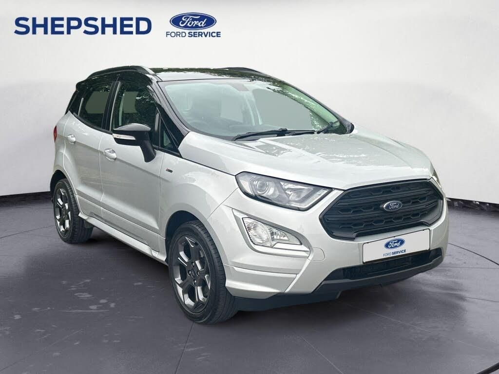 Finished in Moondust Silver Paint with Black Contrast Roof - With only one previous owner and a full dealership service history, this 2020 Ford EcoSport is a well-maintained example of a practical and stylish compact SUV. The EcoSport, in its sporty ST-Line trim, is powered by a responsive 1.0L petrol engine and meets Euro 6 emission standards. For added peace of mind, it comes with a 3-month warranty and a fresh 12-month MOT upon purchase. The last service was completed on 2024-12-09 at 48257 miles. This EcoSport ST-Line also boasts several desirable features, including the Rear View Camera Pack with rear parking assistance, electronic automatic temperature control for climate control, automatic headlights, and Ford SYNC 3 Navigation with an 8-inch touchscreen, complete with Android Auto and Apple CarPlay.This particular EcoSport stands out with its impressive fuel economy of 48 mpg, meaning fewer trips to the petrol station. It also benefits from low CO2 emissions, making it a more environmentally conscious choice.A WhatsApp & Facetime viewings are available-Please Call 01509 508008 to arrange or email sales@shepshedford.co.uk - We are an independent family run business with over 43 years motor trade experience --GREAT VALUE ECOSPORT-A FAMILY RUN FORD DEALERSHIP WITH OVER 40 YEARS OF EXPERIENCE + 2 MINUTES FROM JCT 23 OF THE M1.