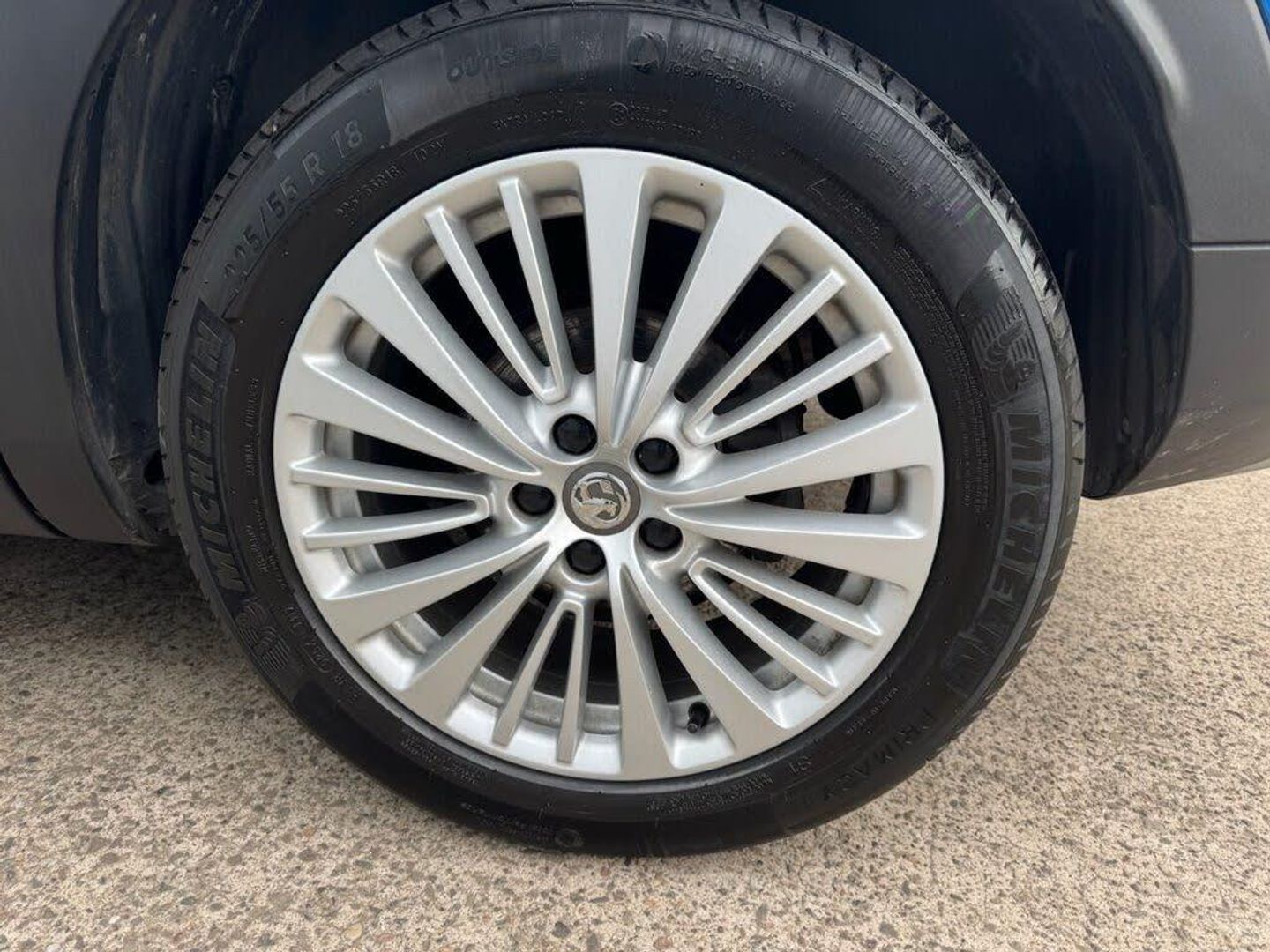 12V Electrical Accessory Socket, 18in Alloy Wheels - Multispoke - Silver Effect, 60-40 Split-Folding Rear Seat Back, ABS - Anti Lock Brakes, Advanced Predictive Logic Control System, Airbags - Front Seat Side-Impact, Alloy Effect Protective Front and Rear Skid Plates, Ambient Lighting, Anti-Submarining Ramps in Front Seats, Automatic Air Direction and Fan Speed, Automatic Lighting and Windscreen Wipers, Automatic Tilting Door Mirrors, Automatically Dimming Anti-Dazzle Rear-View Mirror, Black Door Panels with Black Premium Leather-Effect Inserts, Body Colour Door Mirrors, Body Coloured Door Handles, CSC - Corner Stability Control, Central Facia Display, Charcoal Filter, Child Proof Locks on Rear Doors, Chrome Effect Front Grille Bar, Chrome Effect Interior Door Handles, Chrome Effect Side Window Upper Trim, Collapsible Windscreen Wiper System, Covered Storage Compartment in Centre Console and Drivers Armrest, Cruise Control with Speed Limiter and Intelligent Speed Adaptation, Deactivation Switch For Front Passengers Front and Side Impact Airbags, Deflation Detection System, Deformation Zones Front and Rear, Door to Door Illumination, Driver Information Display, Drivers Centre Armrest, Drivers and Front Passengers Airbags, Drivers and Front Passengers Seats - 16-Way Adjustable, Drivers and Front Passengers Sunvisors with Illuminated Vanity Mirrors, Dual Seatbelt Pretensioners on Front Seats, Dual-Zone Electronic Climate Control, EBD - Electronic Brakeforce Distribution, Electric Parking Brake, Electrically Foldable Door Mirrors with Puddle Lights, Electrically Operated Front and Rear Windows with Safety Autoreverse and One-Touch Facility, Electronic Climate Control including Air Conditioning, Electronically Protected Audio Equipment, Energy Absorbing Steering Column, Engine Deadlock Immobiliser, Engine Drag Torque Control, Ergonomic Active Front Seats - AGR-Approved - Campaign for Healthier Backs is an independent centre of excellence for ergonomics based in Germany, Four Adjustable Facia Vents, Front Door Pockets with 2.6litre Capacity, Front Door Sill Covers - Alloy-Effect, Front Fog Lights, Front and Rear Parking Distance Sensors, Front and Rear Passengers Assist Handles, Fuel Gauge with Low Fuel Warning Light, Full Size Curtain Airbags for Driver - Front Passenger and Outer Rear Seat Passengers, Gloss Black B-Pillars, Hazard Warning Lights, Heated Rear Screen with Timed Cut-Off, Height Adjustable Front Seat Head Restraints, Height Adjustable Rear Seat Head Restraints, High-Level Centre Brake Light, Hill Start Assist, Hydraulic Brake Assist, Illuminated Controls, Inertia-Reel Lap and Diagonal Seatbelts, Interior Courtesy Light Operated By Door Switches, Intermittent Rear Window Wash-Wipe, LED Daytime Running Lights, LED Headlights, LED Tail Lights, Lane Departure Warning, Lights On Audible Warning, Load Limiters Outer Rear Seatbelt Retractors, Locking Wheel Nuts, Luggage Compartment 12V Electrical Accessory Socket, Luggage Compartment Cover, Luggage Compartment Foldable Cover, Multi-Function Trip Computer, Navi 5.0 Intellilink Touchscreen Navigation and Infotainment System, Premium Lighting, Pretensioners on Outer Rear Seatbelt Retractors, Rake and Reach Adjustable Steering, Rear Door Pockets with 1.8litre Capacity, Rear Fog Light, Rear Passenger Compartment Heating Ducts, Rear Spoiler, Reinforced Passenger Safety Cell, Remote Control Central Locking, Remote Control Security Alarm System, Rev Counter, Reversing Lights, Safety Pack, Sanora Gold Facia and Door Panel Inserts, Shift Up Indication Light, Side Blind Spot Alert, Side Impact Protection Beams, Side Protection Mouldings, Side Window Demist Vents, Six Speakers - Four Front-Two Rear, Smart Seatbelt Reminder for Front and Rear Seats, Sound Absorbing Windscreen, Speed Sign Recognition, Speed-Sensitive Electric Power-Assisted Steering, Speedometer, Steering Wheel - Three-Spoke Design - Leather Covered - Satin Chrome-Effect Bezel, Steering Wheel Mounted Audio Controls, Storage Pockets on Front Seat Backs, Switchable Electronic Stability Programme - ESP, Tinted Windows, Toba Grey Facia and Door Panel Inserts, Traction Control, Two Drinks Holders in Centre Console, Two Folding Keys - Each with Integral Remote Control Function, Two Speed Windscreen Wipers with Variable Intermittent Wipe, Upper and Lower Bumper Design, VIN - Visible Vehicle Identification Number, Vauxhall Connect, Ventilated Glovebox with Lid, Versatility Pack, Water Temperature Gauge with Warning Light, Welcome Lighting, Windscreen Demist Vents, i-Size Compatible Child Seat Mountings Located on Front Passenger and Outer Rear Seats