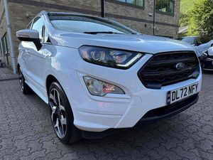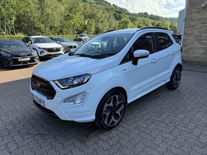 RESERVE ON LINE..ONE OWNER FROM NEW, FULL FORD HISTORY WITH 18" ALLOYS, NAVIGATION, X-PACK, B&O PREMIUM SOUND, APPLE ANDROID PLAY, REAR PARK ASSIST AND REAR CAMERAWith only one previous owner, this 2023 Ford EcoSport is a smart choice. The EcoSport T ST-Line, with its 1.0L petrol engine and Euro 6 emission class, combines style and efficiency. The ST-Line trim adds a sporty edge, enhanced by 18in alloy wheels with a Shadow Black Machined Finish. Convenience is key with features like keyless entry, automatic headlights, and electronic automatic temperature control. The rear view camera pack, including a rear camera and parking sensors, makes parking a breeze. Plus, you can drive with peace of mind knowing the MOT is valid until February 2026.This EcoSport stands out with its X-Pack, which includes a premium branded sound system for an enhanced audio experience. The impressive fuel economy of 46 mpg means fewer trips to the petrol station, saving you money. This Ford EcoSport offers a blend of practicality and flair, making it an excellent option for those seeking a well-equipped and economical vehicle.