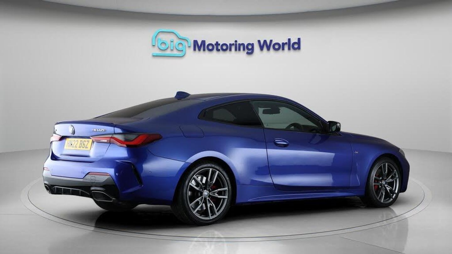 All Wheel Drive,19'' Alloy whee-Our BMW 4 Series comes with optional extras worth £170. Specification includes a range of fantastic features including All Wheel Drive, 19'' Alloy wheels, Leather Seats, M Sport Bodykit, Satellite Navigation, Privacy Glass, Heated Seats, Rear View Camera, Heated Steering Wheel, Bluetooth Specification information is supplied by CAPHPI and may vary to the actual car. This data does not form any part of a buying contact. Please check specification prior to purchase in-store. The MOT is valid until May 2026, visit bigmotoringworld.co.uk for more photos, a 360 tour, service history and a free HPI report.Were BIG on peace of mind and this Blue BMW 4 Series has completed our comprehensive 200 point inspection and passed all checks. Its ready for you to drive away with immediate collection in-store. We include a 90-day warranty as standard plus an option to extend for up to 3 years.Reserve this car exclusively for you, safely and securely at bigmotoringworld.co.uk, with a fully refundable £99 deposit. Test drive before you buy, with no commitment, no hassle and a completely haggle free experience. Still searching and want to see thousands more cars? We are BIG on choice with over 8000 cars to choose from.Visit our award winning web site bigmotoringworld.co.uk.Were Big Motoring World and were BIG on what matters to you.