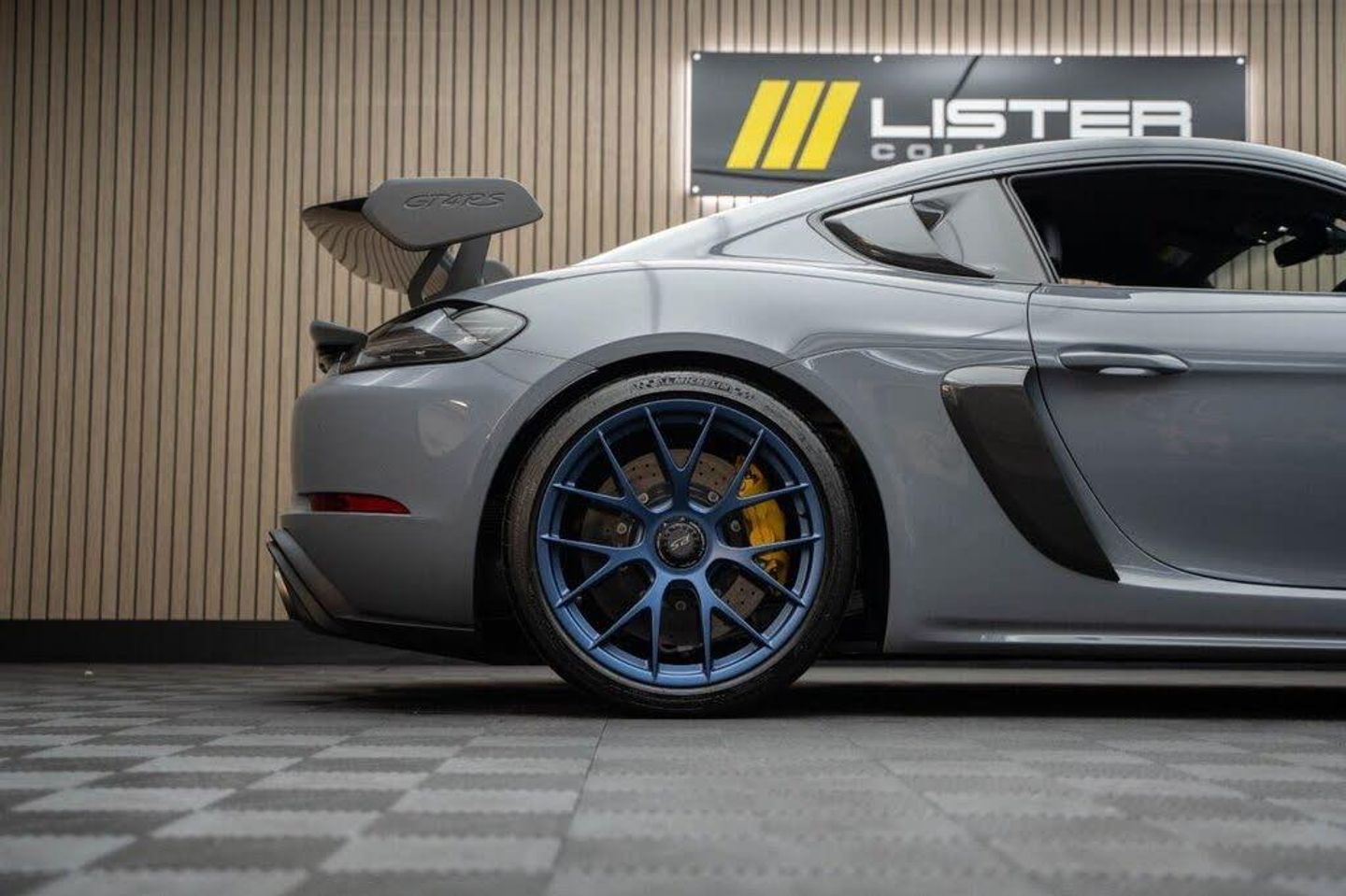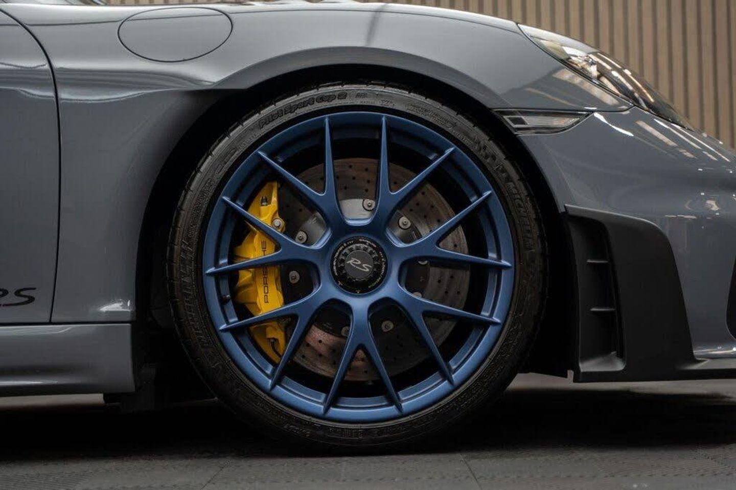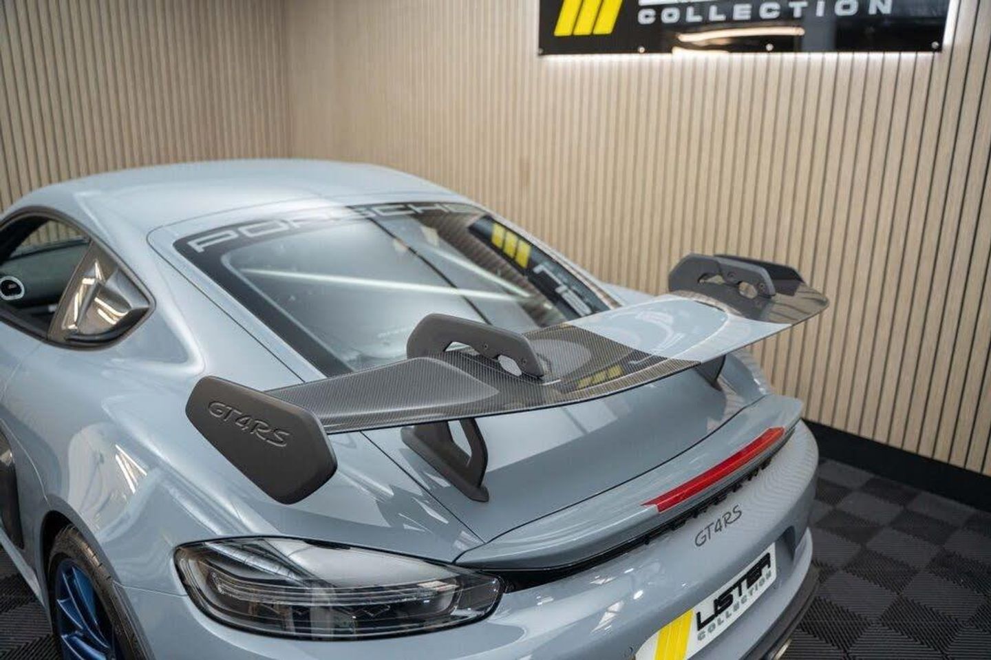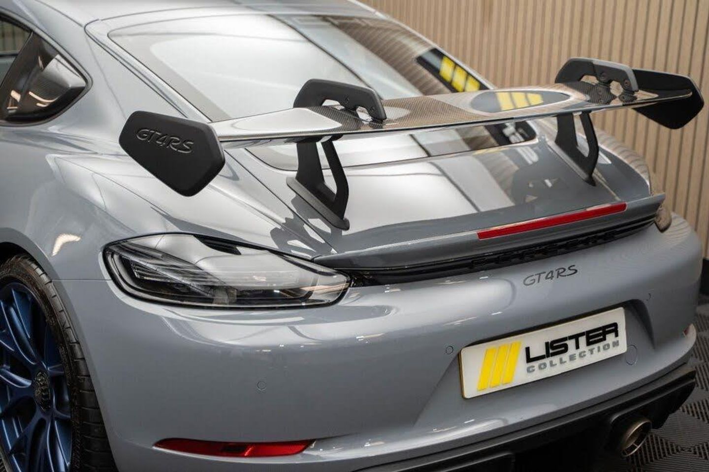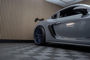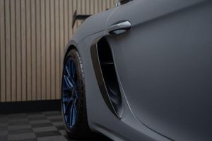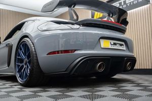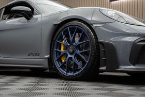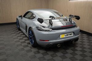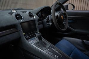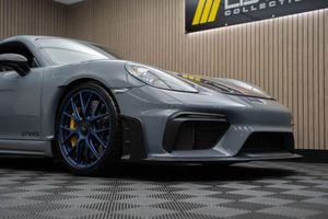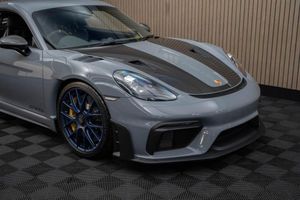 Arctic Grey, LED Main Headlights including Porsche Dynamic Light System - PDLS, BOSE Surround Sound System, Chrono Package and Preparation for Lap Trigger, Six-Point Racing Harness for Passenger Seat, Fire Extinguisher, HomeLink - Programmable Garage Door Opener, Door Pull Loops in Shark Blue, Sun Visors in Race-Tex, Roll Cage in Satin Arctic Grey, Seat Belts - Arctic Grey, Bespoke Door Sill Guards in Carbon - Illuminated, Window Triangle Trims in Carbon - Front, Weissach Package, Wheels Painted in Indigo Blue, Porsche Crest on Storage Compartment Lid in Race-Tex, Clubsport Package, 20in Alloy Wheels - 718 Cayman GT4 RS Forged Magnesium, 12-Volt Socket in Passenger Footwell, 20in Alloy Wheels - 718 Cayman GT4 RS - Forged Aluminium - Painted in Dark Silver, Adjustable Chassis For Track Use, Adjustable Fan with Air Recirculation and Defroster Functions, Adjustable Suspension Race Track Chassis, Airbox Cover with GT4 RS Logo in Silver and Black, Alarm System, Ascending Centre Console with an Uncovered Storage Compartment and a Closed Storage Compartment, Automatic Headlight Activation including Welcome Home Lighting, Automatically Dimming Exterior and Interior Mirrors, Bi-Xenon Headlights with Integrated LED Daytime Running Lights, Bonnet Made of Carbon Fibre Reinforced Plastic - CFRP - in Exterior Colour with Black NACA Air Inlets for Brake Cooling, Brake Calipers - Red, Central Wheel Bolts in Black including Wheel Hub Cover with RS Logo in Silver, Closed Underbody Panelling, Cruise Control, Dashcam Preparation, Digital Displays for Vehicle Speed - Chosen Gear - Odometer -Trip Meter and Time, Digital Radio, Door Opening Loops - Decorative Stitching - Embroidered GT4 RS Lettering and Perforated Race-Tex Seat Centre in Arctic Grey, Door Sill Guards in Satin Carbon-Weave Finish with Model Designation GT4 RS in Silver, Dynamic Gearbox Mount System, Electric Windows with One-Touch Operation and Door Seal Protection Function, Electrically Adjustable Heated Exterior Mirrors on Door Waist Rails - Aspherical on Drivers Side, Electrically Controlled Parking Brake, Electromechanical Power Steering with Variable Steering Ratio and Speed Dependant Steering Assistance, Engine Water Cooled with Thermal Management, Exclusive Design Fuel Filler Cap, Fixed GT4 RS Rear Wing of Carbon Fibre Reinforced Plastic - CFRP - Painted in the Exterior Colour with Black Sideplates, Fixed Rear Lip Spoiler, Floor Mats, Front Apron with Large Cooling Intakes, Front Wheel Arches Made of Carbon Fibre Reinforced - CFRP in Exterior Colour including Wheel Arch Ventilation in Black, Full Size Airbags for Driver and Front Passenger, Green Tinted Heat-Insulating Glass, Instrument Cluster with Central Rev Counter and High Resolution 4.6inch Colour Display, Instrument Dials in Black with Yellow Indices and Scales - Rev Counter in Titanium Colour - GT4 RS Logo, Intelligent Lightweight in Aluminium-Steel-Composite Construction, Interior Package - Carbon, LED Reading Lights - Orientation Lighting and Ignition Lock - Additionally Luggage Compartment and Glove Box Lighting, LED Taillights - Tinted with Integrated 4-Point Brake Lights and Reversing Lights, Lightweight Door Panels with Storage Net in Black and Opening Loops in Arctic Grey, Lightweight Spring-Strut Axle Front and Rear, Luggage Compartments at Front and Rear, Model Designation Stripes - GT4 RS in Satin Black, PASM - Porsche Active Suspension Management - Sports Susupension and Ride Height Lowered by 30mm, PCM - Porsche Communication Management - Include Navigation, PDK Gear Changer with Manual Alley - Grip Area and Shift Gaiter in Race Tex - Shift Pattern in Racing Yellow, PORSCHE Logo in Accent Trim on Rear Apron in Painted in Satin Black, Porsche Side Impact Protection - POSIP, Porsche Stability Management - PSM Including ABS, Porsche Torque Vectoring - PTV with Mechanically Locking Rear Differential, Porsche Track Precision App, Process Air Inlets Behind Driver and Passenger Windows in Black, RS Sports Steering Wheel with Steering Wheel Rim and PDK Gear Selector in Race-Tex, Rain Sensing Automatic Windscreen Wipers, Rear Apron Lower Part in Black with Diffuser including Fins, Remote Central Locking with Immobiliser, Roof Lining in Race-Tex, Seats - Full Bucket, Separate Auxiliary Lights in the Front End with LED Indicators and Position Lights, Side Air Intakes with One Grille - Sideblades including GT4 RS Logo in Black Synthetic, Side Window Trims in Black, Sound Package Plus, Sport Exhaust System - Flow Optimised Stainless Steel Lightweight Sports Exhaust System with 2 Tailpipes Made of Stainless Steel in Black High Gloss, Sports-Look Pedals and Footrest, Steering Wheel Rim in Black Race Tex and Top Centre Marking in Yellow, Storage Compartment in Each Door, TPM - Tyre Pressure Monitoring with Race Circuit Mode, Two Individual Cup Holders - Integrated into Dashboard Trim Strip, Two-Zone Automatic Climate Control, Tyre Repair Kit, USB Interface in Central Storage Compartment, Wide Opening Rear Hatch with Rear Screen Made of Lightweight Glass, Windscreen Wiper System with Aero Wiper Blades and Washer Jets, Windscreen with Darker Grey Tint at the Top to Reduce Glare