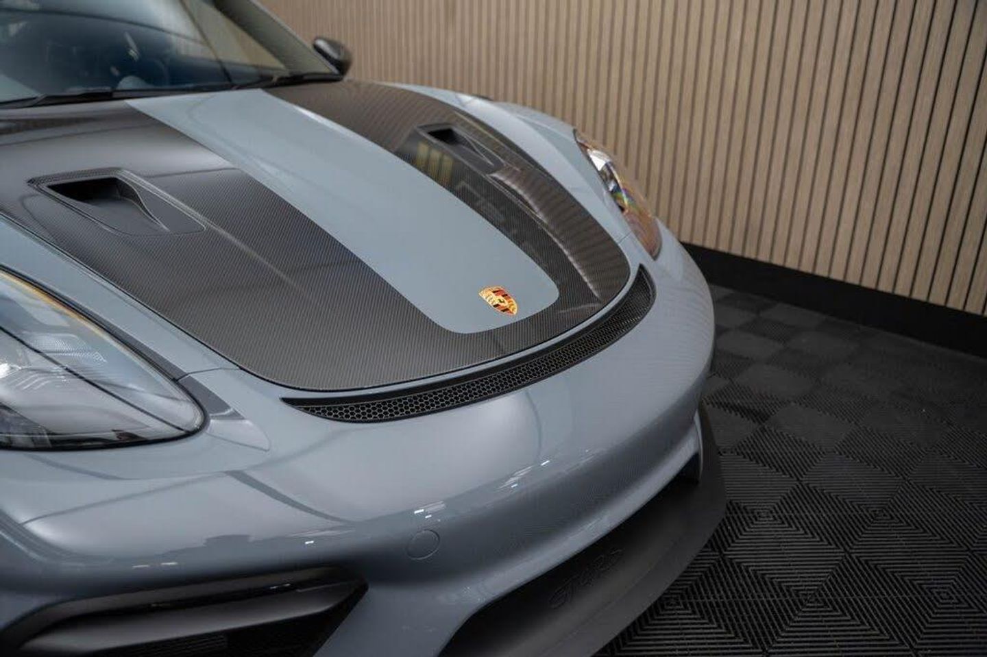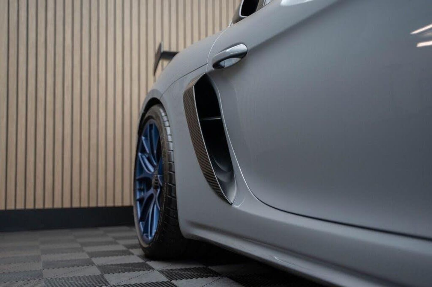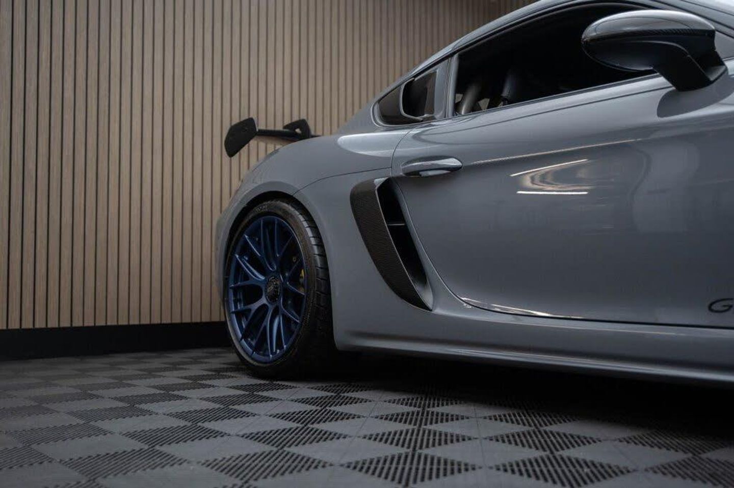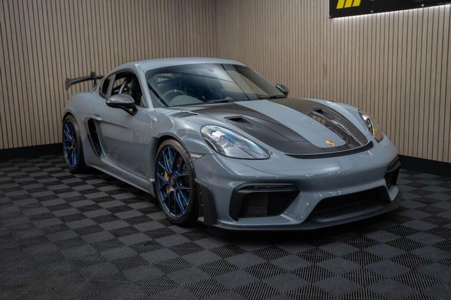Arctic Grey, LED Main Headlights including Porsche Dynamic Light System - PDLS, BOSE Surround Sound System, Chrono Package and Preparation for Lap Trigger, Six-Point Racing Harness for Passenger Seat, Fire Extinguisher, HomeLink - Programmable Garage Door Opener, Door Pull Loops in Shark Blue, Sun Visors in Race-Tex, Roll Cage in Satin Arctic Grey, Seat Belts - Arctic Grey, Bespoke Door Sill Guards in Carbon - Illuminated, Window Triangle Trims in Carbon - Front, Weissach Package, Wheels Painted in Indigo Blue, Porsche Crest on Storage Compartment Lid in Race-Tex, Clubsport Package, 20in Alloy Wheels - 718 Cayman GT4 RS Forged Magnesium, 12-Volt Socket in Passenger Footwell, 20in Alloy Wheels - 718 Cayman GT4 RS - Forged Aluminium - Painted in Dark Silver, Adjustable Chassis For Track Use, Adjustable Fan with Air Recirculation and Defroster Functions, Adjustable Suspension Race Track Chassis, Airbox Cover with GT4 RS Logo in Silver and Black, Alarm System, Ascending Centre Console with an Uncovered Storage Compartment and a Closed Storage Compartment, Automatic Headlight Activation including Welcome Home Lighting, Automatically Dimming Exterior and Interior Mirrors, Bi-Xenon Headlights with Integrated LED Daytime Running Lights, Bonnet Made of Carbon Fibre Reinforced Plastic - CFRP - in Exterior Colour with Black NACA Air Inlets for Brake Cooling, Brake Calipers - Red, Central Wheel Bolts in Black including Wheel Hub Cover with RS Logo in Silver, Closed Underbody Panelling, Cruise Control, Dashcam Preparation, Digital Displays for Vehicle Speed - Chosen Gear - Odometer -Trip Meter and Time, Digital Radio, Door Opening Loops - Decorative Stitching - Embroidered GT4 RS Lettering and Perforated Race-Tex Seat Centre in Arctic Grey, Door Sill Guards in Satin Carbon-Weave Finish with Model Designation GT4 RS in Silver, Dynamic Gearbox Mount System, Electric Windows with One-Touch Operation and Door Seal Protection Function, Electrically Adjustable Heated Exterior Mirrors on Door Waist Rails - Aspherical on Drivers Side, Electrically Controlled Parking Brake, Electromechanical Power Steering with Variable Steering Ratio and Speed Dependant Steering Assistance, Engine Water Cooled with Thermal Management, Exclusive Design Fuel Filler Cap, Fixed GT4 RS Rear Wing of Carbon Fibre Reinforced Plastic - CFRP - Painted in the Exterior Colour with Black Sideplates, Fixed Rear Lip Spoiler, Floor Mats, Front Apron with Large Cooling Intakes, Front Wheel Arches Made of Carbon Fibre Reinforced - CFRP in Exterior Colour including Wheel Arch Ventilation in Black, Full Size Airbags for Driver and Front Passenger, Green Tinted Heat-Insulating Glass, Instrument Cluster with Central Rev Counter and High Resolution 4.6inch Colour Display, Instrument Dials in Black with Yellow Indices and Scales - Rev Counter in Titanium Colour - GT4 RS Logo, Intelligent Lightweight in Aluminium-Steel-Composite Construction, Interior Package - Carbon, LED Reading Lights - Orientation Lighting and Ignition Lock - Additionally Luggage Compartment and Glove Box Lighting, LED Taillights - Tinted with Integrated 4-Point Brake Lights and Reversing Lights, Lightweight Door Panels with Storage Net in Black and Opening Loops in Arctic Grey, Lightweight Spring-Strut Axle Front and Rear, Luggage Compartments at Front and Rear, Model Designation Stripes - GT4 RS in Satin Black, PASM - Porsche Active Suspension Management - Sports Susupension and Ride Height Lowered by 30mm, PCM - Porsche Communication Management - Include Navigation, PDK Gear Changer with Manual Alley - Grip Area and Shift Gaiter in Race Tex - Shift Pattern in Racing Yellow, PORSCHE Logo in Accent Trim on Rear Apron in Painted in Satin Black, Porsche Side Impact Protection - POSIP, Porsche Stability Management - PSM Including ABS, Porsche Torque Vectoring - PTV with Mechanically Locking Rear Differential, Porsche Track Precision App, Process Air Inlets Behind Driver and Passenger Windows in Black, RS Sports Steering Wheel with Steering Wheel Rim and PDK Gear Selector in Race-Tex, Rain Sensing Automatic Windscreen Wipers, Rear Apron Lower Part in Black with Diffuser including Fins, Remote Central Locking with Immobiliser, Roof Lining in Race-Tex, Seats - Full Bucket, Separate Auxiliary Lights in the Front End with LED Indicators and Position Lights, Side Air Intakes with One Grille - Sideblades including GT4 RS Logo in Black Synthetic, Side Window Trims in Black, Sound Package Plus, Sport Exhaust System - Flow Optimised Stainless Steel Lightweight Sports Exhaust System with 2 Tailpipes Made of Stainless Steel in Black High Gloss, Sports-Look Pedals and Footrest, Steering Wheel Rim in Black Race Tex and Top Centre Marking in Yellow, Storage Compartment in Each Door, TPM - Tyre Pressure Monitoring with Race Circuit Mode, Two Individual Cup Holders - Integrated into Dashboard Trim Strip, Two-Zone Automatic Climate Control, Tyre Repair Kit, USB Interface in Central Storage Compartment, Wide Opening Rear Hatch with Rear Screen Made of Lightweight Glass, Windscreen Wiper System with Aero Wiper Blades and Washer Jets, Windscreen with Darker Grey Tint at the Top to Reduce Glare
