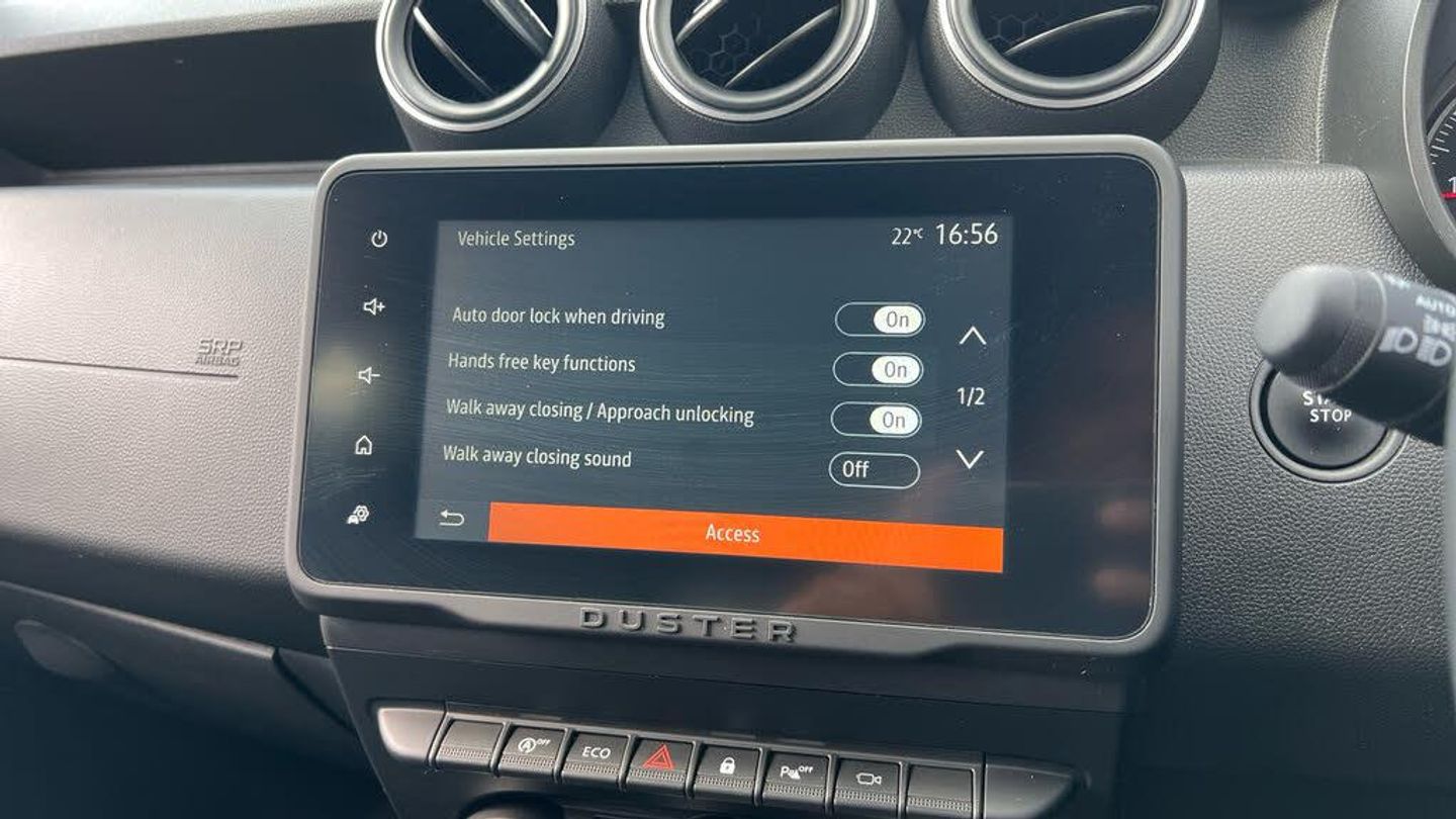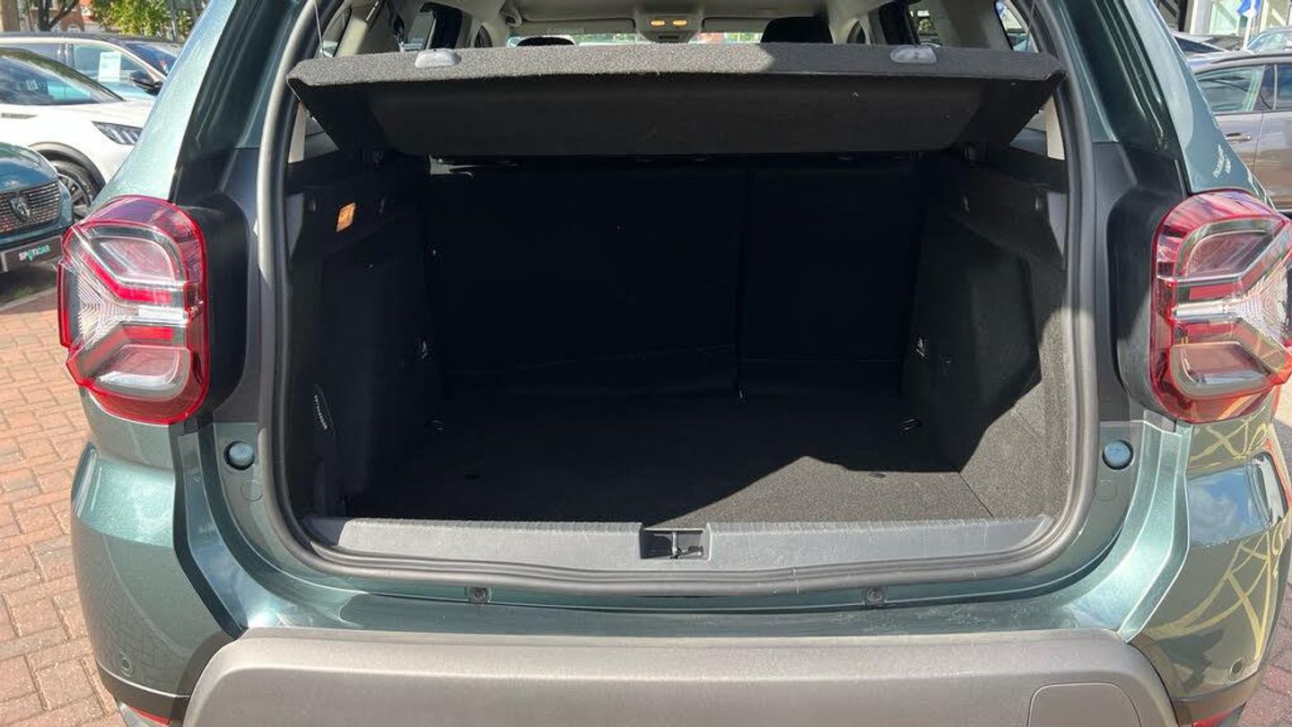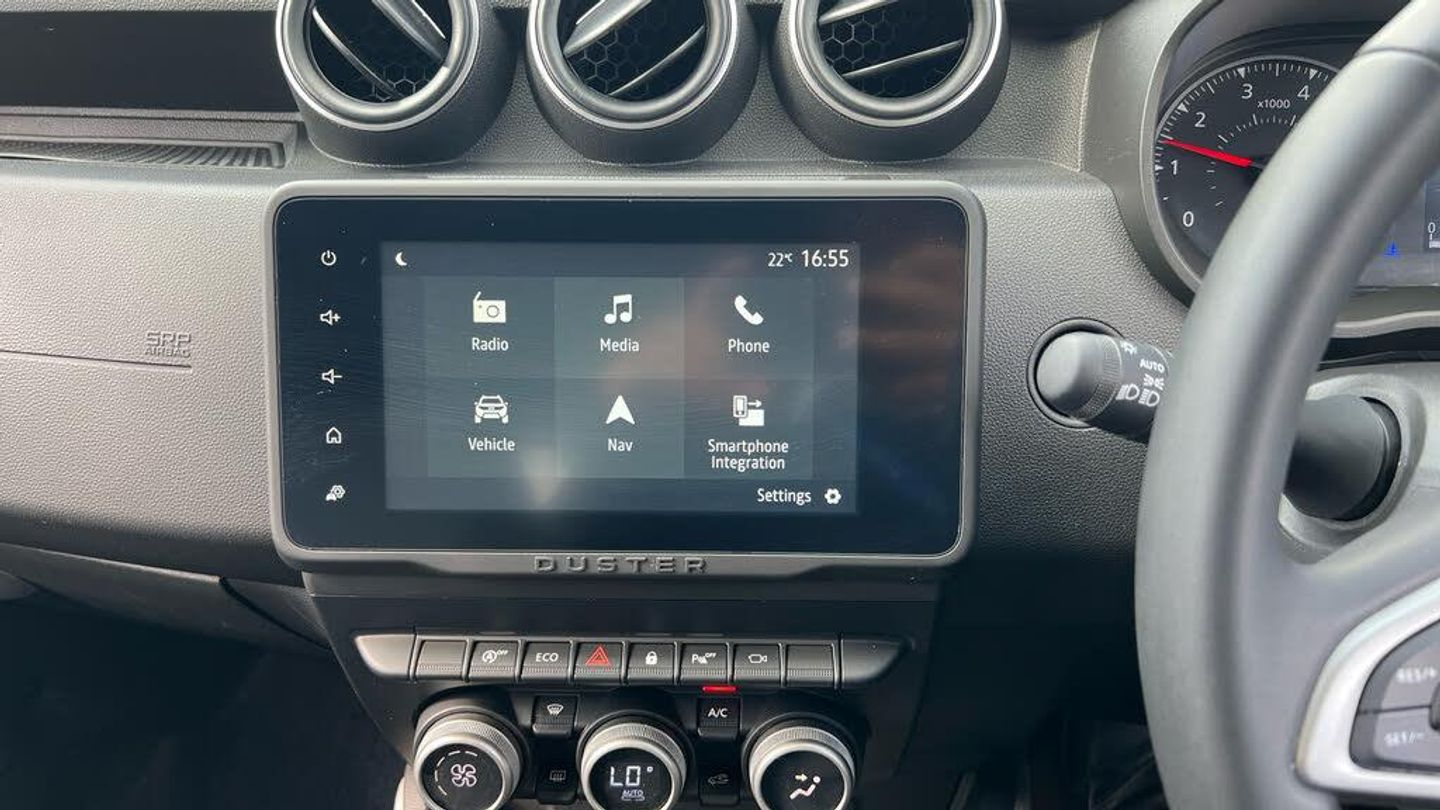 12V Sockets - Front and Rear, 8in Media NAV, Shark Antenna - Shiny Black, Blind Spot Warning, Cruise Control and Speed Limiter, Door Open - Visual and Audible Warning, ECO Mode, Gear Shift Indicator, Multiview Camera, On-board Computer with 13 Functions, Rear Parking Sensors, Rear View Camera, Tyre Pressure Monitor, 17in Alloy Wheels - Tergan Black, Acoustic Windshield, Body-Coloured Front and Rear Bumpers - Lower Section, Dark Glass on Lateral Rear Windows, Door Handles - Body Coloured, Door Mirrors - Copper Brown, Door Mirrors - Heated and Electrically Adjustable-Folding, Electric Windows - Front, Electric Windows - Rear, Grille with White Hubcaps, Heated Rear Screen and Timed Rear Screen Wiper, LED Brand Light, Modular Roof Bars - Megalith Grey, Tailgate Trim with Duster Inscription - Copper Brown, Tinted Windows, Tyre Inflation Kit, Wheel Arch Mouldings, Automatic Headlights, DRL - Daytime Running Lights, Dusk Sensor, Front Fog Lights, 2 Front Reading Lights, Air Vents Surrounds - Copper Brown, Automatic Air Conditioning, Automatic Windscreen Wipers, Boot Light, Door Sills with Topographic Pattern, Front Door Pull Handle - Fog Grey, Glovebox Light, Heated Front Seats, Height-Adjustable Drivers Seat, Interior Door Handles - Steel Grey, Lumbar Seat Adjustment, Map Pockets on Front Seatbacks, Rear Passenger Reading Light, Rubber Mats with Topographic Pattern - Front and Rear, Semi-high Centre Console with Sliding Plastic-coated Fabric Armrest and Storage, Soft Feel Steering Wheel, Split Folding Rear Bench Seat Back - 1-3 - 2-3, Steering Wheel Adjustable for Height and Reach, Power Assisted Steering, 3-Point Rear Seatbelts x3, Airbags - Driver, Airbags - Front Passenger with Deactivation Function, Airbags - Shoulder and Curtain Side, Anti-lock Braking System - ABS and Emergency Brake Assist - EBA, Child Locks in Rear Doors, Driver and Passenger Seatbelt Not Fastened - Visual and Audible Warning, Electronic Stability Control - ESC with Hill Start Assist - HSA, Front and Rear Seat Belts with Pyrotechnic Pretensioners, ISOFIX Points for Child Seats in Both Outer Rear Seats, Keyless Entry, Remote Central Locking, Skid Plates - Front and Rear - Megalith Grey, Thatcham Approved Engine Immobiliser