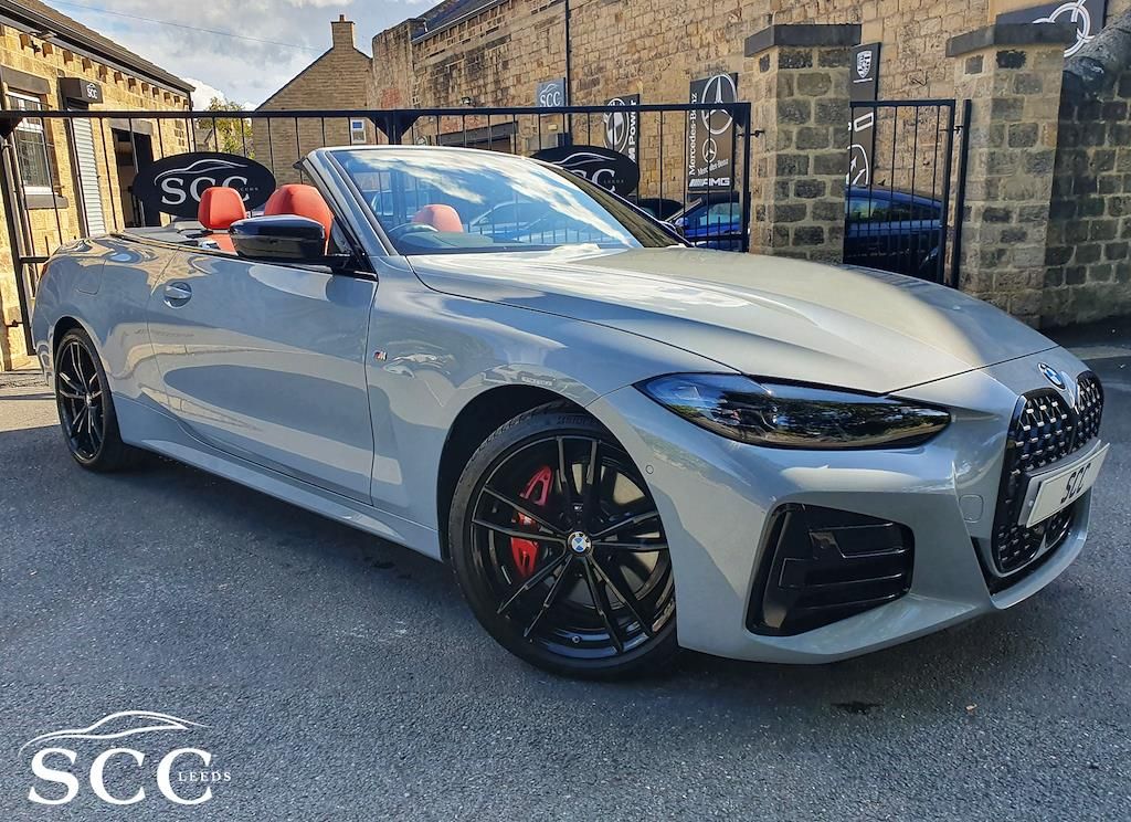 ****OPTIONAL SPEC - THE MOST DESIRABLE COLOUR COMBINATION ON THE MARKET - TECHNOLOGY PACK, COMFORT PACK, HEATED STEERING WHEEL, HARMON KARDON SOUND PACKAGE, WIND DEFLECTOR, INDIVIDUAL SHADOWLINE LIGHTING PACKAGE, GYEON Q2 MOHS EVO CERAMIC COATING APPLIED*** Discover the thrilling driving experience of the BMW 4 Series Convertible, now available for �41,995 at SCC Leeds. This stunning vehicle, finished in the eye-catching Brooklyn Grey, combines elegance with performance, powered by a robust 3.0L petrol/electric hybrid engine delivering an impressive 369 BHP. With just 5,165 miles on the clock and an 8-speed automatic transmission, this car promises a smooth and exhilarating ride. Among its standout features, the BMW Individual High-Gloss Shadowline with Extended Contents enhances the vehicle's aesthetic appeal, giving it a striking, polished look that is sure to turn heads. The Comfort Package provides ultimate convenience, ensuring that every journey is not only stylish but also comfortable for both driver and passengers. Enjoy an elevated audio experience with the Loudspeaker System by Harman Kardon, delivering crystal-clear sound that makes every drive a pleasure. Additionally, the Adaptive M Suspension is designed to adapt to various driving conditions, allowing you to enjoy a dynamic driving experience whether you're cruising on the motorway or navigating city streets. With combined fuel consumption of 35.3mpg, this vehicle also ensures that you can enjoy performance without compromising on efficiency. Don�t miss out on the opportunity to own this remarkable BMW 4 Series Convertible. Contact SCC Leeds today at 01943884551 to arrange a viewing or to find out more about this exceptional vehicle. Your dream car awaits! 19in Alloy Wheels - M Double Spoke Style - 792 - Bicolour Cerium Grey with Mixed Tyres,Active Guard Plus,Adaptive M Suspension,Air Conditioning - Automatic with Three-Zone,Airbags,Alarm System,Ambient Lighting,Armrests,Attentiveness Assistant,Automatic Start-Stop Button,BMW Connected Package Professional,BMW ConnectedDrive Online Services,BMW Emblem on Engine Compartment Lid and Tailgate,BMW Emergency Call,BMW ID,BMW Kidney Grille with Mesh Grille - Front Side of the Nuggets in Matt Aluminium and Frame in Chrome High-Gloss,BMW Live Cockpit Professional,BMW TeleServices,BMW iDrive,Battery in Luggage Compartment,Bumper System - Front and Rear,Centre Armrest in Rear - Folding with 2 Cup Holders,Centre Lock Switch,Closing System with Central Locking,Condition Based Service,Crash Sensor,Cruise Control,Cup Holders in Centre Console - Front - 2 Cupholder Inserts with Clamping Elements - Inlay Matt Black,DAB Tuner,DSC - Dynamic Stability Control Plus,Door Sill Strips - M Sport Entry Sills,Double-Jointed Spring-Strut Front Axle,Driving Experience Switch,EPS - Electric Power Steering,Electric Memory Seats,Electric Vehicle Immobiliser,Electric Window,Electronic Differential Lock,Exhaust Tailpipe Finishers - Visible,Exterior Trim - High-Gloss Shadowline,Floor Mats - Velour,Folding Wing Mirrors with Auto-Dimming,Follow-Me-Home Function,Front Apron - Plastic in Body Colour,Fuel Filler Cap - Right - Rear - in Body Colour,Gearshift Paddles,Glove Compartment - Illuminated,Headlight Beam-Throw Control - Automatic - Load Dependant Regulating Reaction - Dynamic Compensation of Braking Dive and Acceleration Squat,Headlining - Anthracite,Heat Protection - Sun Protection Glazing,HiFi Loudspeaker System,Illuminated Bow-Type Door Handles - in Body Colour - Drivers Side with Door Lock,Instrument Panel in Sensatec,Interior Lighting,Interior Rear-View Mirror with Automatic Anti-Dazzle Function,Interior Trim - Aluminium Tetragon,LED Headlights,LED Rear Lights,Lashing Eyelets in Luggage Compartment,License Plate Panel Integrated into Front Bumper and Tailgate,Luggage Compartment - Light,M Seat Belts,M Sport Brakes with Red Calipers,M Sport Differential,M Sport Exterior Styling,M Sport Leather Steering Wheel,Model Logo,Multifunction for Steering Wheel,Oil Sensor For Level and Grade,One-Piece Front Bumper Cover including Towing Eye Cover in Body Colour,Parking Assistant,Parking Brake - Electromechanical,Power Socket 12v,Power Sockets,Preparation For High-Beam Assistant,Reversing Light,Shifting Point Display,Side Frame Decorative Moulding - Black Matt,Smartphone Integration,Speed Limiter,Split Folding Rear Seat - 40-20-40,Sport Seats - Front,Steering Column Adjustment,Sun Visors with Illuminated Vanity Mirrors and Ticket Holder,Third Brake Light,Toolkit Located in Luggage Compartment,Tyre Pressure Sensors,Variable Sport Steering,Warning Triangle,Washer Jets - Heated,Welcome Light,Window Recess Finisher - Black Matt,BMW Individual High-Gloss Shadowline with Extended Contents,BMW Individual Lights - Shadowline,Comfort Package,Enhanced Bluetooth with Wireless Charging,Interior Trim - BMW Individual - Piano Black,Loudspeaker System - Harman Kardon,Steering Wheel - Heated,Technology Package,Warm Air Collar,WiFi Hotspot,Wind Deflector,Brooklyn Grey