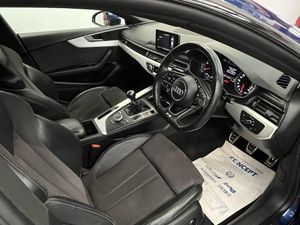 Flat-Bottomed 3-Spoke Leather High Multi-Function Steering Wheel, Privacy Glass, 19in Alloy Wheels - 5-Parallel Spoke Design, 18in Alloy Wheels - 5-Twin-Spoke Star Design, 2 x USB Charging Ports and 1 x AUX-IN, 4-Way Electric Lumbar Support, 6-Airbag System, ABS - Anti-Lock Braking System, Air Inlets - Horizontal Inlay in Matt Aluminium, Anti Theft Locking Wheel Bolts, Anti-Theft Alarm, Audi Connect Infotainment Services - 3 Month Trial, Audi Connect Safety and Service, Audi Drive Select, Audi Smartphone Interface, Audi Sound System, Auto-Dimming Rear-View Mirror, Bluetooth Interface, Body Coloured Door Mirrors, CD Drive, Chrome-Plated Exhaust Trim, Cloth Headlining in Black, Colour Drivers Information System with 7in High-Resolution TFT Screen, Contrast Stitching on Seats - Steering Wheel and Gear Lever Gaiter, Cruise Control with Speed Limiter, DAB Digital Radio Reception, Deluxe 3-Zone Electronic Climate Control, Door Mirrors - Electrically Adjustable and Heated with Built-in LED Indicators, ESC - Electronic Stabilisation Control inc ABS - ASR and EDL, Electric Windows - Front and Rear, Electrically Adjustable Front Seats, Electromechanical Parking Brake, Electromechanical Power Steering, Email - Calendar and Text Messages can be Displayed on your Vehicles MMI, First Aid Kit and Warning Triangle, Front Centre Armrest, Front and Rear Floor Mats, Gear Lever Knob in Black Perforated Leather, Heated Front Seats, High Gloss Package, High Multi-Function 3-Spoke Leather Steering Wheel with Grips in Perforated Leather and S Badging, Honeycomb Side Air Inlet Grille in Titan Black, ISOFIX Child Seat Mounting and Top Tether, Illuminated Door Sill Trims with S Logo, Inlays - Matt Brushed Aluminium, Keyless Go, LED Headlights with LED Rear Lights and Dynamic Rear Indicators, LED Interior Light Package, Light and Rain Sensor, MMI Navigation - SD Card Based, Multi Collision Brake Assist, Non-Smoking Package, Parking System Plus, Pedals and Footrest - Stainless Steel, Pop-Up Bonnet for Pedestrian Protection, Power Operated Tailgate, Pre-Sense City, Radiator Grille in Twilight Grey with Matt Aluminium Inlays, Rear Diffuser in Twilight Grey Matt with Honeycomb Grille, Rear Grille - Black Grained, S Line Badges on Front Wings, S Line Front and Rear Bumpers, S line Side Skirts in Black, Seat Belt Monitoring, Split-Folding 3-Seater Rear Seat Bench in 3 Parts - 40-20-40, Sport Suspension, Tool Kit and Car Jack, Tow Bar Preparation, Tyre Pressure Warning Light, Variable Restraint System, Voice Control System, Windscreen with Acoustic Glazing