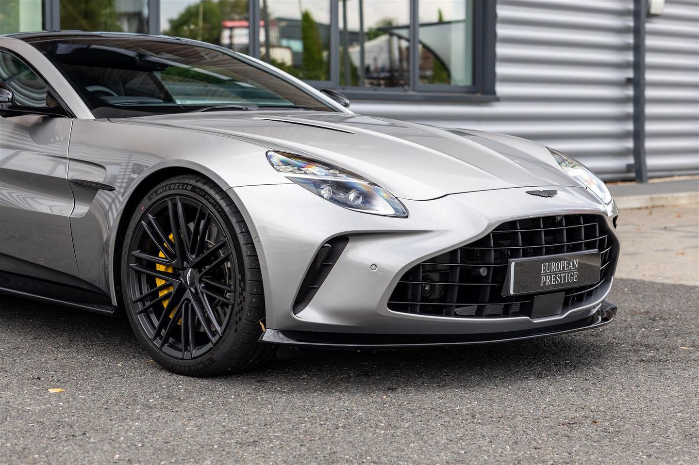 2025 Aston Martin Vantage finished in Aluminite Silver over an Onyx Black leather interior.