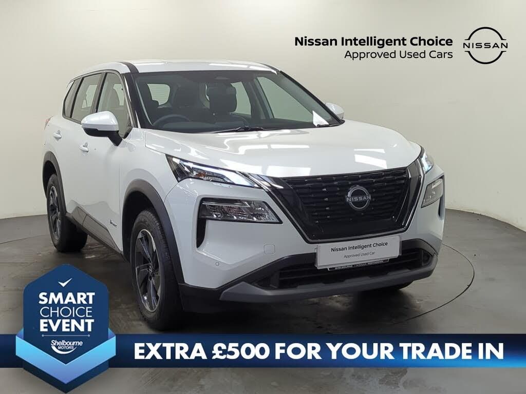 Android auto/Apple CarPlay (Wired), Blind spot warning, Drive assist custom mode, Drive modes (sport, normal, eco, snow, off-road), Driver drowsiness and attention warning, e-Pedal step, Electric speed sensitive power steering, Emergency and breakdown call, Event data recorder, Front and rear parking sensors, Full Digital 12.3" TFT Digital Combimeter, Idle stop/start system, Intelligent driver alert system, Intelligent forward collision warning, Intelligent lane departure warning, Intelligent lane intervention, Intelligent lane keep assist, Maximum speed limiter, Moving object detection, Nissan connect 8" touchscreen infotainment system, Push button starter, Rear cross traffic alert, Rear view camera, Reversing detection, Traffic sign recognition with legal speed adjustment, Trip computer, Wireless charging pad, 6 speakers, AM/FM audio system with DAB, Bluetooth audio streaming, Front USB connections (Type-A and Type-C), Rear USB charging only ports 2 Type-C, Auto dimming rear view mirror, Auto rear wiper when reversing, Body colour mirror caps, Body coloured door handles, Bodyside mouldings, Chrome side window finisher, e-4ORCE badging, e-POWER badging, Electric auto folding door mirrors, Electrically adjustable and heated door mirrors, Follow me home headlights, High beam assist, Intelligent auto headlights, LED 3rd brake light, LED daytime running lights, LED Headlights, LED rear lights, One touch front and rear electric windows with remote opening and closing, Partially body coloured bumpers, Rain sensing wipers, Rear reversing light (bulb lighting), Rear roof spoiler, Rear side wing doors, Rear styling plate, Shark fin antenna, Splash free wipers, Three blink turn signal, 12v power socket in dashboard and luggage, 3 bench rear seats in 2nd row, 3 rear headrests, 60/40 split folding rear seat bench, Butteryfly console, Chrome interior door handles, Cloth monoform upholstery, Driver and front passenger sunvisors with illuminated vanity mirrors, Driver seat back pocket, Dual zone automatic climate control with pollen filter, Front centre console and armrest, Front cupholders, Front door with bottle holders, Height adjustable driver's seat, Height adjustable front headrests, Height adjustable passenger seat, Leather shift knob, Leather steering wheel, Luggage space lighting, Multifunction steering wheel, Passenger seat back pocket, Rear armrest with 2 cupholders, Rear door bottle holders, Single front passenger seat, Tilt/telescopic adjustable steering wheel, Two rear isofix child seat anchorage points with top tether, 3x3 point rear seatbelt pretensioners + load limiters, ABS with EBD and brake assist, Active brake limited slip, Auto hold function, Child locks on rear doors, Curtain and front side, far side airbags, Driver and passenger airbags, Driver, passenger and 2nd row rear seat belt reminder, Electronic parking brake, Front seatbelt pretensioners + load limiters, Height adjustable front seatbelts, Hill start assist, Intelligent blind spot intervention, Intelligent front emergency braking with pedestrian, cyclist recognition and junction assist, Intelligent rear automatic braking, Tyre pressure monitoring system, Vehicle dynamic control, Approach unlock and walk away lock, Engine immobiliser, Remote central door locking with deadlocking, Thatcham Cat.1 alarm, 18" Diamond cut alloy wheels, Tyre puncture repair kit