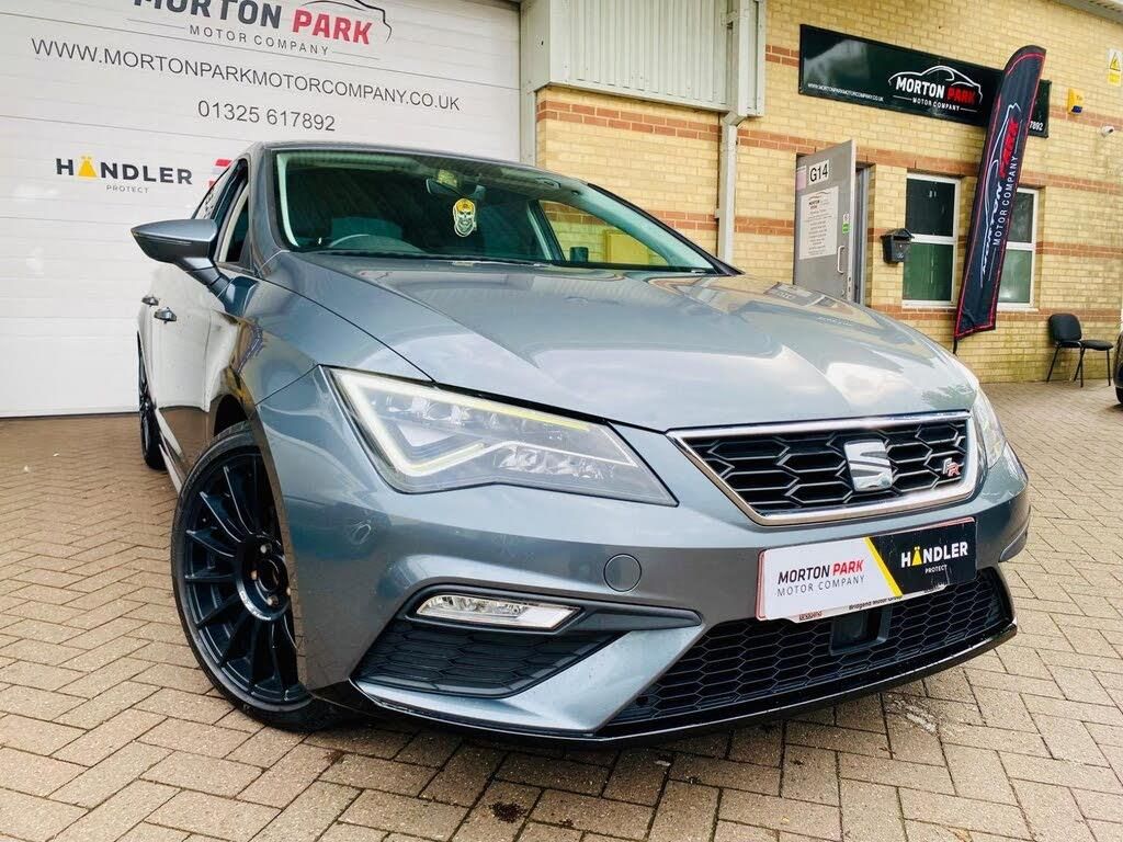 Features: 12V Power Supply in Centre Console,17in Alloy Wheels - Dynamic 30-2,7 Airbags,ABS - Anti-Lock Braking System - TCS - Traction Control System,Active Front Head Restraints and 3 Rear Head Restraints,Aluminium Front Door Sill Trims with FR Logo,Body-Coloured Door Handles,Body-Coloured Door Mirrors with Integrated LED Indicators,Boot Storage Net,Bumpers - Exclusive FR Front and Rear,Cargo Rings in the Boot,Cruise Control,Dark Tinted Rear Windows,Driver and Passenger Seat Height Adjustment,Driver and Passenger Sunvisor with Covered and Illuminated Mirrors,Drivers Seat Lumbar Adjustment,Dual Zone Climate Control,Electric Parking Brake Including Autohold Function,Electrically Folding Door Mirrors,Electro-Mechanical Power Steering,Electronic Differential Lock System - XDS,Emergency Tyre Repair Kit,ESC - Electronic Stability Control and Tyre Pressure Warning Light Indicator,Front and Rear Electric Windows,Front Assist with City Emergency Braking,Front Seat Back Storage Pockets,Front Sports Seats,Fuel Filler Flap linked to Central Locking,Full LED Headlights,Gearshift Indicator,Head Restraints - Height Adjustable Front,High Centre Console,High Gloss Black B and C Pillars,Hill Hold Control,Illuminated Door Sill Plates,Illuminated Glovebox,Instrument Lighting with Brightness Control,Interior Chrome Detailing,ISOFIX Points in Outer Rear Seats with Top Tether Anchorage Points,Lights Left On Warning Buzzer,Low Fuel Warning Light,Lower Suspension - 15mm,Media System Plus,Multi Coloured Ambient Lighting,Multi-Collision Braking System,Navigation System,Outside Temperature Gauge,Radiator Grille Frame in Chrome,Radiator Grille in Black,Reading Lights Front and Rear with Ambient Spots - Boot Lights and Illuminated Foot Area,Rear Parking Sensors,Remote Central Locking with Deadlocks,RPM Counter,SEAT Drive Profile,SEAT Full Link Smartphone Integration - Mirror Link - Apple CarPlay - Google Android Auto,Seatbelt Reminder - Front,Seats - Passenger Lumbar Adjustment,Split Folding Rear Seats - 60-40,Sports Suspension,Steering Wheel - Flat-Bottomed Perforated Leather with Red Stitching and FR Logo,Storage Box Under Drivers Seat,Trip Computer,Two Remote Keys with Window Open-Close - Door Mirror Folding and Boot Opening Functionality,Visual Twin Exhaust Pipes