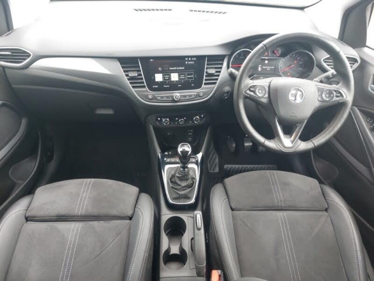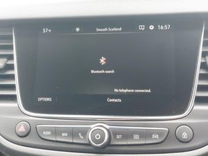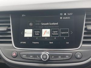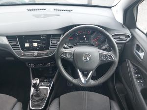 Multimedia sat nav pro with 8" colour touchscreen, AM/FM, Bluetooth streaming, Bluetooth mobile phone portal, apple CarPlay/Android Auto + 6 speakers, 3.5" monochrome instrument colour display, Without wireless charger, Winter pack - Crossland, Rear view camera plus pack - Crossland, Bluetooth connectivity, Cruise control + speed limiter, Side blind spot alert, Speed sign recognition, Vauxhall connect, DAB Digital radio, Steering wheel mounted audio/phone/cruise controls, 2 x USB connections, Automatic lighting control, Automatic high beam control with cornering light, Dark tinted rear side windows + tailgate window, Electric folding door mirrors, LED daytime running lights, LED front fog lights, LED Headlights, LED side repeat indicators, LED tail lights, Rain sensitive windscreen wipers, Welcome lighting, 3 spoke flat bottomed leather covered steering wheel with bezel decoration, 4 way electrically adjustable lumbar support for drivers seat, Alcantara suede/vinyl upholstery, Dual zone electronic climate control, Isofix system on outer rear seats, Reach + rake adjustable steering column, Versatility pack - Crossland, Hill start assist, 17" five twin spoke diamond bi colour alloy wheels