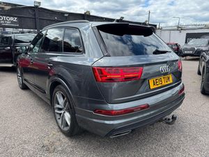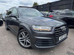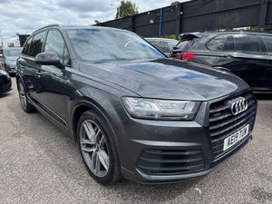 Audi Q7 3.0 TDI V6 50 Black Edition Tiptronic quattro Euro 6 (s/s) 5dr and is very well appointed, exterior in Black The interior features black leather 7 Seater upholstery with Black stitching, black door panels, Panroof heated front sports seats, Front memory seats, Rear Camera car have rear screen for kids multi media The brilliant Audi and a lovely three-spoke leather sports steering wheel with multi-function controls and paddle shift gears. This car comes with rear drop suspension buttons, Touchscreen for climate control, Cruise control with limiter, Electric boot, Electric parking brake with auto hold, Automatic lights, Automatic windscreen wipers, Electric folding/heated wing mirrors, Parking assist, Start-stop button with auto start-stop, On screen Sat Navigation, Electric front and rear windows, Bluetooth interface, LED Headlights, Bluetooth phone connection, Heated front and rear windscreen, Climate control, Wireless phone charging in center console, ULEZ Compliant, Electric fold-able rear seats, ISOFIX, Audi Drive Select, Driving assist, 2 Keys.,Car have Orginal Audi Dealer dashcam install. Our sales Manager can be reached Directly via Telephone as-well as WhatsApp Messaging by using the telephone no: 07719308314 to discuss part exchange valuations, purchase options & handover. Please call us to Confirm which of our Essex Showrooms your desired vehicle is located at before travelling to see us, Everyone of Our Cars Goes Through Our In House Work Shop Prior to Sale by Our Fully Qualified and Experienced Technicians - Buy with Confidence, Mileage Subject to Change as Stock Rotates Between Showrooms Confirm Mileage at Time of Purchase. Finance Quote please-BLACKEDI7SEATER/S-LINE/PANROOF
