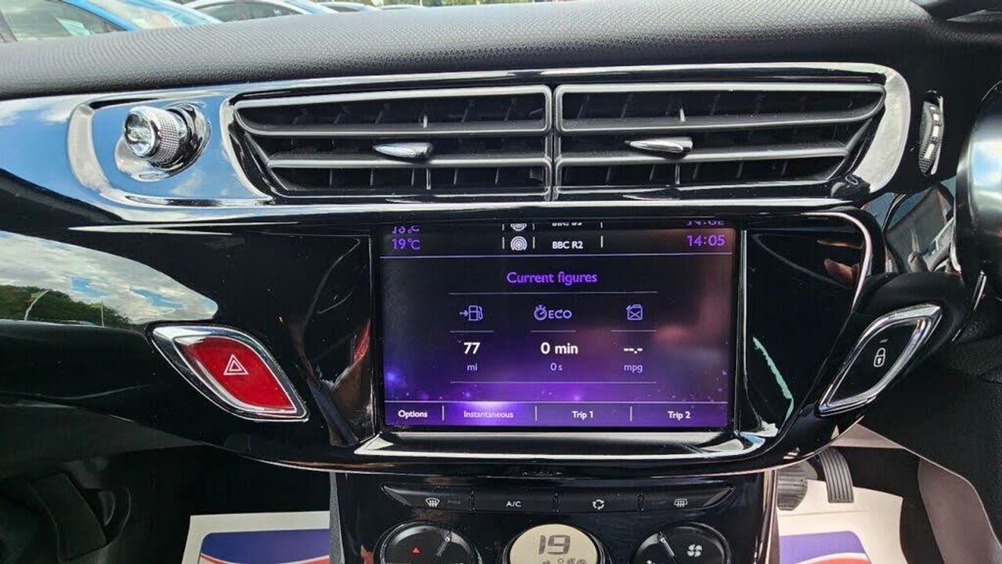 Perla Nera Black, 12v Socket - Front, 17in Alloy Wheels - Aphrodite Black, 3D LED Rear Lights, 7in Touchscreen, ABS - Anti-lock Braking System, Air Conditioning - Automatic-Digital, Airbags - Curtain, Airbags - Driver, Airbags - Front Lateral, Airbags - Front Passenger, Auxilary Socket, Black Panel Night-time Instrument Lighting, Bluetooth Handsfree, Bluetooth Media Streaming, Boot Lighting, Bottle Holder, Chrome Door Handles, Chrome Effect Gear Surround, Chrome Front Fog Light Surrounds, Chrome Front Grille Surround, Chrome Rear Bumper Insert, Chrome Side Rubbing Strips, Compressor with Puncture Repair Kit, Cruise Control with Speed Limiter, DAB Digital Radio, DS Connect Box, Dark Tinted Rear Windows, Door Mirrors - Roof Coloured, Door Sill Protectors - Chrome, Drivers and Passengers Sunvisor with Courtesy Mirror, EBA - Electronic Brake Assistance, EBD - Electronic Brakeforce Distribution, ESC - Electronic Stability Control, Electric Windows - Front with One-touch Operation on Drivers Side, Electrically Adjustable Door Mirrors, Exterior Temperature Display, Front Courtesy and Reading Lights, Front Fog Lights, Front Seat Back Pockets, Front Seat Belt Pre-Tensioners with Force Limiters, Gloss Black Centre Console, Gloss Black Kit - Gloss Black Dashboard with Black Gear Knob, Head Restraints - Rear, Headlights - Halogen, Height and Reach Adjustable Steering Wheel, Height-Adjustable Drivers Seat, Hi-Fi System Audio Upgrade, ISOFIX - Child Anchorage Points - Two Outer Rear, Interior Mood Lighting, LED Daytime Running Lights, Lashing Eyes in the Boot, Leather Handbrake with Chrome Insert, Leather Steering Wheel with Chrome Inserts, Multi-Function On-Board Trip Computer, RDS Radio with 6 Speakers and AUX Socket, Rear Parking Sensors, Rear Split-Folding Seats, Remote Central Locking, Scented Air Freshener, Seat Belt Unfastened Warning, Soft-touch Effect Upper Dashboard, Speakers x6, Sport Suspension, Steering Wheel Mounted Controls, Traction Control, Tyre Pressure Monitor, USB Socket, Variable-Assistance Power Steering, eMyWay Satellite Navigation