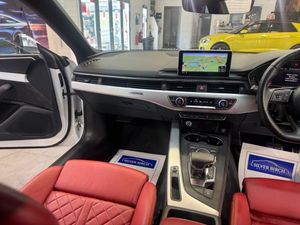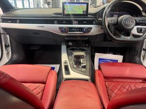 Audi Exclusive, Electrically Adjustable Front Seats with Memory Function for Drivers Side, Flat-Bottomed 3-Spoke Leather High Multi-Function Steering Wheel, Fine Nappa Leather - S Super Sport Seats - S Embossed - Magma Red, Ibis White, Parking Assistance Pack Advanced, Matrix LED Headlights with LED Rear Lights and Dynamic Front and Rear Indicators, Audi Virtual Cockpit, 19in Alloy Wheels - 5-Spoke Cavo Design - Contrasting Grey - Partly Polished, 2 x USB Charging Ports and 1 x AUX-IN, 4-Way Electric Lumbar Support, 6-Airbag System, ABS - Anti-Lock Braking System, Aluminium-Effect Door Mirror Housings, Anti Theft Locking Wheel Bolts, Anti-Theft Alarm, Audi Beam, Audi Connect Infotainment Services - 3 Month Trial, Audi Connect Safety and Service, Audi Drive Select, Audi Smartphone Interface, Audi Sound System, Auto-Dimming Rear-View Mirror, Bluetooth Interface, Brake Calipers Painted in Black with S5 Logo at the Front, Cloth Headlining in Black, Contrast Stitching on Seats - Steering Wheel and Gear Lever Gaiter, Cruise Control with Speed Limiter, DAB Digital Radio Reception, Deluxe 3-Zone Electronic Climate Control, Door Mirrors - Electrically Adjustable and Heated with Built-in LED Indicators, ESC - Electronic Stabilisation Control inc ABS - ASR and EDL, Electric Boot Lid Release, Electric Windows - Front, Electrically Adjustable Front Seats, Electromechanical Parking Brake, Electromechanical Power Steering, Email - Calendar and Text Messages can be Displayed on your Vehicles MMI, First Aid Kit and Warning Triangle, Fixed Rear Seat Bench with Storage Tray in Seat, Front Centre Armrest, Front and Rear Floor Mats, Gear-lever Knob in Black Leather, Gear-lever with Diamond S Badge, Heated Front Seats, High Gloss Package, High Multi-function 3-Spoke Leather Steering Wheel with S Badging and Gear-Shift Paddles, High-Beam Assist, ISOFIX Child Seat Mounting and Top Tether, Illuminated Door Sill Trims with S Logo, Inlays - Matt Brushed Aluminium, Key with S5 Logo, Keyless Go, LED Headlights with LED Rear Lights and Dynamic Rear Indicators, LED Interior Light Package, Leather Door Armrests and Knee Pad, Light and Rain Sensor, Lumbar Support - Pneumatically Adjustable with Massage Function, MMI Navigation Plus, Multi Collision Brake Assist, Non-Smoking Package, Parking System Plus, Pedals and Footrest - Stainless Steel, Pop-Up Bonnet for Pedestrian Protection, Pre-Sense City, Rear Grille - Black Grained, Rear Spoiler, S Instrument Dials, S Model Enhanced Braking System, S Radiator Grille in Twilight Grey - Matt with Twin Inlays in Matt Aluminium, S Rear Diffuser in Twilight Grey - Matt with Diffuser Trim in Matt Aluminium and Honeycomb Grill in Black, S Specific Air Inlet Horizontal Inlay in Matt Aluminium, S Specific Air Inlets in Titan Black - Matt, S Specific Dual-Branch Chrome Tailpipes with Twin Oval Pipes Each on Left and Right, S Specific Front and Rear Bumpers, S Sport Suspension, S5 Badges on Grille - Front Wing Panels and Rear, Seat Belt Monitoring, Space Saver Spare Wheel, Split-Folding 2-Seater Rear Seat Bench in 3 Parts - 40-20-40 with Rear Centre Armrest, Tool Kit and Car Jack, Tow Bar Preparation, Tyre Pressure Warning Light, Variable Restraint System, Windscreen with Acoustic Glazing